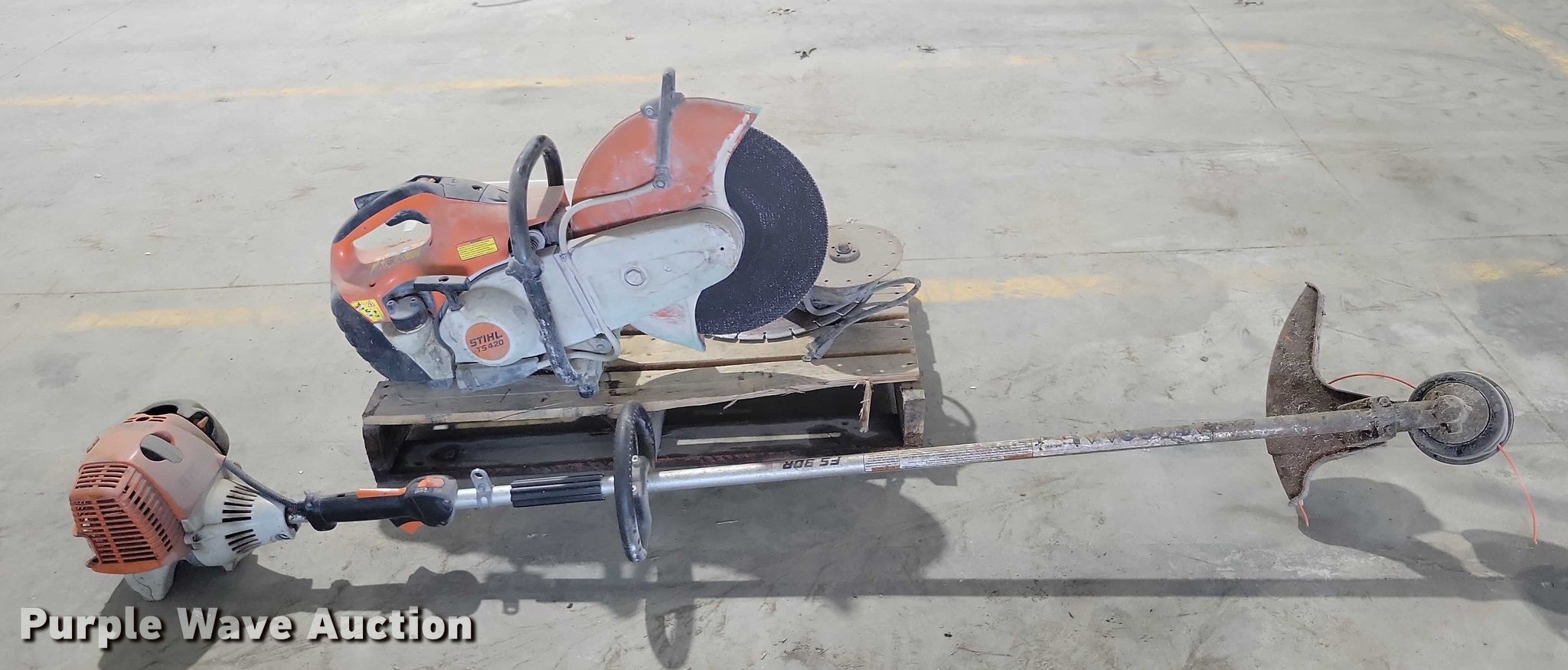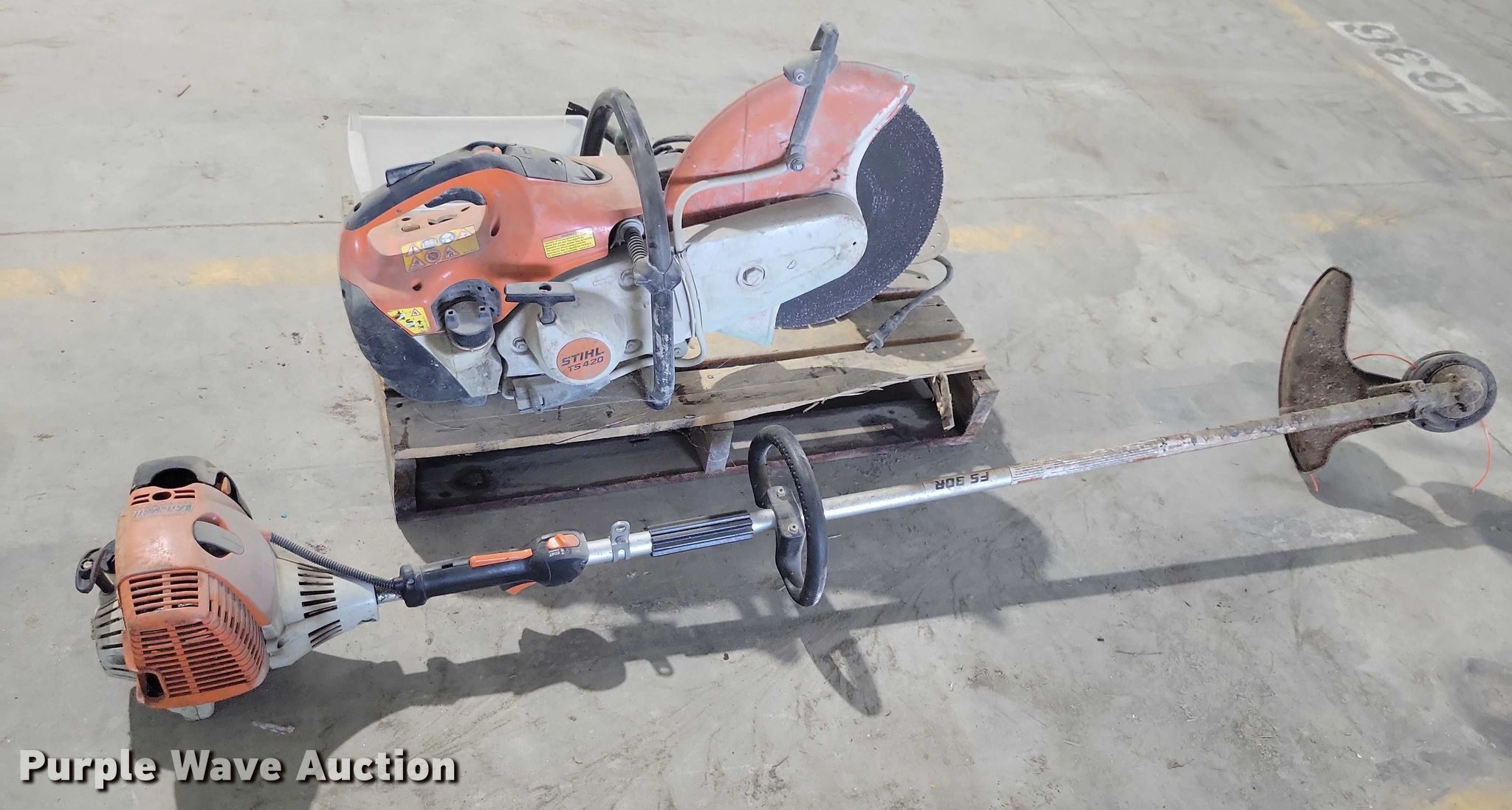 Purple Wave is selling a used Concrete Equip. or Acces. in Iowa. This item is a (2) concrete saws with the following: Stihl TS420, Engine, Cylinders: 1, Fuel type: Gas, One unknown brand, Concrete saw blades, Stihl FS90R string trimmer
