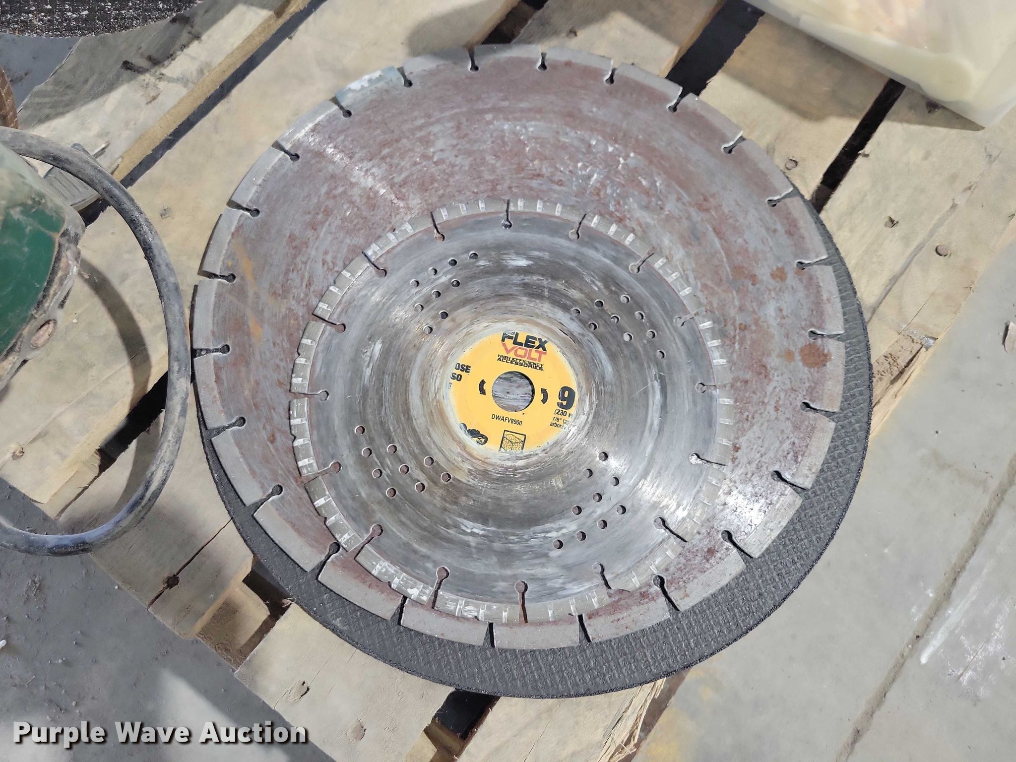 (2) concrete saws. Stihl TS420 Engine, Cylinders: 1, Fuel type: Gas, One unknown brand, Concrete saw blades, Stihl FS90R string trimmer. AccuJet Liquidation - Open Inspection November 12th 2025. Perry, IA 50220