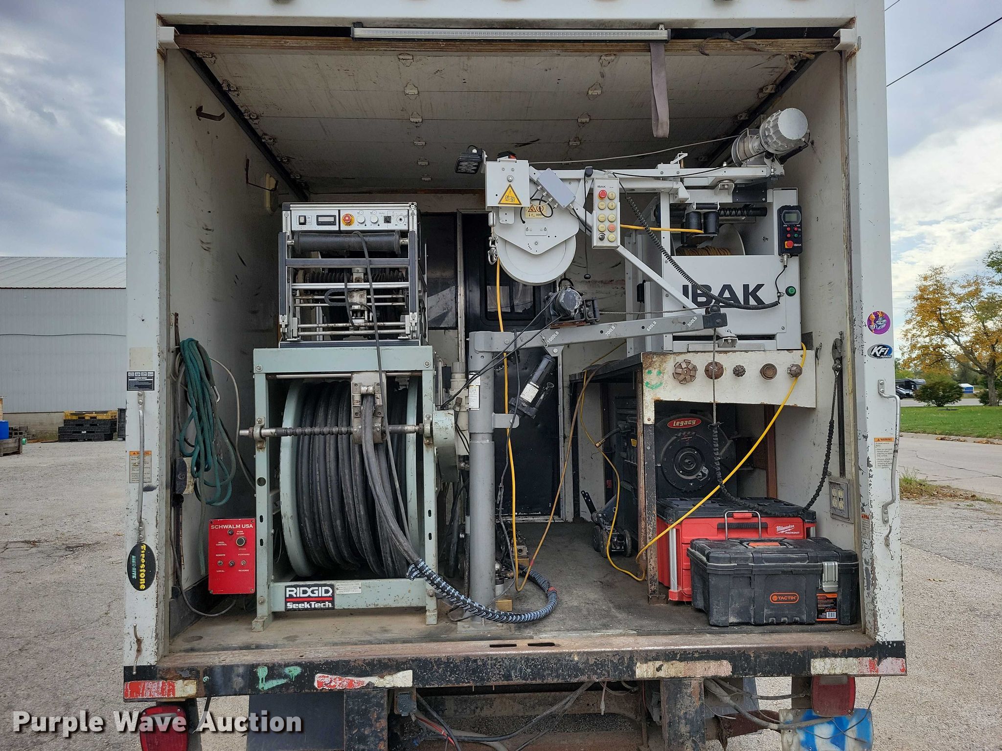2008 Chevrolet G3500 IBAK sewer inspection and cutter truck. Milage: 162,215 on odometer, VIN: 1GBJG31K681162128. Engine Displacement: 6.0L, Cylinders: 8, Fuel type: Gas. Transmission Automatic. Chassis Axles: Single, Suspension: Spring, Brakes: Hydraulic, GVWR: 12,300 lbs. Interior AC, Heat. Features Bed Box bed, Morgan PVSP851496, Serial: YL408VB06304-1, Length: 14', Width: 96", Height: 7', Floor: Wood, Schwalm USA remote, UWF camera cable and hose with reel, Sewer camera, Schwalm sewer cutter, Sewer crawler machine, Heads, Nozzles, Winch and hoist, IBAK cable machine, Tools, Toolboxes, Air hose, Computer, Monitor, Controls, Video/OSD controller, IBAK BE7.1 EDI, Schwalm controls, Magna Sine Magnum Energy invertor. Tires Size: LT225/75R16. Notes Dash warning indicator: Check engine, Airbag, Windshield chipped or cracked, Jump start required during on-site data collection. Lender owned. Item condition and history unknown. Iowa title. Title distribution may be delayed up to 30 days from verification of funds. AccuJet Liquidation - Open Inspection November 12th 2025. Perry, IA 50220