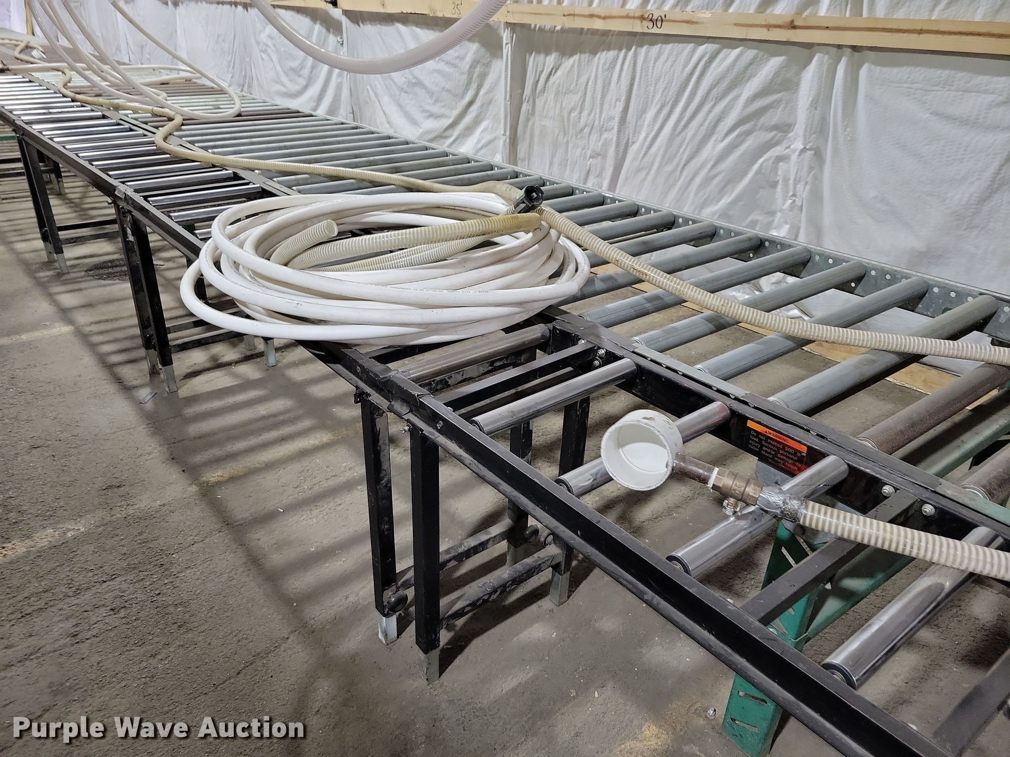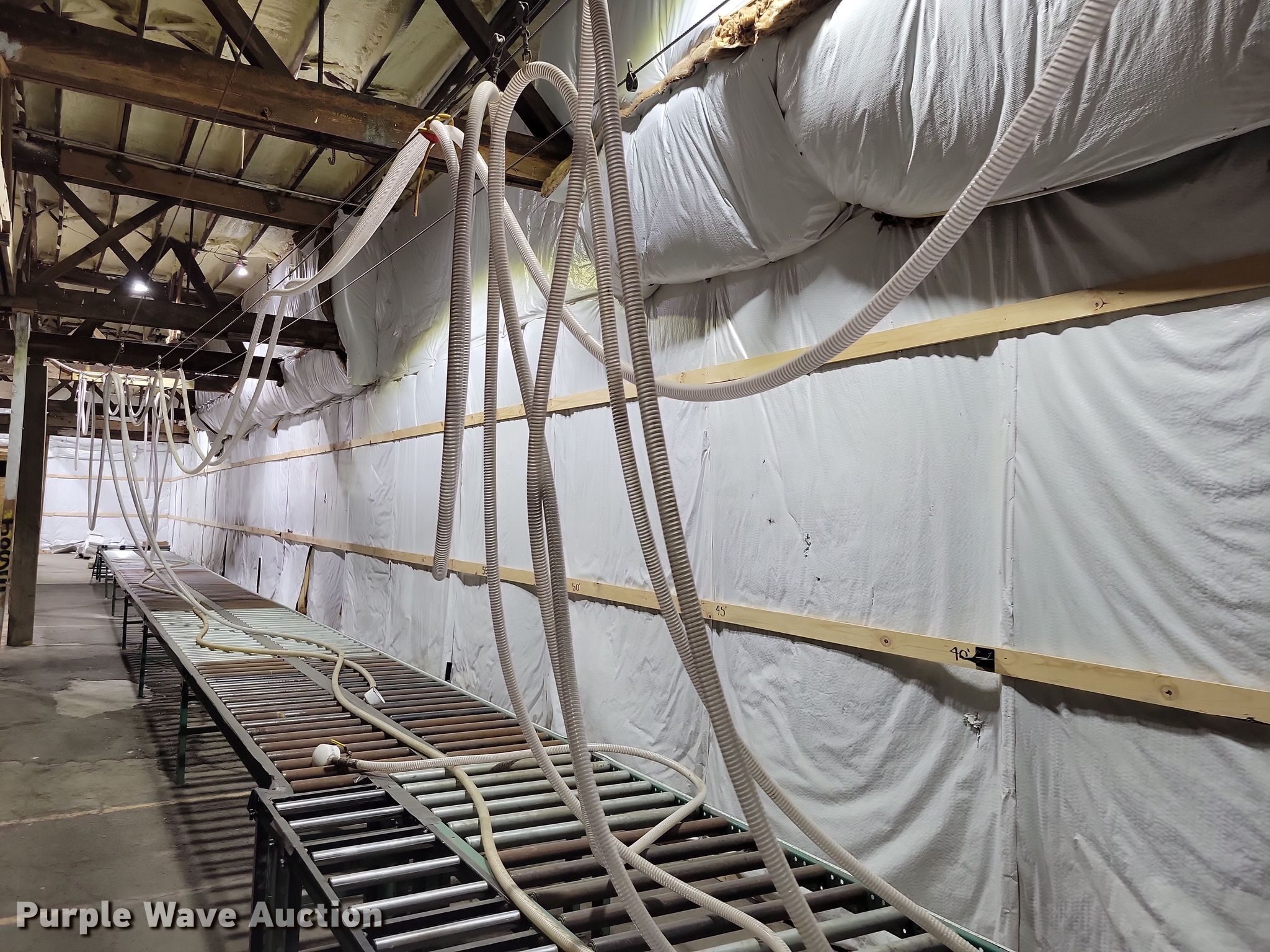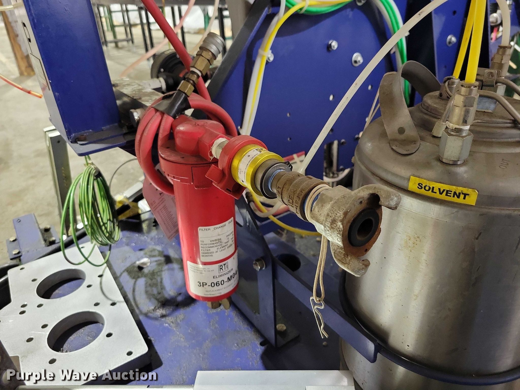 2023 MVP Patriot Pro thermal plastic resin injection system. Hours: 306 on meter, Roach roller conveyor, Length: 100', Pumps, Air hoses, Control station, Scale. Buyer responsible for all aspects of disassembly and removal.. AccuJet Liquidation - Open Inspection November 12th 2025. Perry, IA 50220
