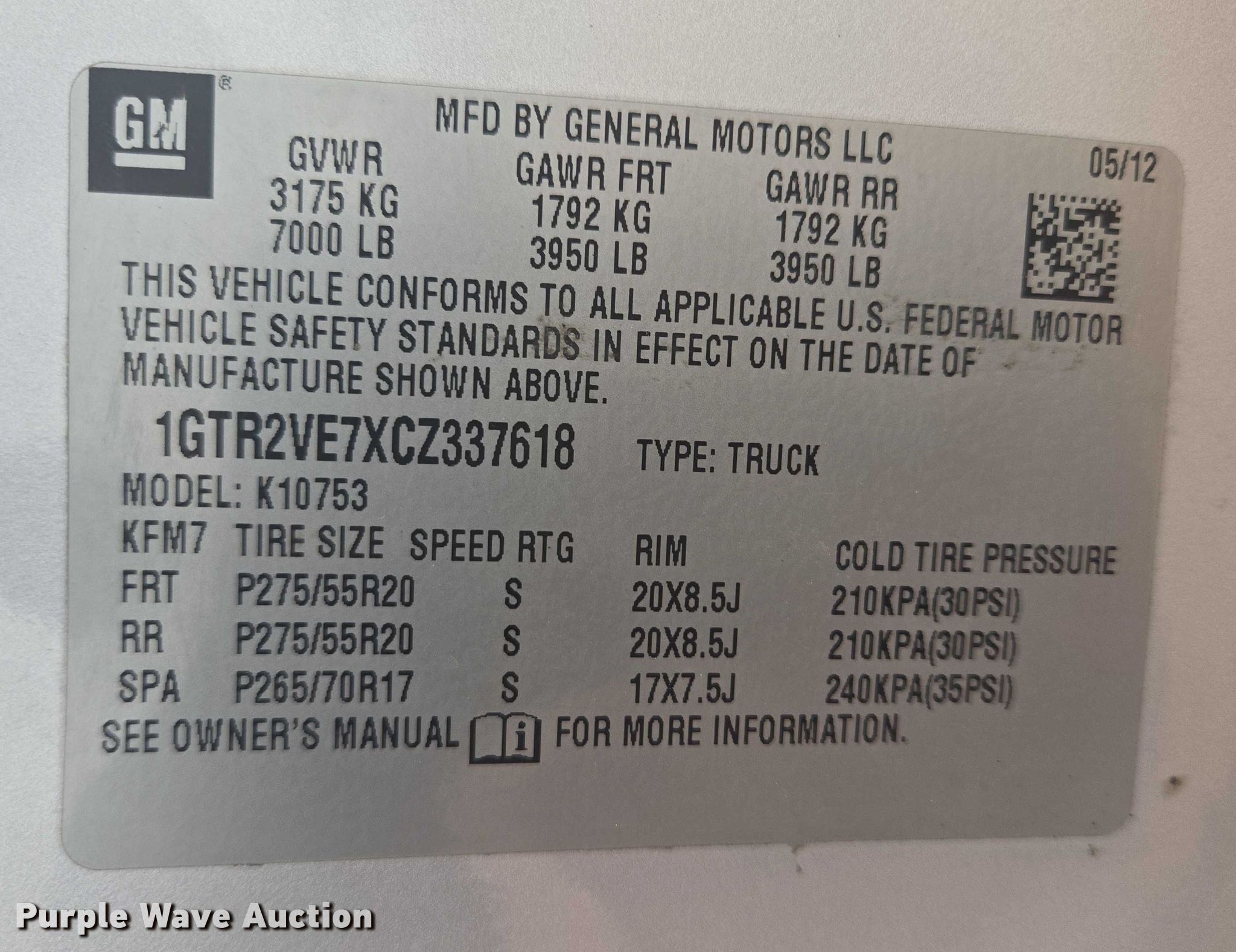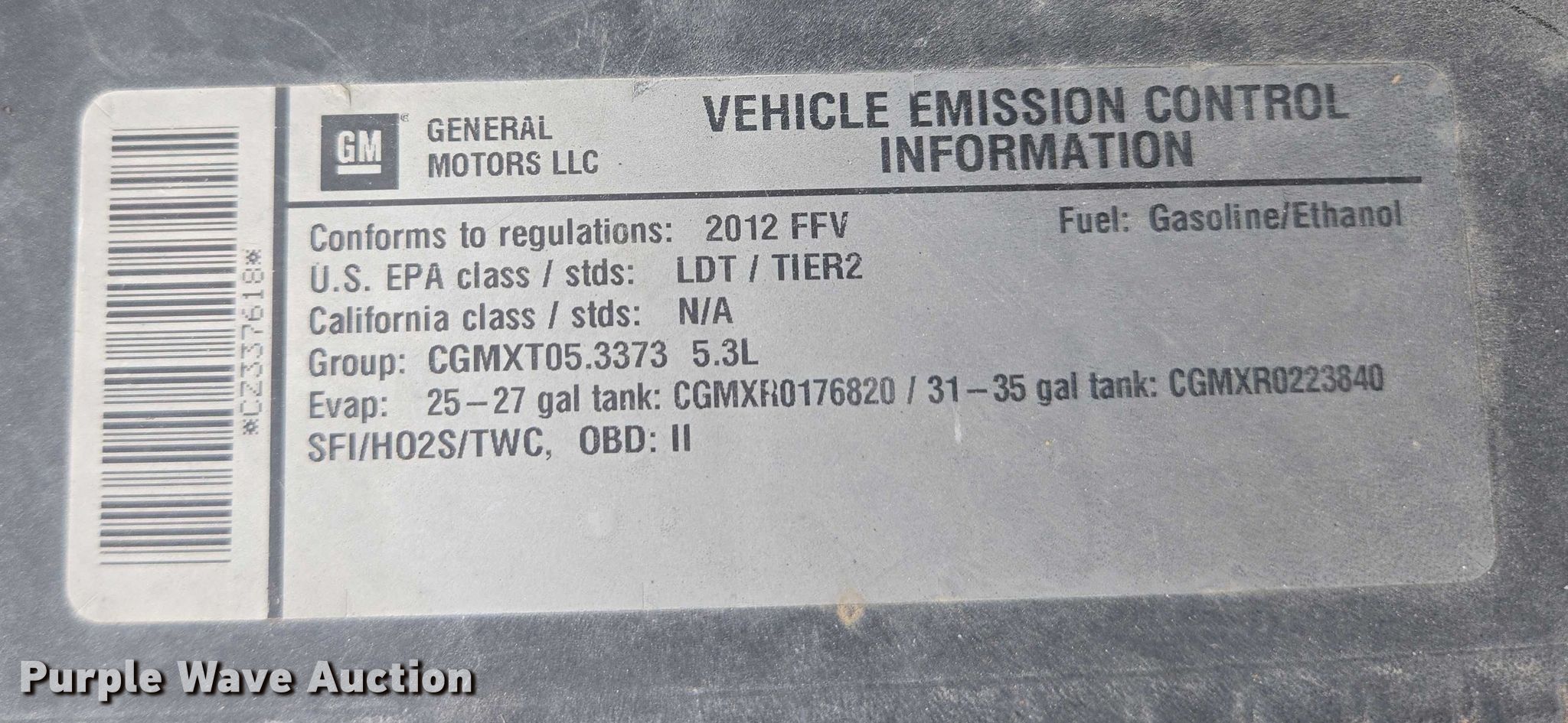 2012 GMC Sierra 1500 Ext. Cab pickup truck. Miles: 231,903 on odometer, VIN: 1GTR2VE7XCZ337618. Engine Displacement: 5.3L V8 OHV, Cylinders: 8, Fuel type: Gas. Transmission Automatic, Four wheel drive. Interior AC, Heat, Seat: Power driver, Power windows, Power locks, Cruise control. Tires Size: 275/70R18. Notes Windshield chipped or cracked, Jump start required during on-site data collection. Wyoming title. Title distribution may be delayed up to 14 days from verification of funds. Croell Inc. Sundance, WY 82729