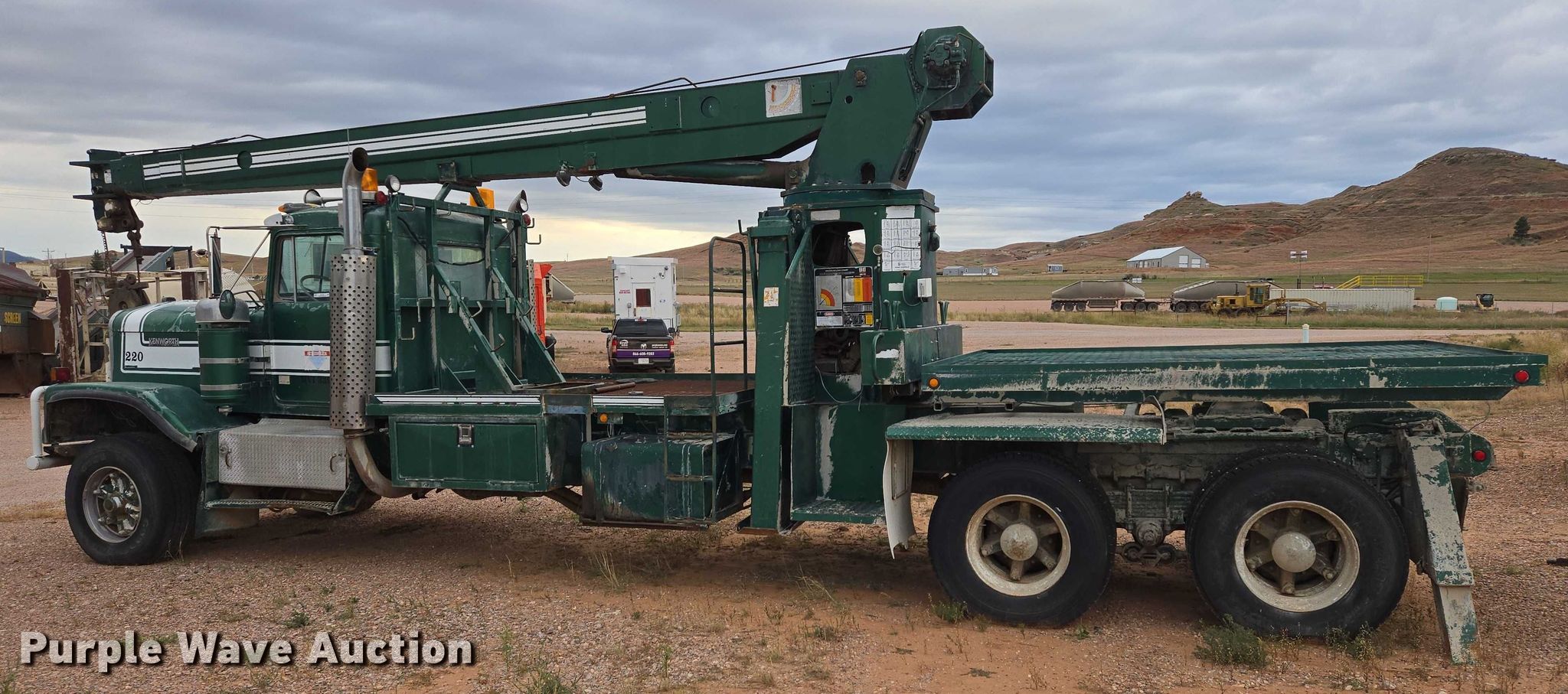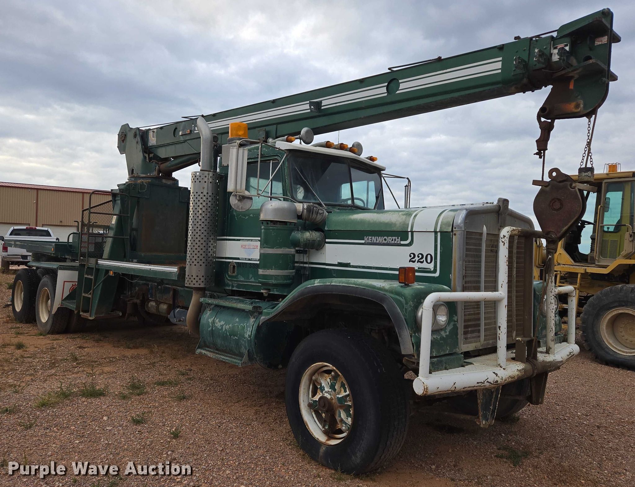 Purple Wave is selling a used Crane Truck in Wyoming. This item is a 1979 Kenworth crane truck with the following: Miles: 5,767 on odometer, Hours: 967 on meter, VIN: 907588C
