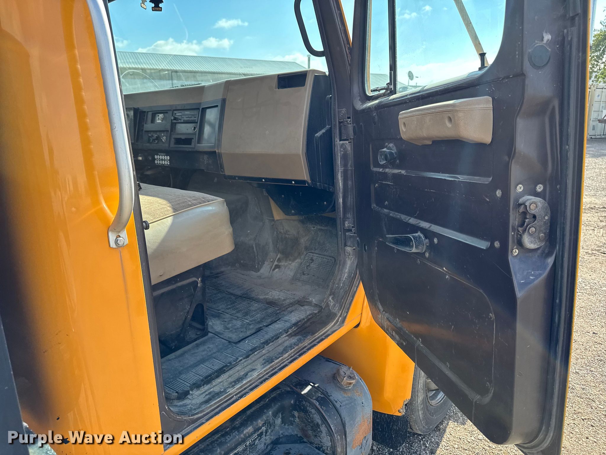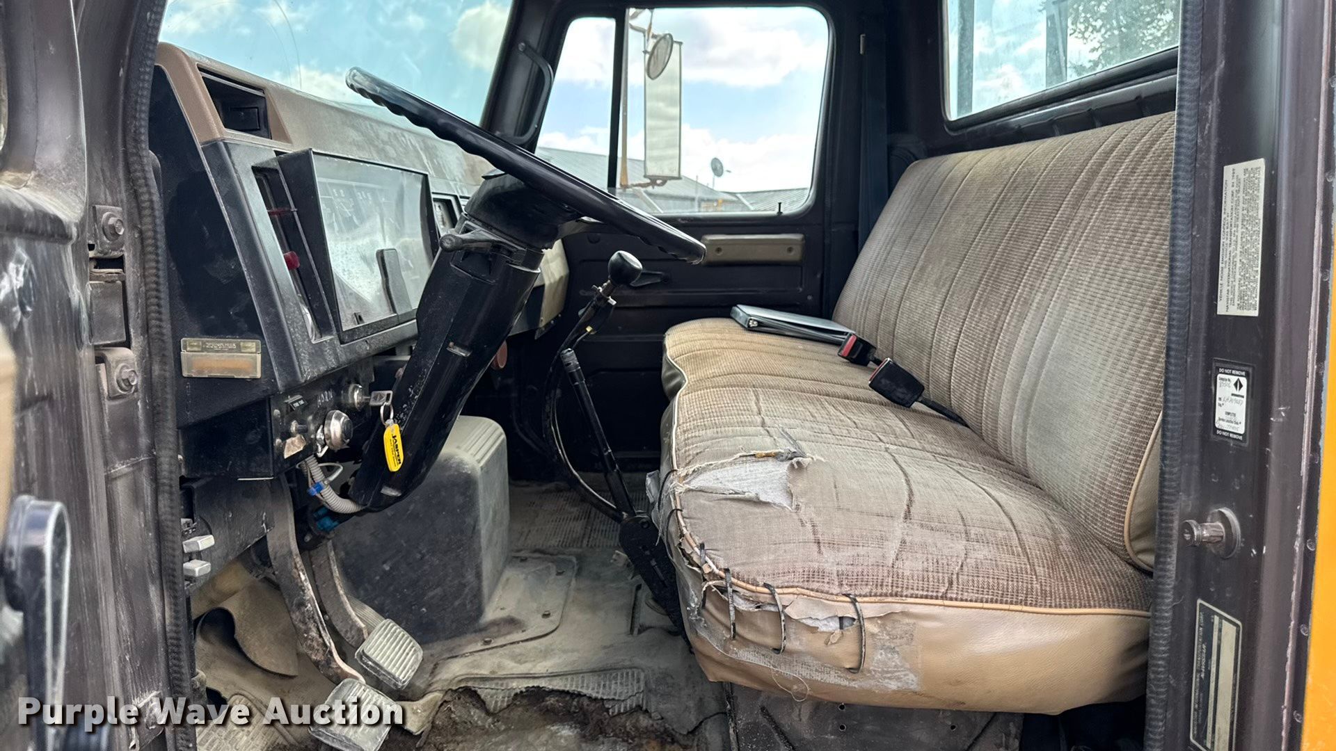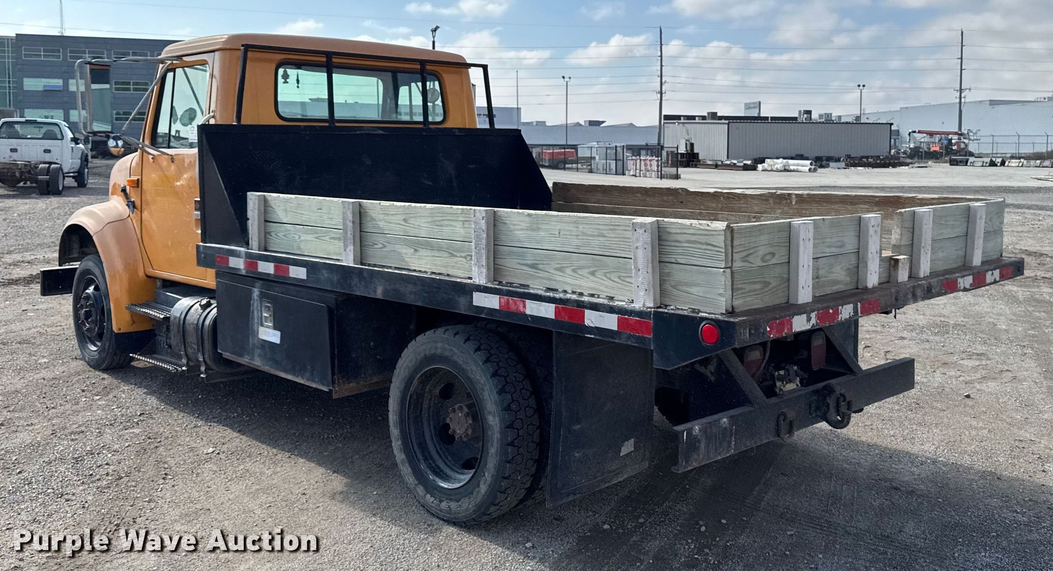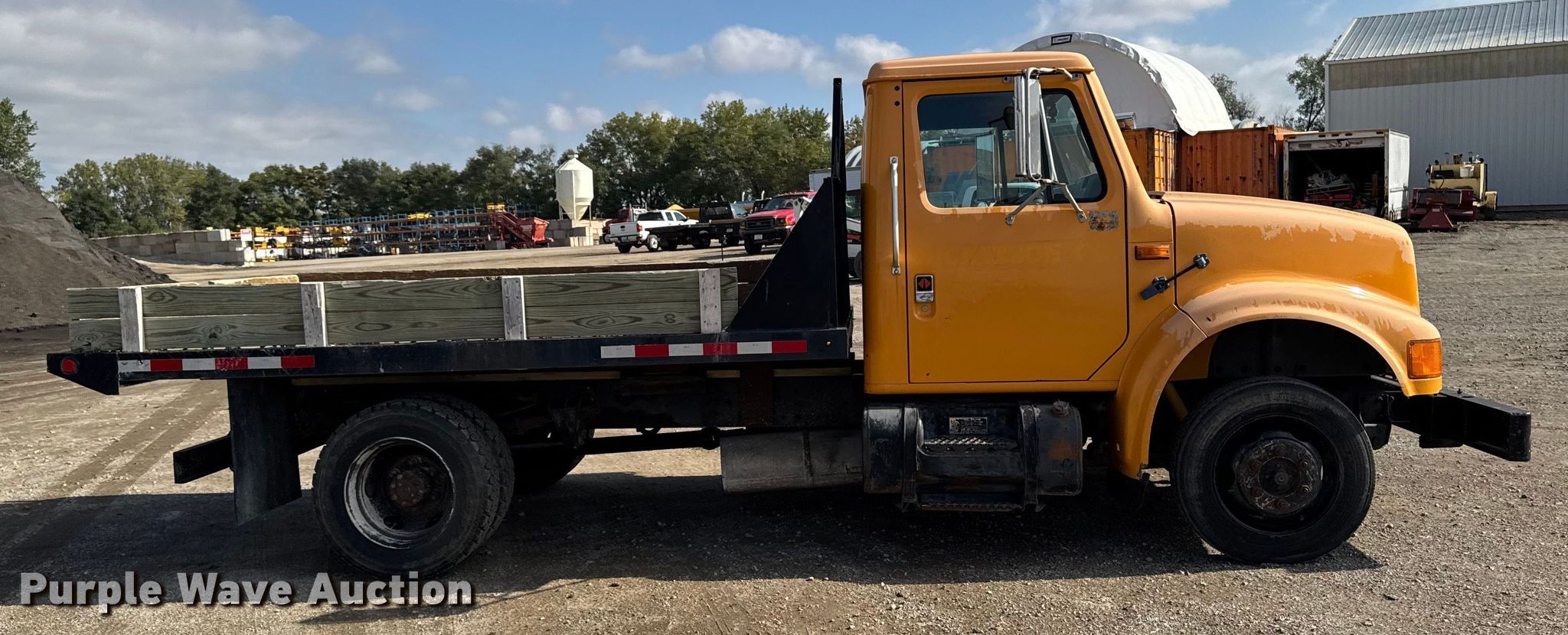 This 1990 International 4700 dump flatbed truck will sell to the highest bidder regardless of price.