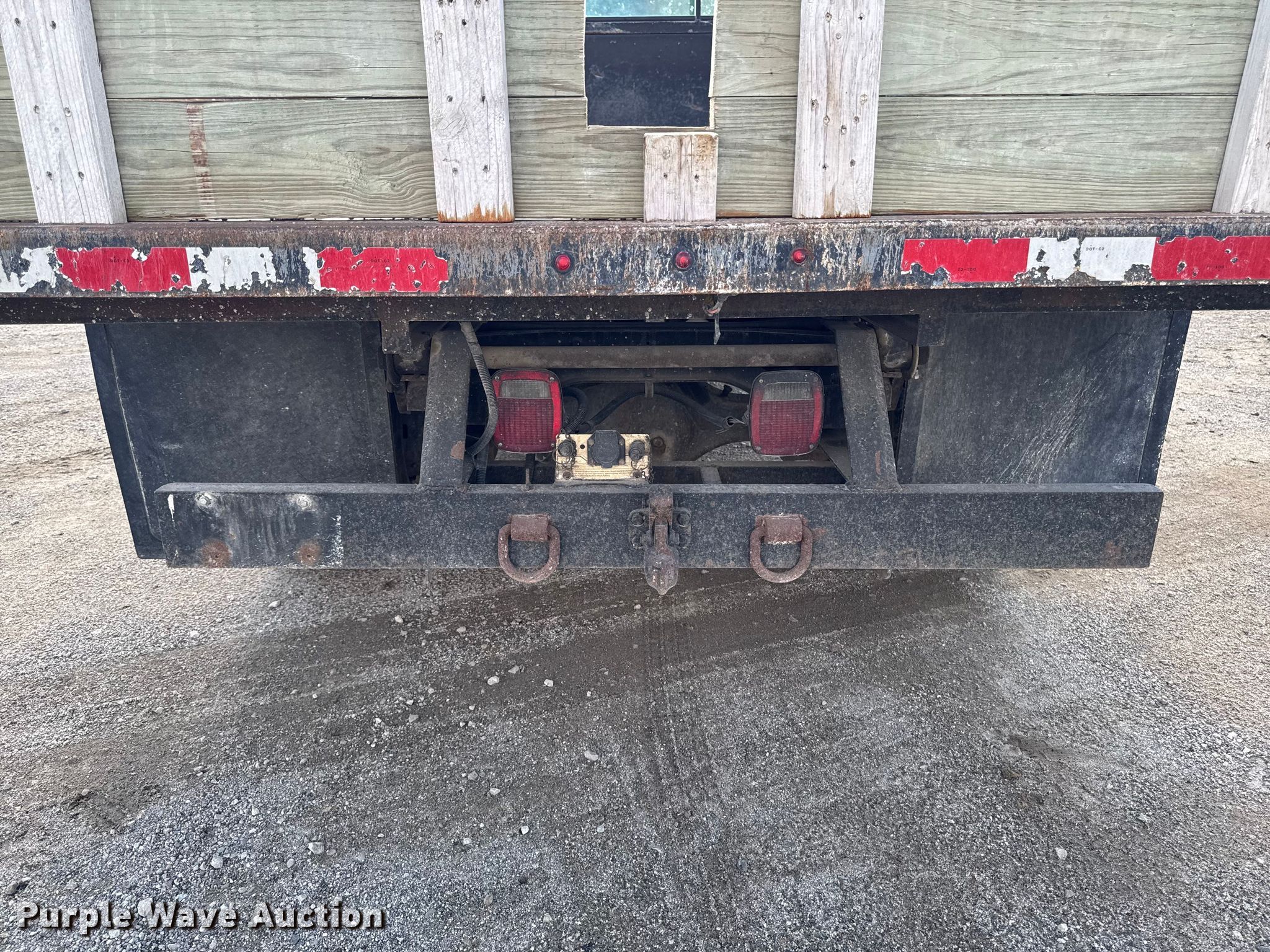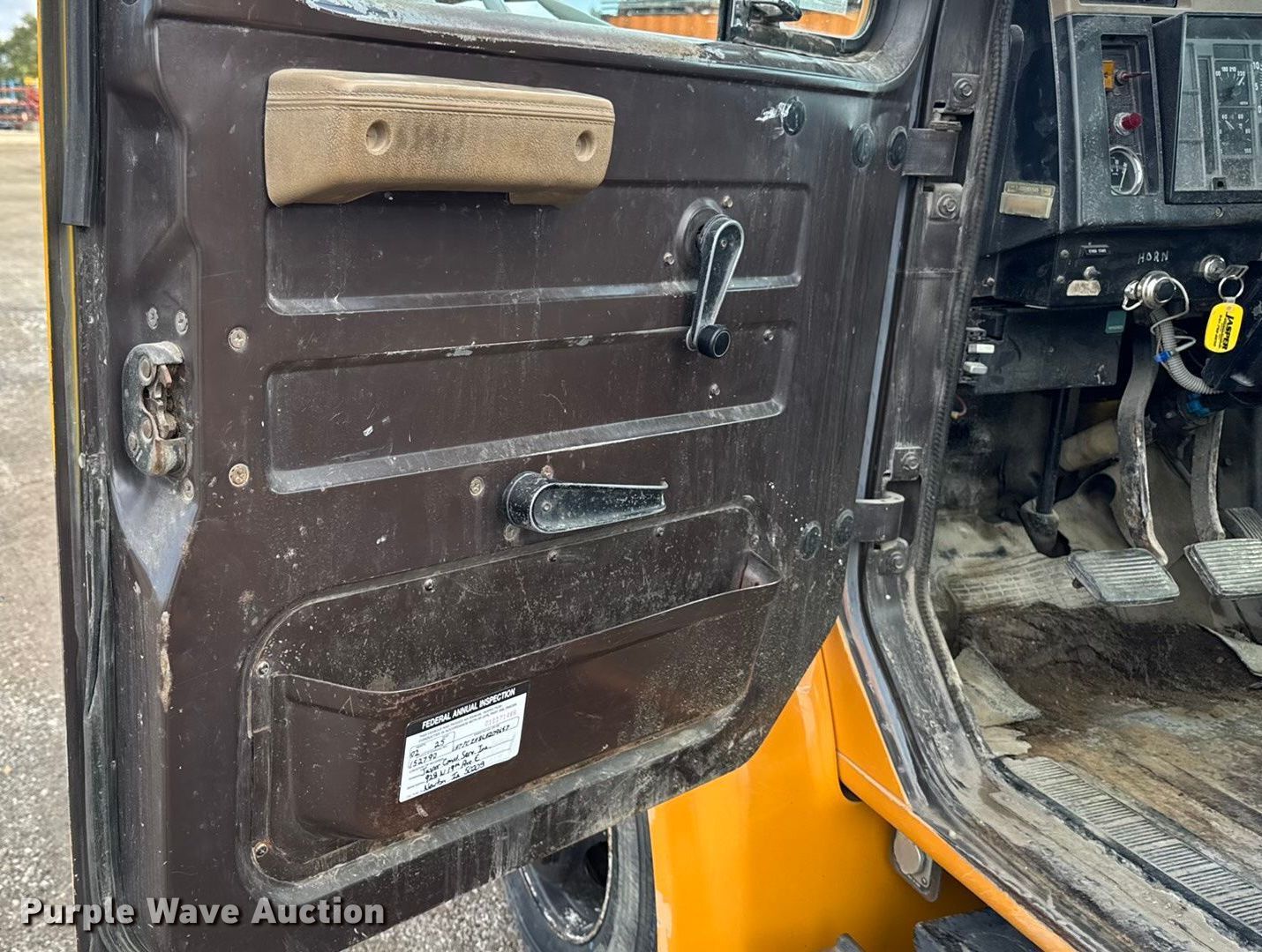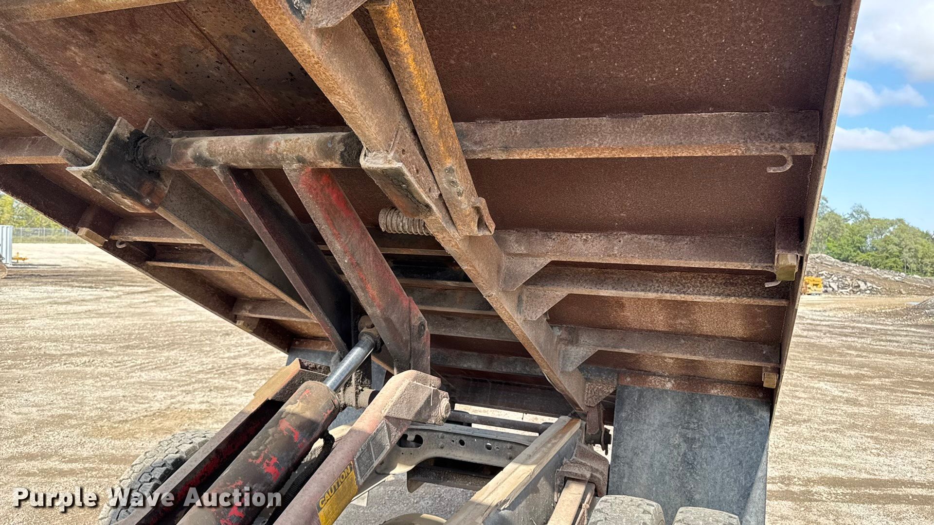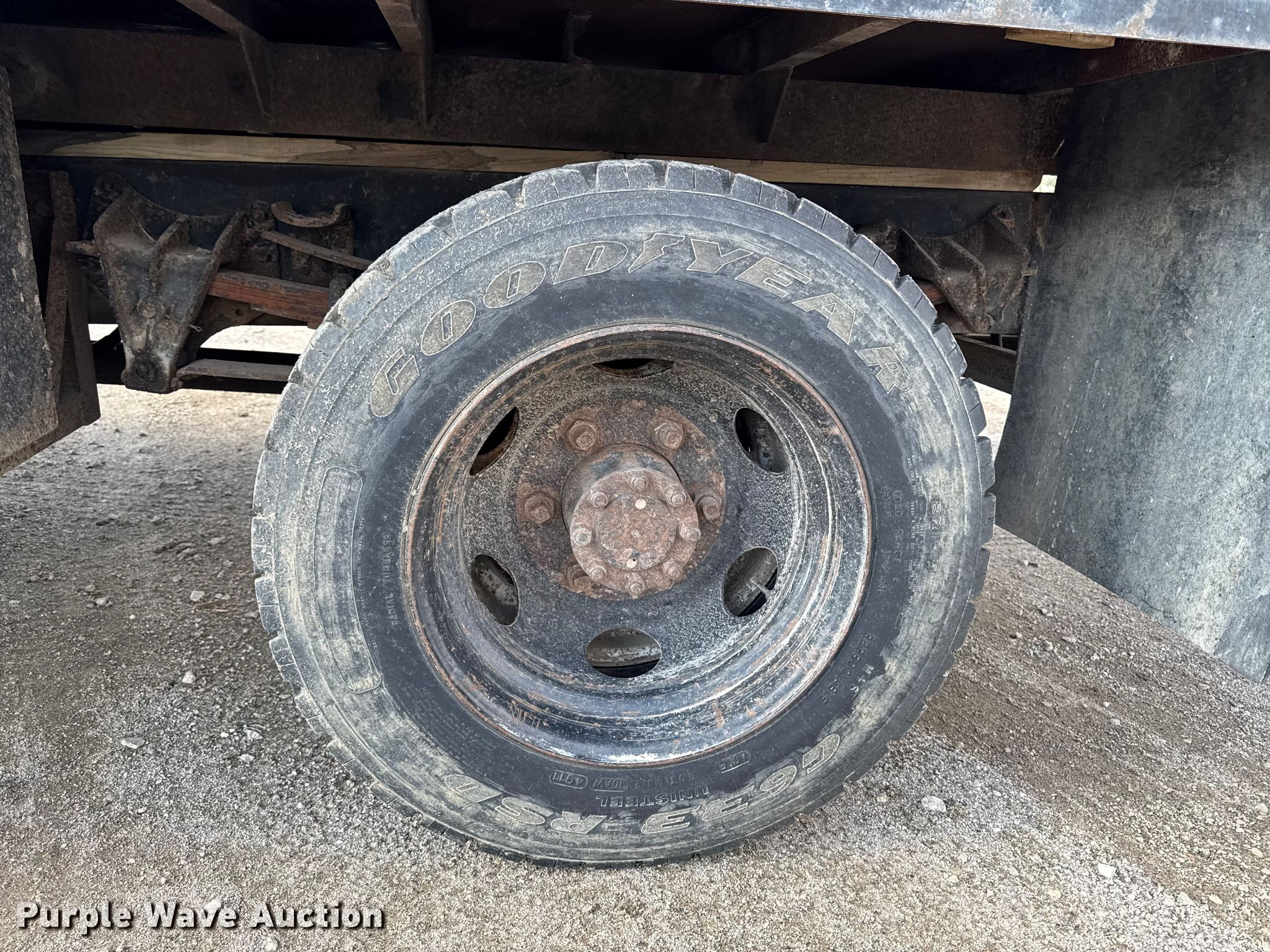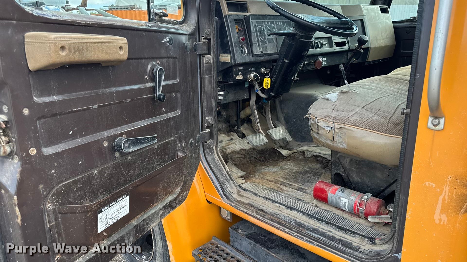 This 1990 International 4700 dump flatbed truck will sell to the highest bidder regardless of price.