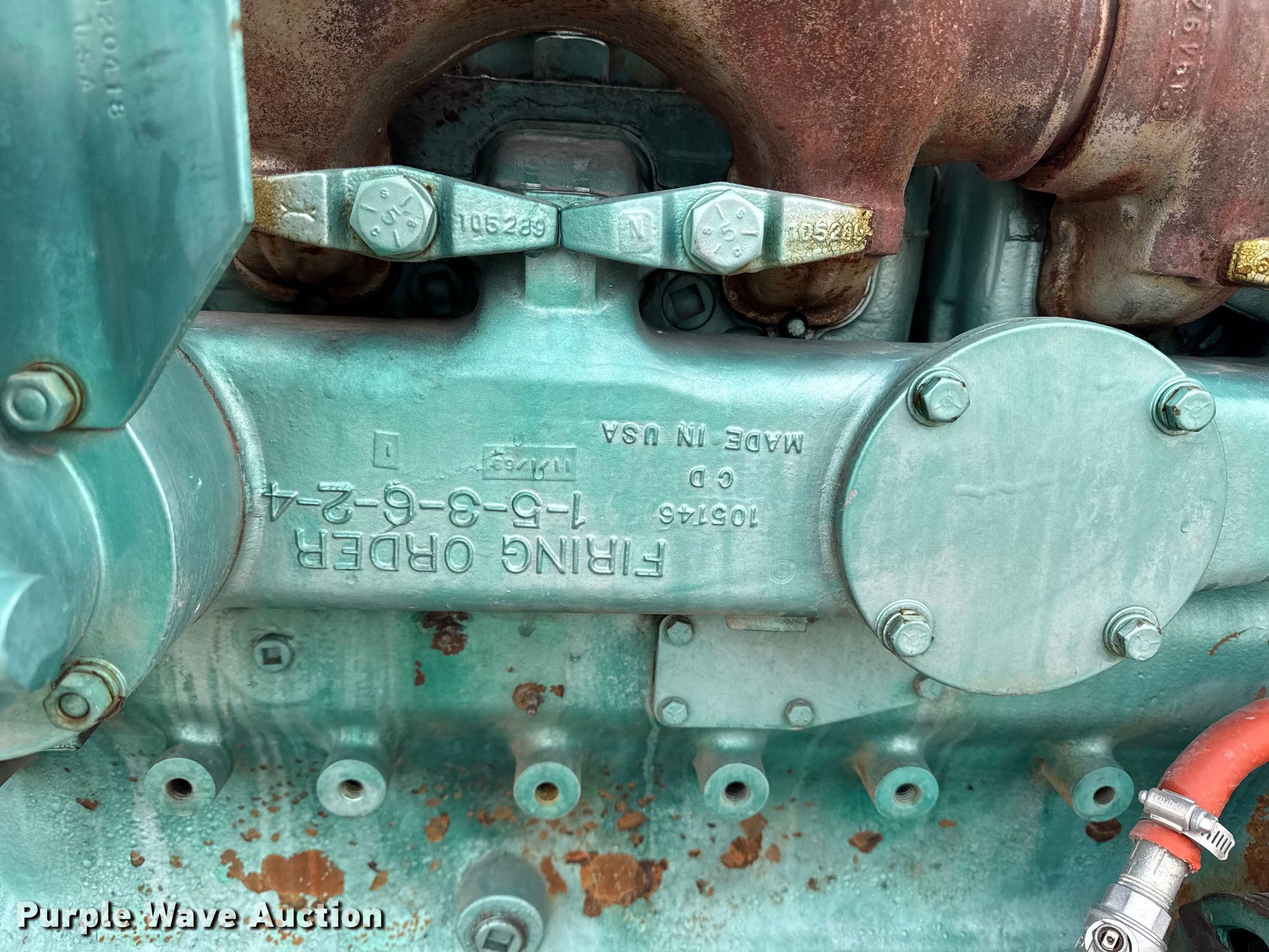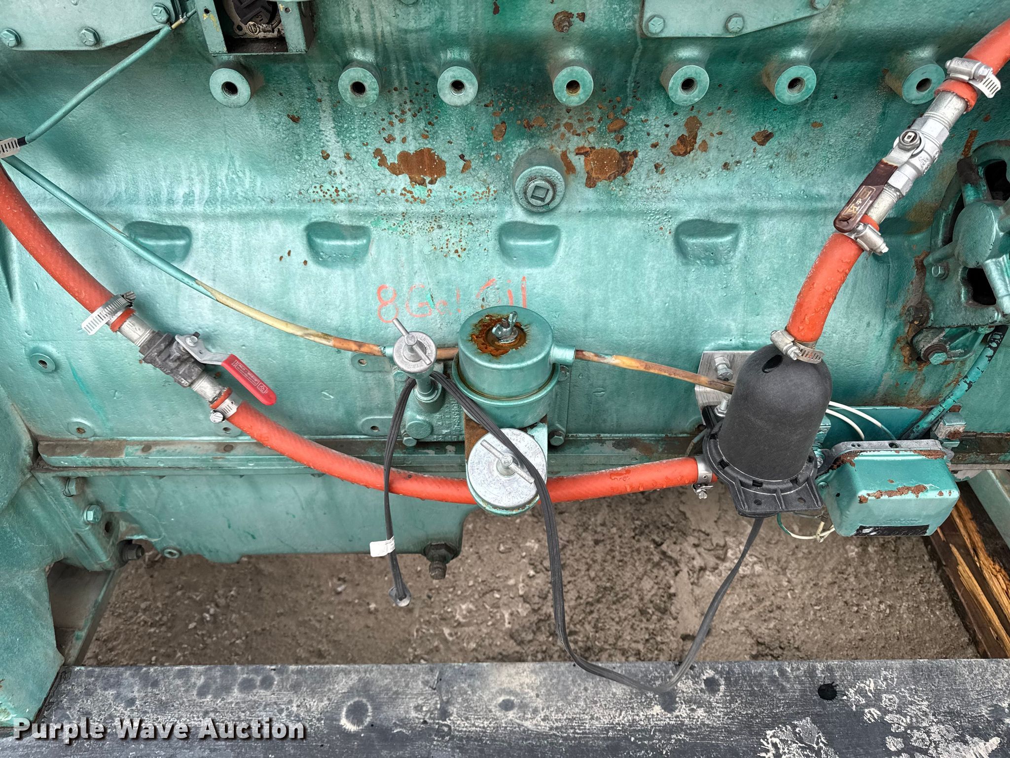 Onan Magneciter generator. Hours: 2,356 on meter. Engine Cummins H743PG190, Serial: 66885, Cylinders: 6, Fuel type: Diesel. Features Generator Skid mounted. Notes Battery missing, Unknown operating condition. Cantera Aggregates LLC. Centerville, IA 52544