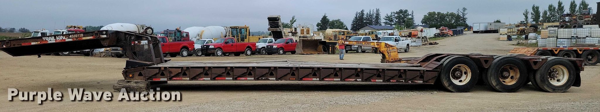 Purple Wave is selling a used Equip. Trailer in Iowa. This item is a 2001 Trail King lowboy equipment trailer with the following: Overall, Length: 53' 4", Width: 102", Deck, Length: 26', Width: 102", Deck height: 29", Ramps: Manual, Length: 28"