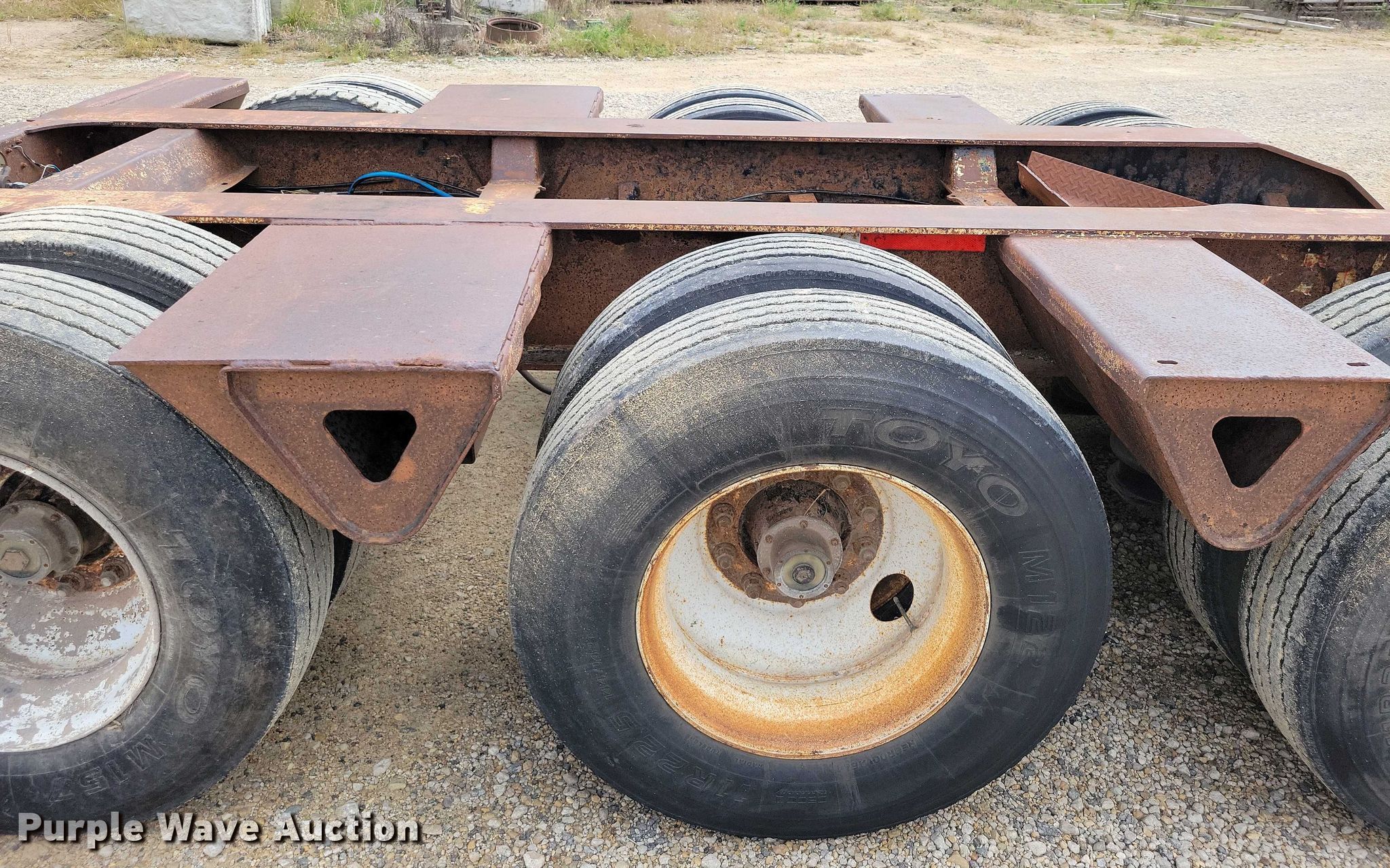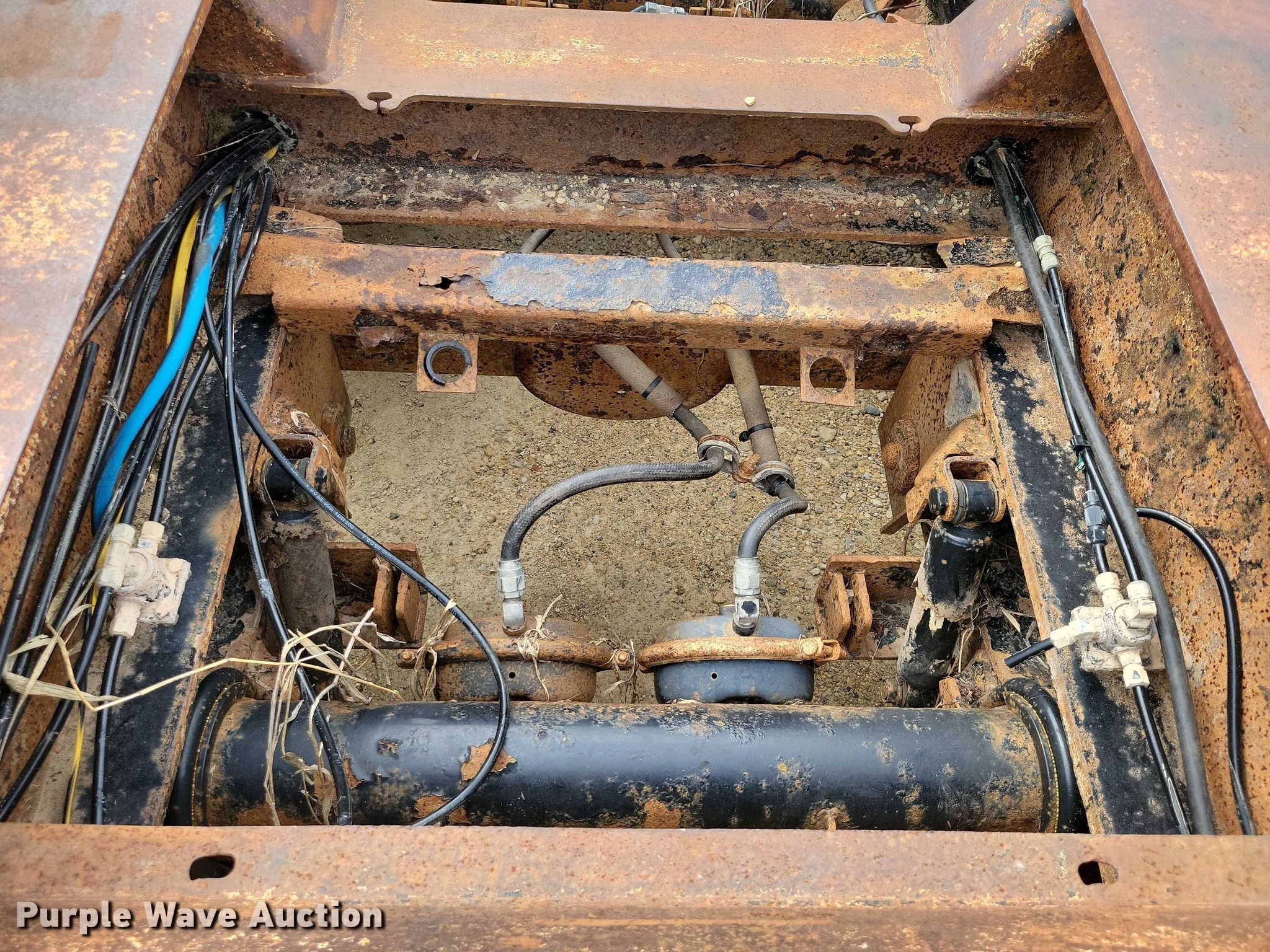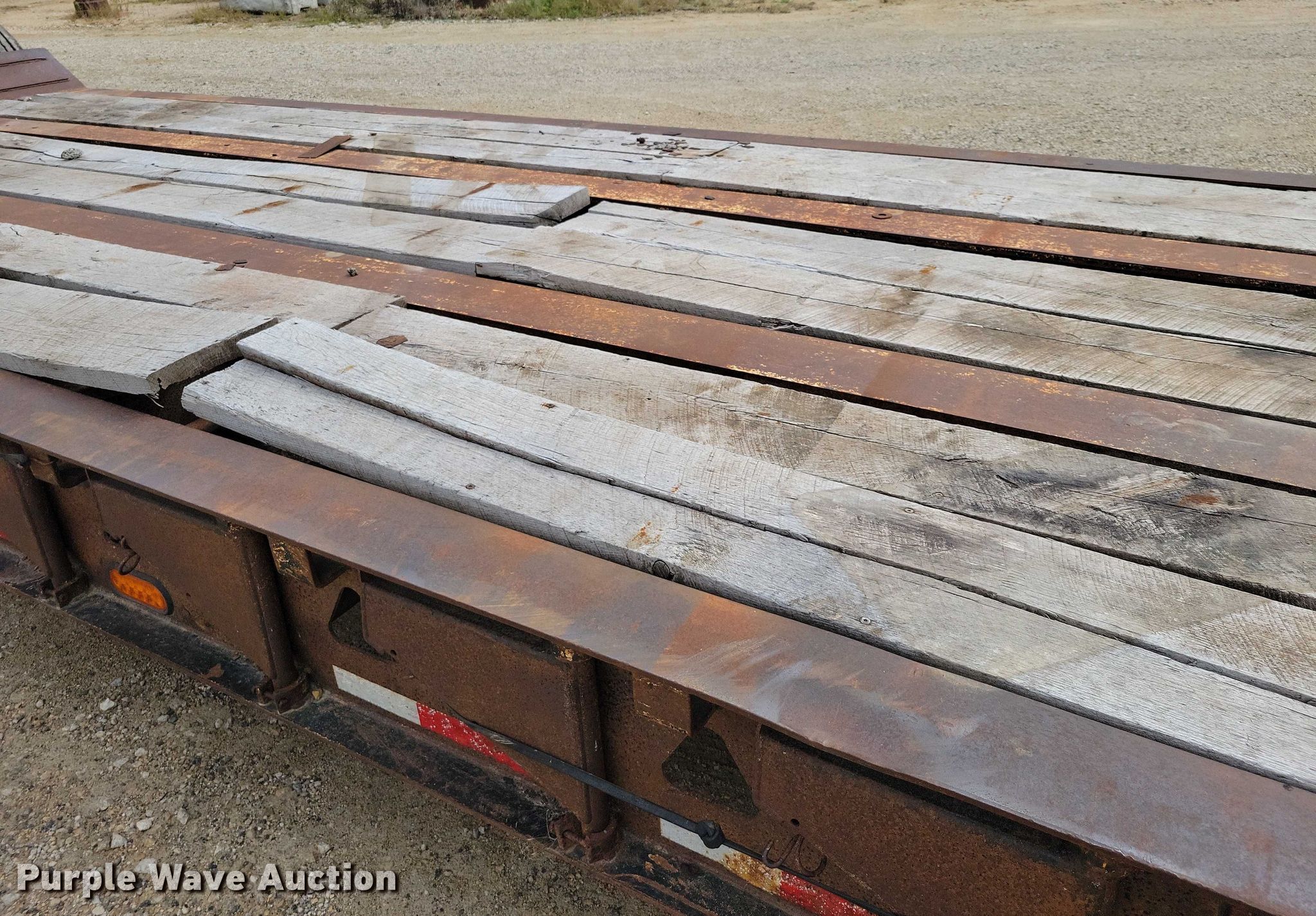 2001 Trail King lowboy equipment trailer. Dimensions. Overall Length: 53' 4", Width: 102", Deck Length: 26', Width: 102", Deck height: 29", Ramps: Manual Length: 28". Features Deck type: Wood, Outriggers: Swing-out Board size: 12", Neck type: Detachable. Chassis Suspension: Air, Brakes: Air, Axles: Triple. Tires Steel wheels, Size: 11R22.5. Iowa title. Title distribution may be delayed up to 30 days from verification of funds. Croell Inc. New Hampton, IA 50659
