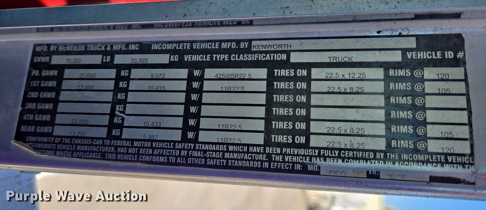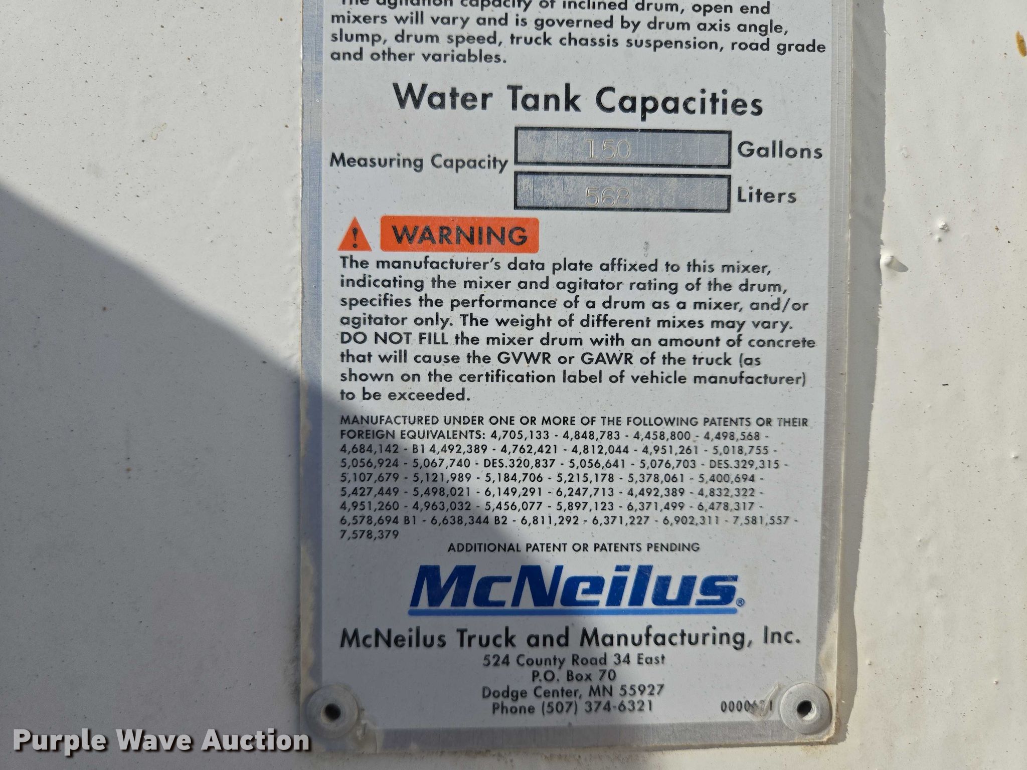 2006 Kenworth W900 ready mix truck. Miles: 307,696 on odometer, Hours: 25,283 on meter, VIN: 2NKWL00X76M149854. Engine Cummins ISM, Displacement: 11.0L, Cylinders: 6, Fuel type: Diesel, HP: 280. Transmission Eaton Fuller 9LL, Manual, Speed: 11. Chassis Axles: Triple, Tag axle Steerable, Differential lock: Inter-axle, Suspension: Spring over walking beam, Brakes: Air, PTO. Interior AC, Heat, Cruise control. Features Mixer McNeilus, Serial: 77686-26379, Capacity: 11 cu.yd., Discharge: Rear, In-cab controls, Rear drum controls, Water tank capacity: 150 gallons, Chute Extensions: 3, Chute type: Steel.. Tires Front: 425/65R22.5, Rear: 11R22.5, Lift axle: 11R22.5. Notes Dash warning indicator: Check engine, Windshield chipped or cracked. Wyoming title. Title distribution may be delayed up to 14 days from verification of funds. Croell Inc. Riverton, WY 82501