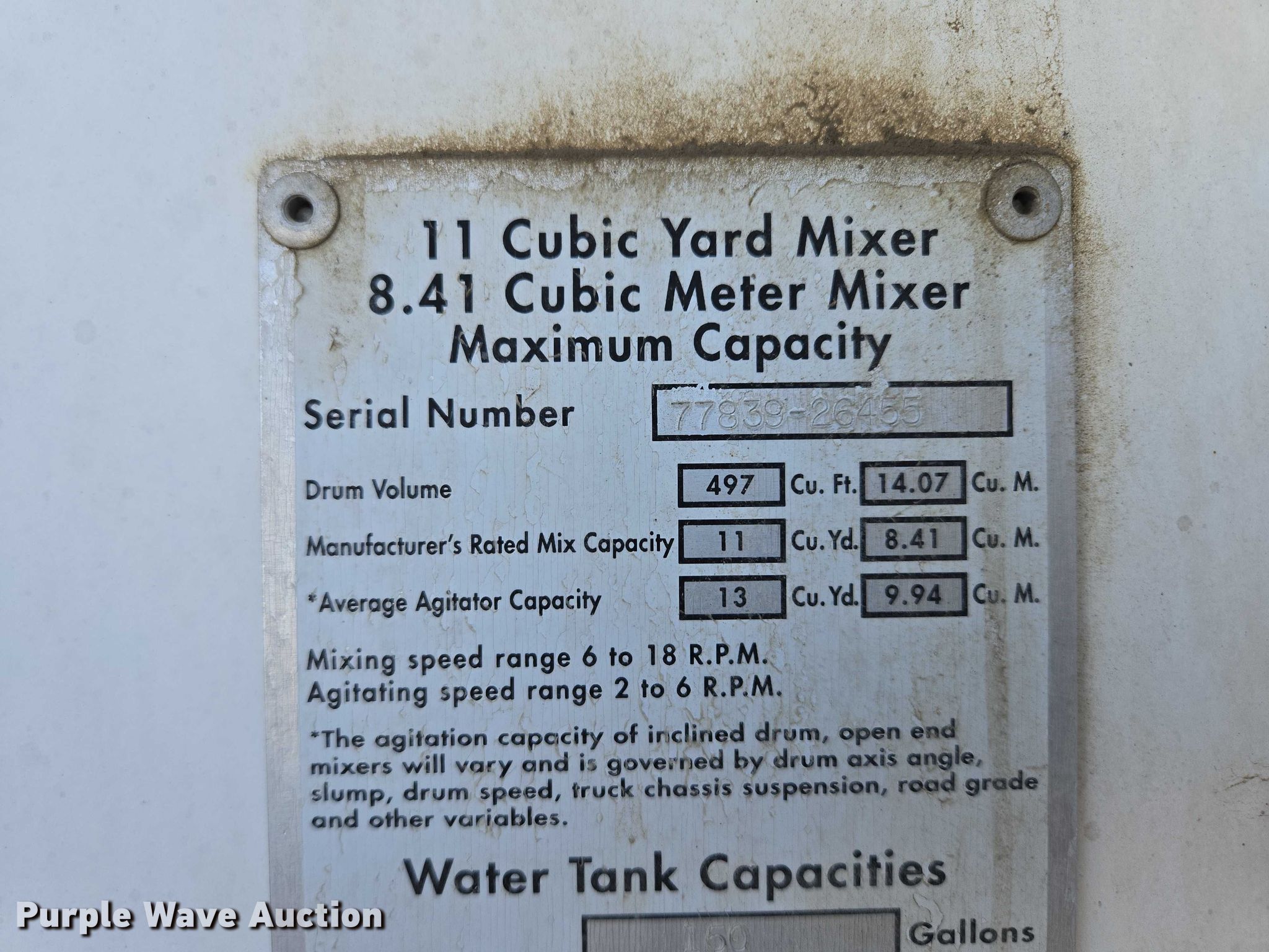 2006 Kenworth W900 ready mix truck. Miles: 340,349 on odometer, Hours: 27,270 on meter, VIN: 2NKWL00X66M149859. Engine Cummins ISM, Displacement: 10.8L, Cylinders: 6, Fuel type: Diesel, HP: 280. Transmission Eaton Fuller 9LL, Manual, Speed: 11. Chassis Axles: Triple, Tag axle Steerable, Differential lock: Inter-axle, Suspension: Spring over walking beam, Brakes: Air, PTO. Interior AC, Heat, Power locks, Cruise control. Features Mixer McNeilus, Serial: 77839-26455, Capacity: 11 cu.yd., Discharge: Rear, In-cab controls, Rear drum controls, Water tank capacity: 150 gallons, Chute Extensions: 3, Chute type: Steel.. Tires Front: 425/65R22.5, Rear: 11R22.5, Lift axle: 11R22.5. Notes Dash warning indicator: Check engine, Engine issues, cranks but does not start , Non-operational unit, Unit must be towed or hauled. Wyoming title. Title distribution may be delayed up to 14 days from verification of funds. Croell Inc. Riverton, WY 82501