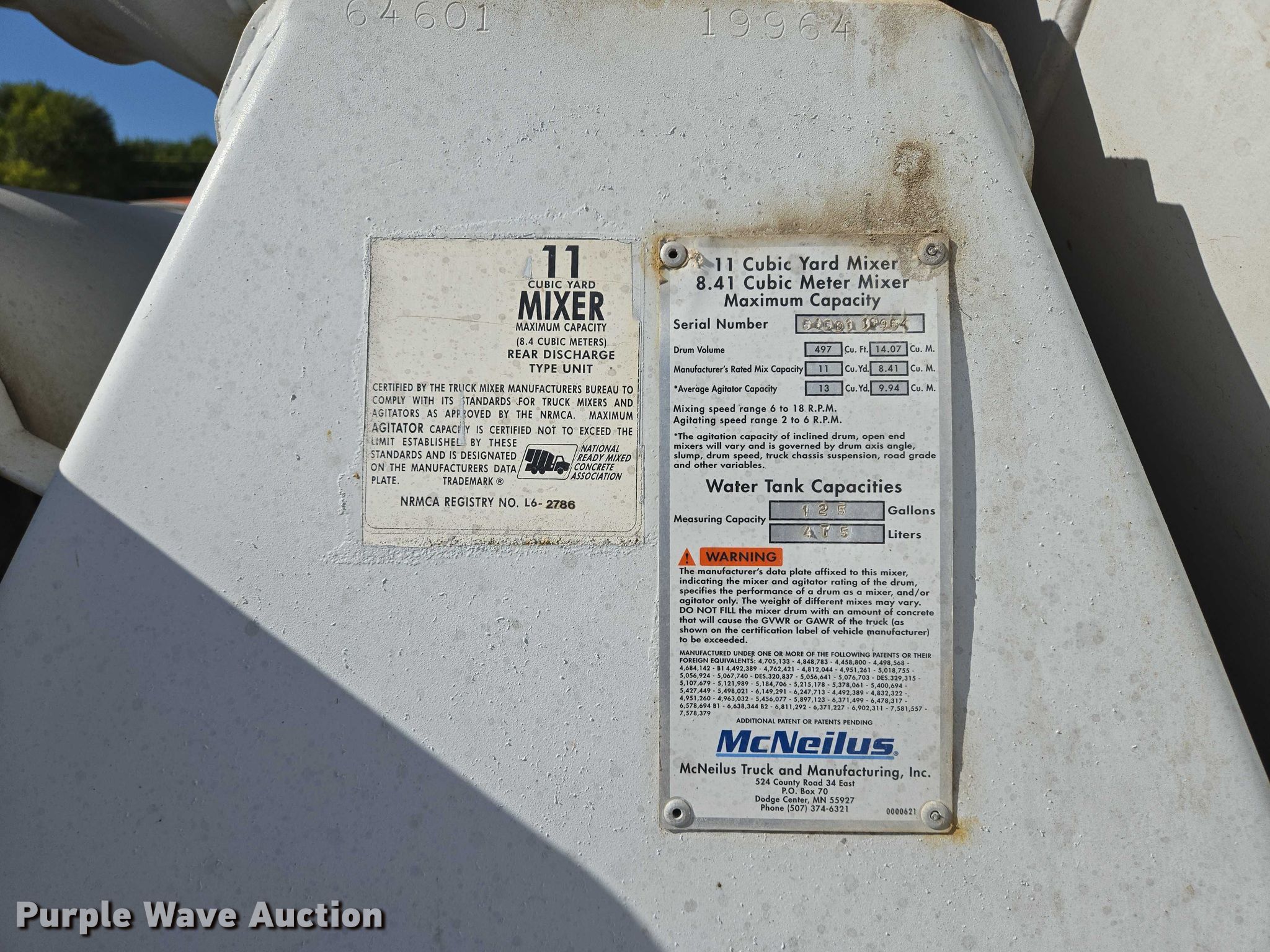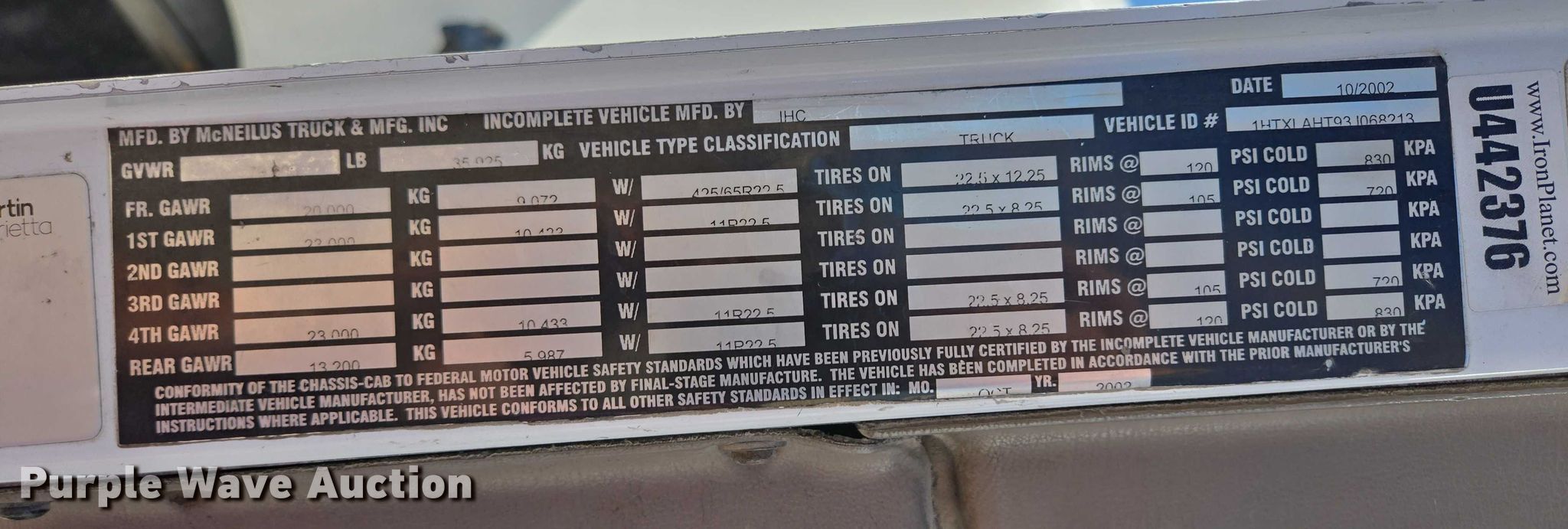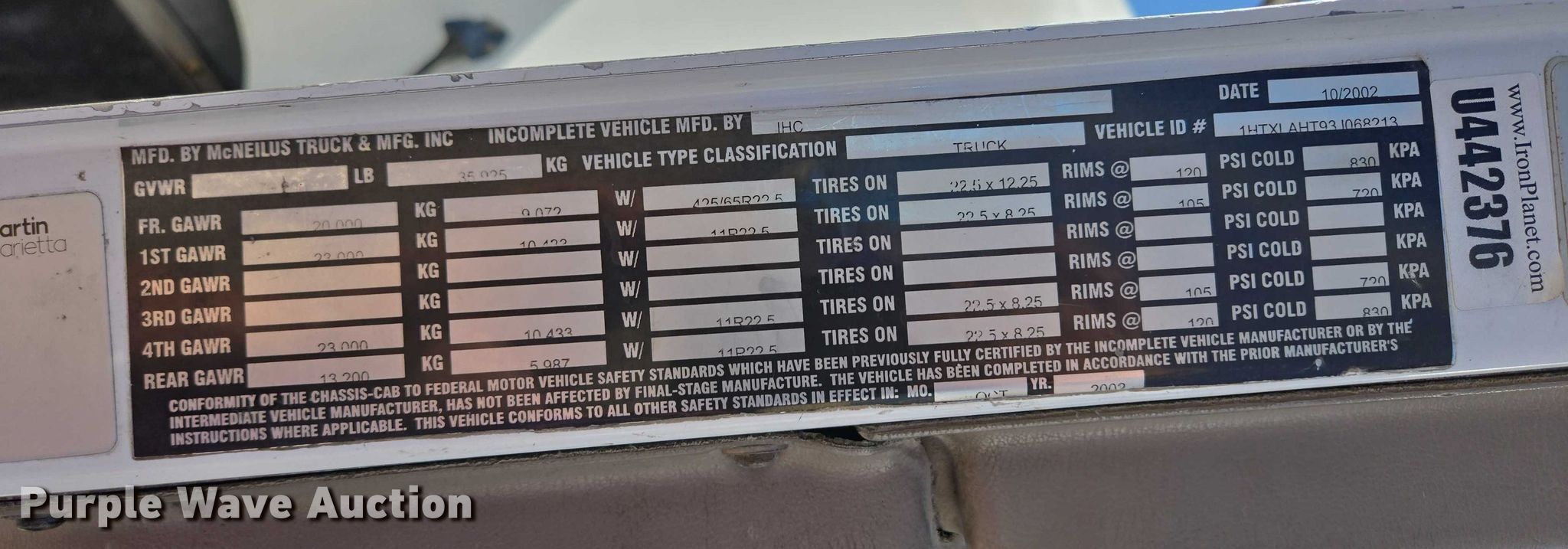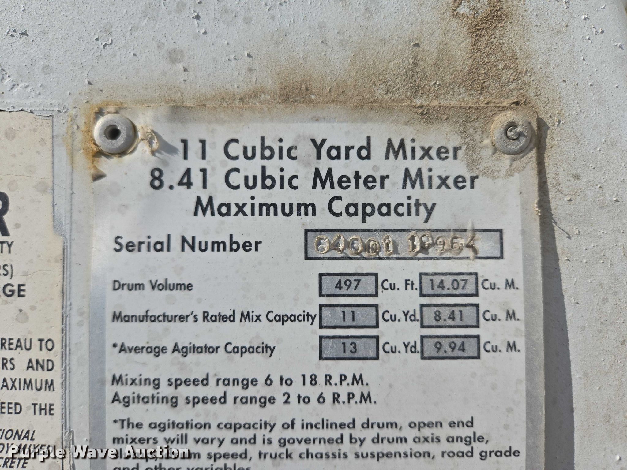 2003 International 5500i ready mix truck. Miles: 292,440 on odometer, Hours: 31,840 on meter, VIN: 1HTXLAHT93J068213. Engine Cummins ISM, Displacement: 10.8L, Cylinders: 6, Fuel type: Diesel, Engine brake. Transmission Eaton Fuller 9LL, Manual, Speed: 11. Chassis Axles: Triple, Tag axle Steerable, Differential lock: Inter-axle, Suspension: Spring over walking beam, Brakes: Air, PTO. Interior AC, Heat, Heated mirrors, Cruise control. Features Mixer McNeilus, Serial: 6460119964, Capacity: 11 cu.yd., Discharge: Rear, In-cab controls, Rear drum controls, Water tank capacity: 150 gallons, Chute Extensions: 3, Chute type: Steel.. Tires Front: 425/65R22.5, Rear: 11R22.5, Lift axle: 11R22.5. Iowa title. Title distribution may be delayed up to 14 days from verification of funds. Croell Inc. Riverton, WY 82501