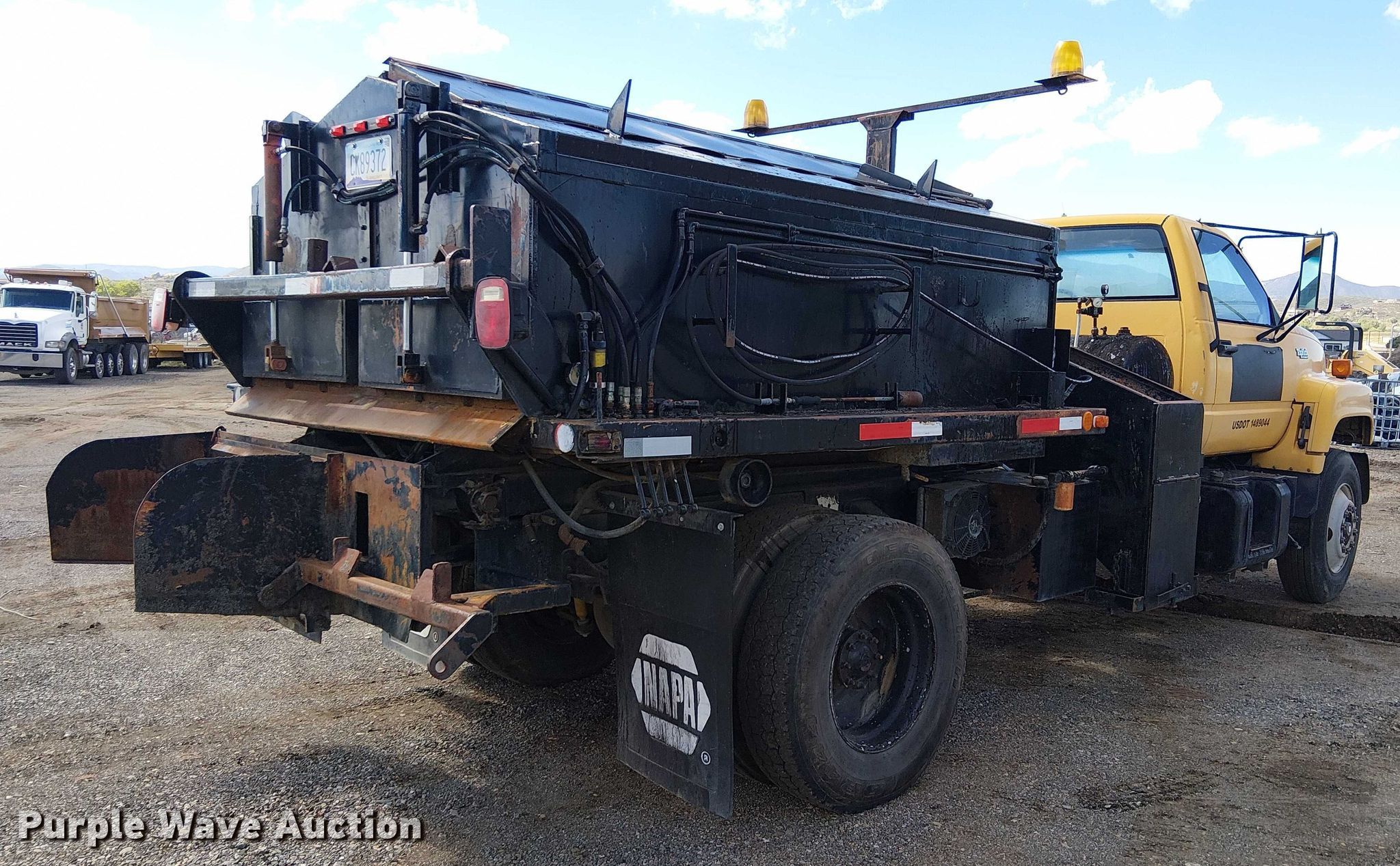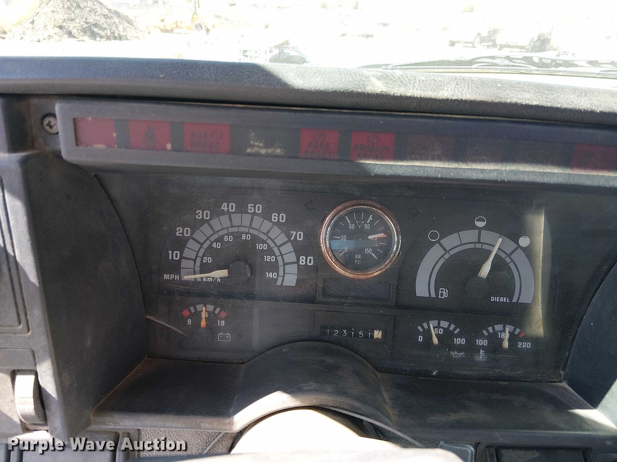 1990 GMC C7 asphalt patch truck. Miles: 123,151 on odometer, Hours: 4,052 on meter, VIN: 1GDP7H1J9LJ610683. Engine Caterpillar, Displacement: 6.6L, Cylinders: 6, Fuel type: Diesel. Transmission Automatic. Chassis Double frame, Axles: Single, Suspension: Spring, Brakes: Air, PTO. Features Bed Dump bed, Length: 9', Width: 92", Bed type: Steel, Ram: Single, End gate: Air operated. Tires Size: 11R22.5. Notes Windshield chipped or cracked, Jump start required during on-site data collection. Arizona title. Title distribution may be delayed up to 30 days from verification of funds. Copperstate Paving & Construction. Dewey-Humboldt, AZ 86327