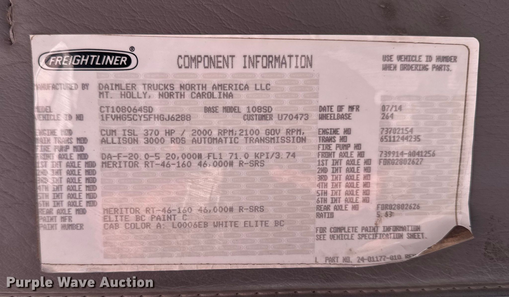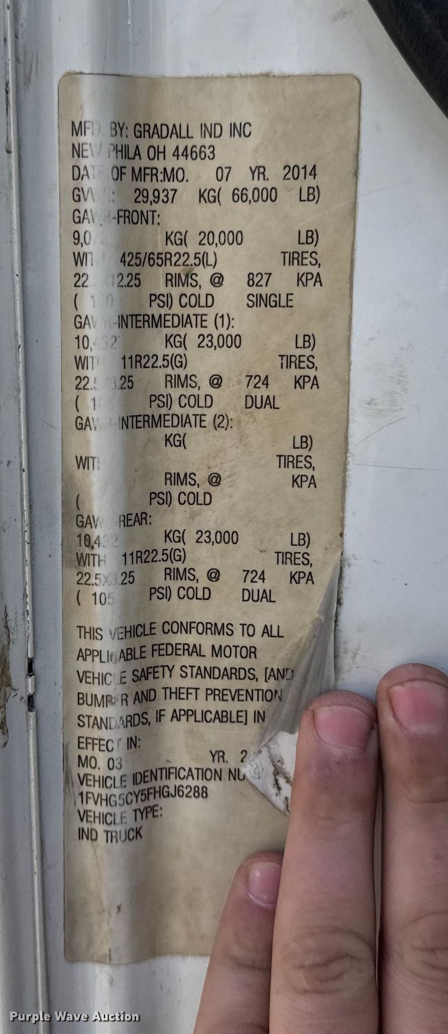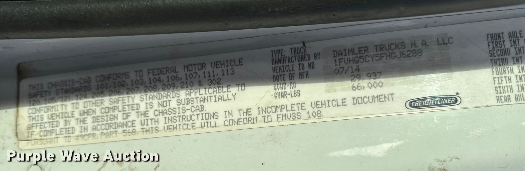 - VIN: 1FVHG5CY5FHGJ6288