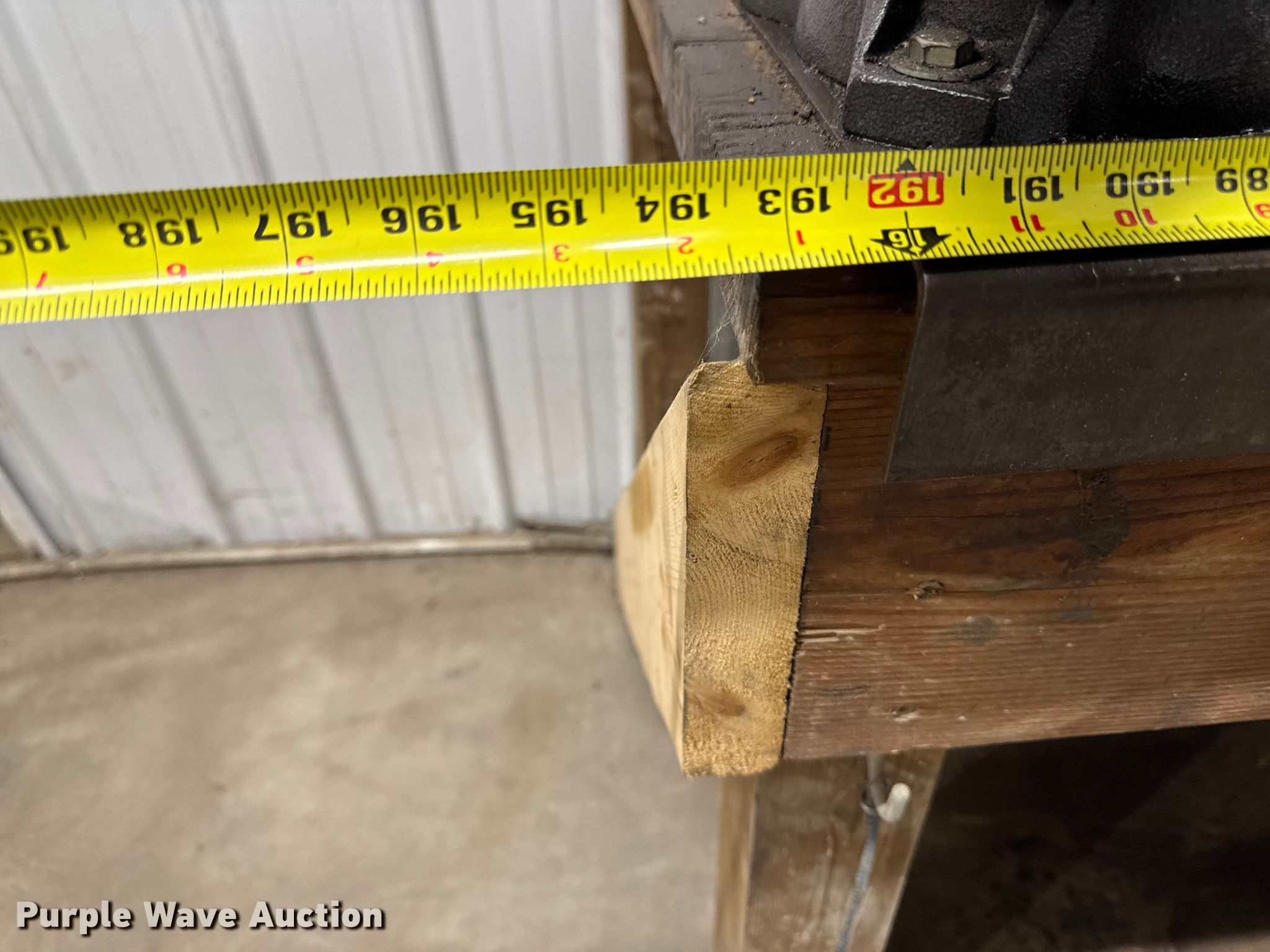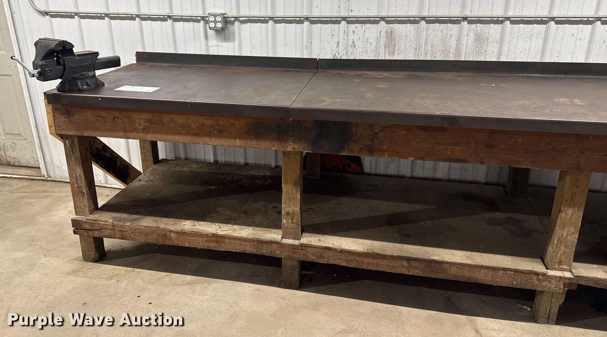 Purple Wave is selling a used Tools in Iowa. This item is a Work bench with the following: Vise, Top: Steel