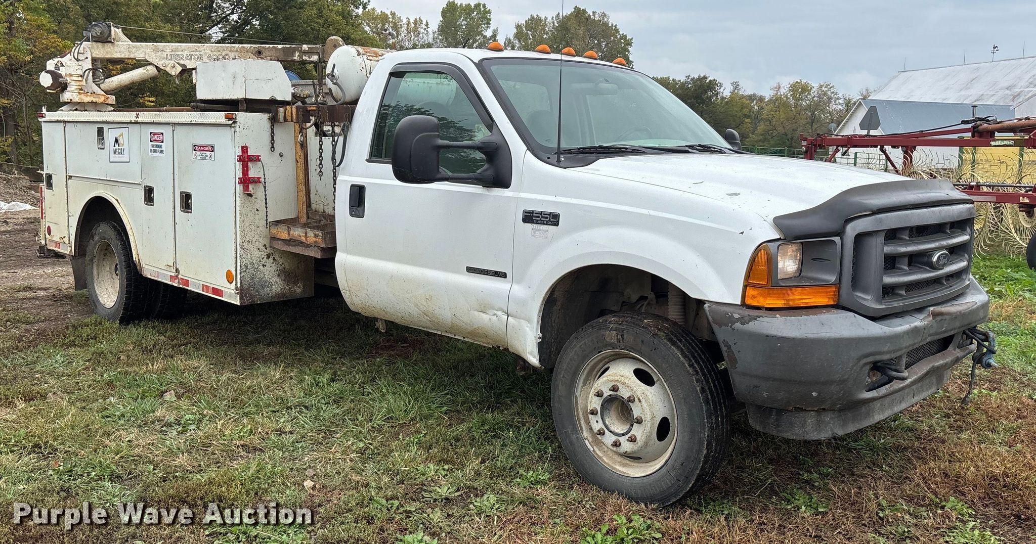 Purple Wave is selling a used Service Truck in Kansas. This item is a 2001 Ford F550 utility / service truck with the following: Miles: 258,432 on odometer, PTO hours: 448 on meter, VIN: 1FDAF56F11EB78978