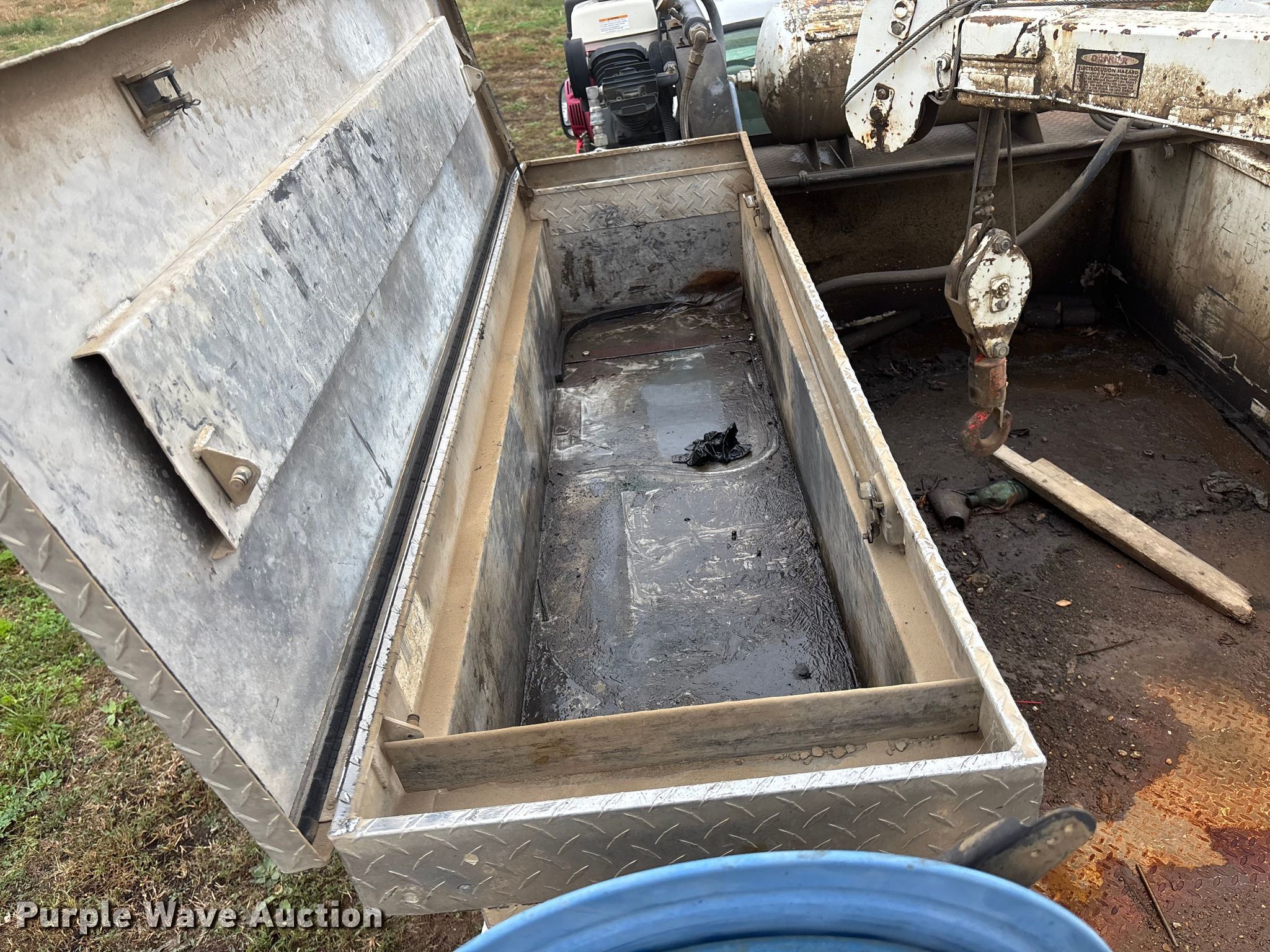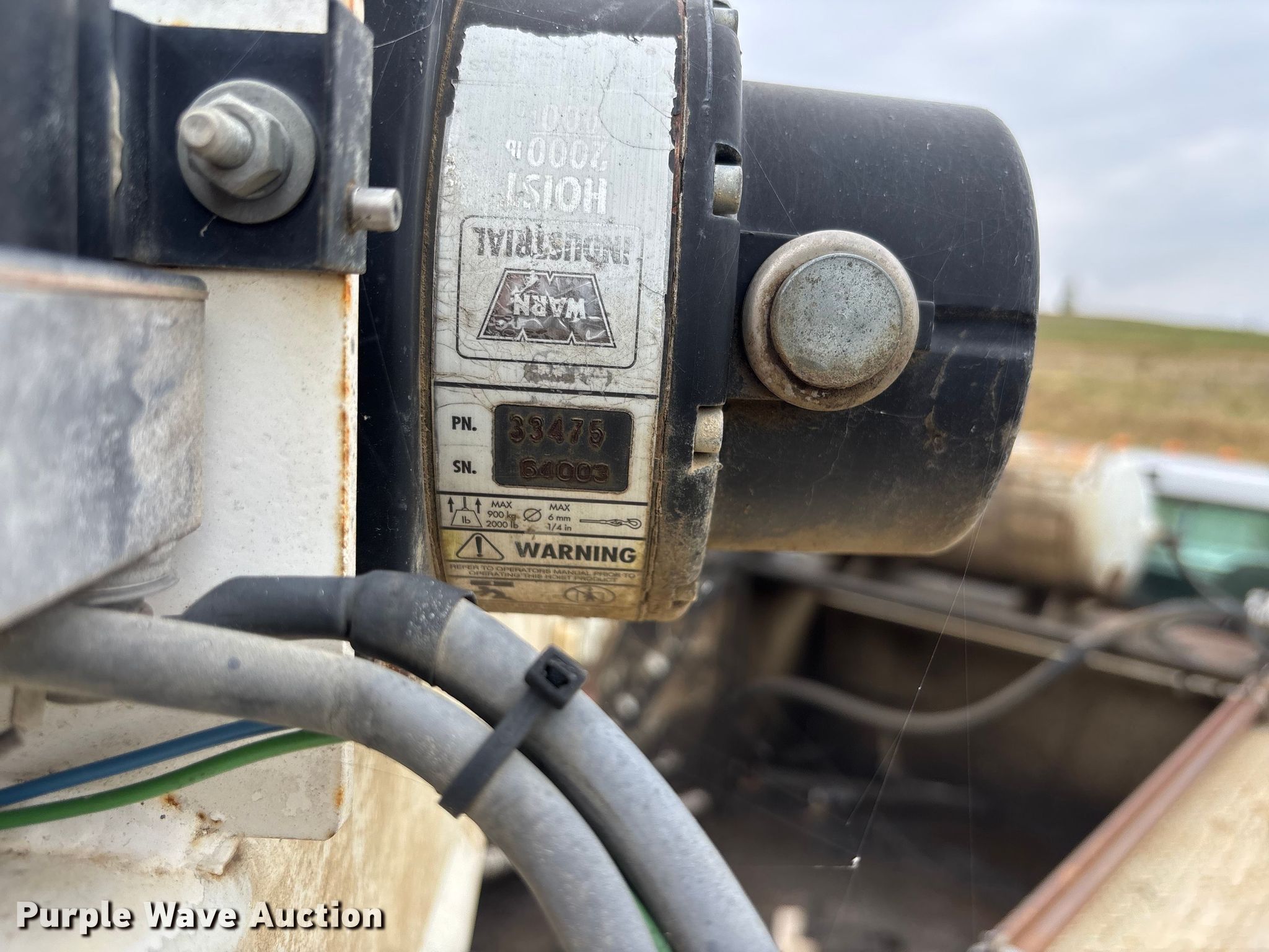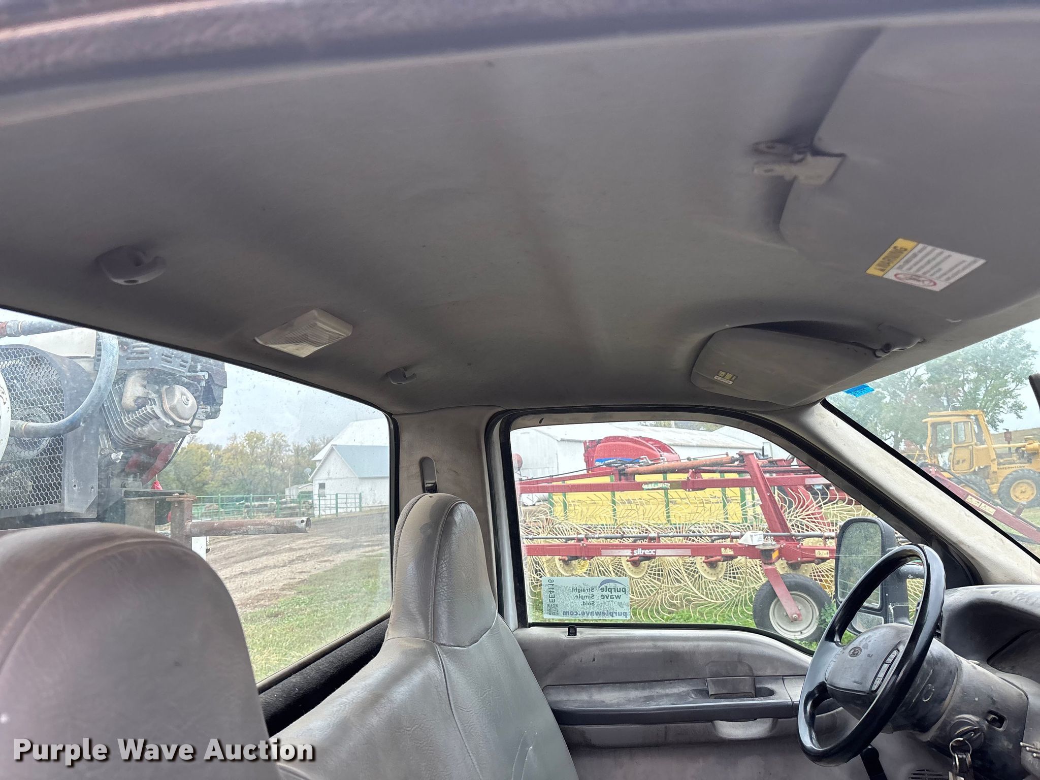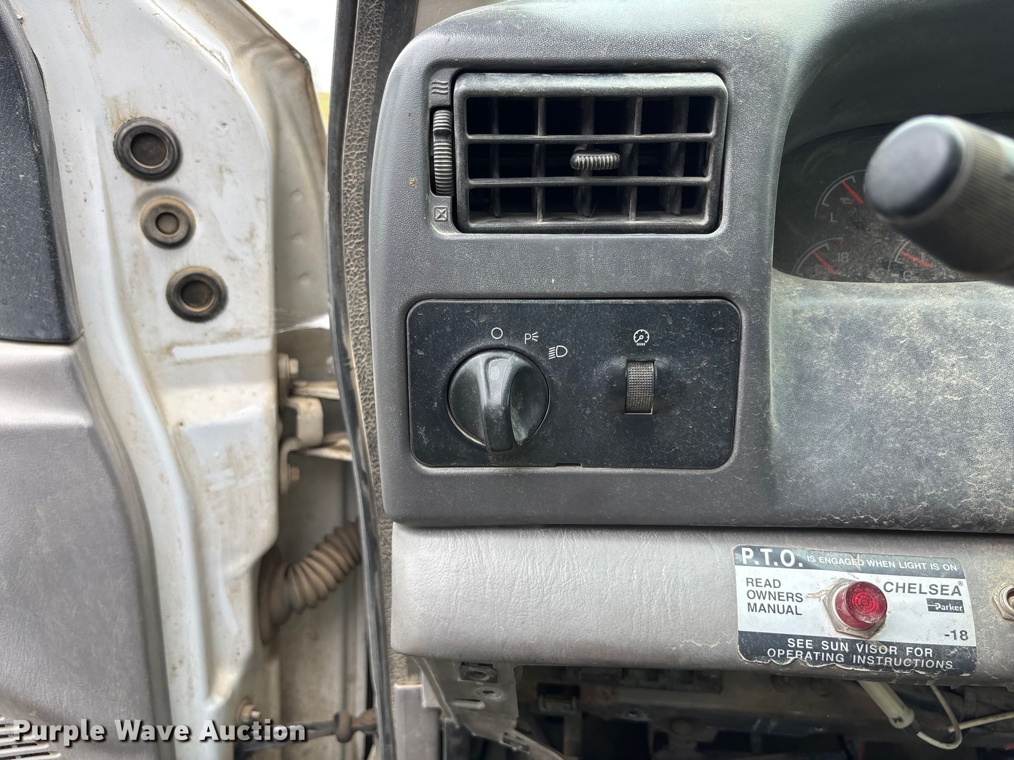2001 Ford F550 utility / service truck. Miles: 258,432 on odometer, PTO hours: 448 on meter, VIN: 1FDAF56F11EB78978. Engine Displacement: 7.3L, Cylinders: 8, Fuel type: Diesel. Transmission Manual, Speed: 6. Chassis Axles: Single, Suspension: Spring, PTO. Interior AC, Heat, Cruise control. Features Bed Utility bed, Length: 11', Width: 94", Air compressor American Industrial, Honda GX390, Oil/lube system Hose reels, Reservoirs Hydraulic fluid, Crane Liberator 4000, Maximum boom length: 18' Maximum lift capacity: 2,000 lbs.. Tires Size: 225/70R19.5. Notes Dash warning indicator: ABS. Kansas title. Title distribution may be delayed up to 14 days from verification of funds. McCoy Rock Quarry. Alma, KS 66401