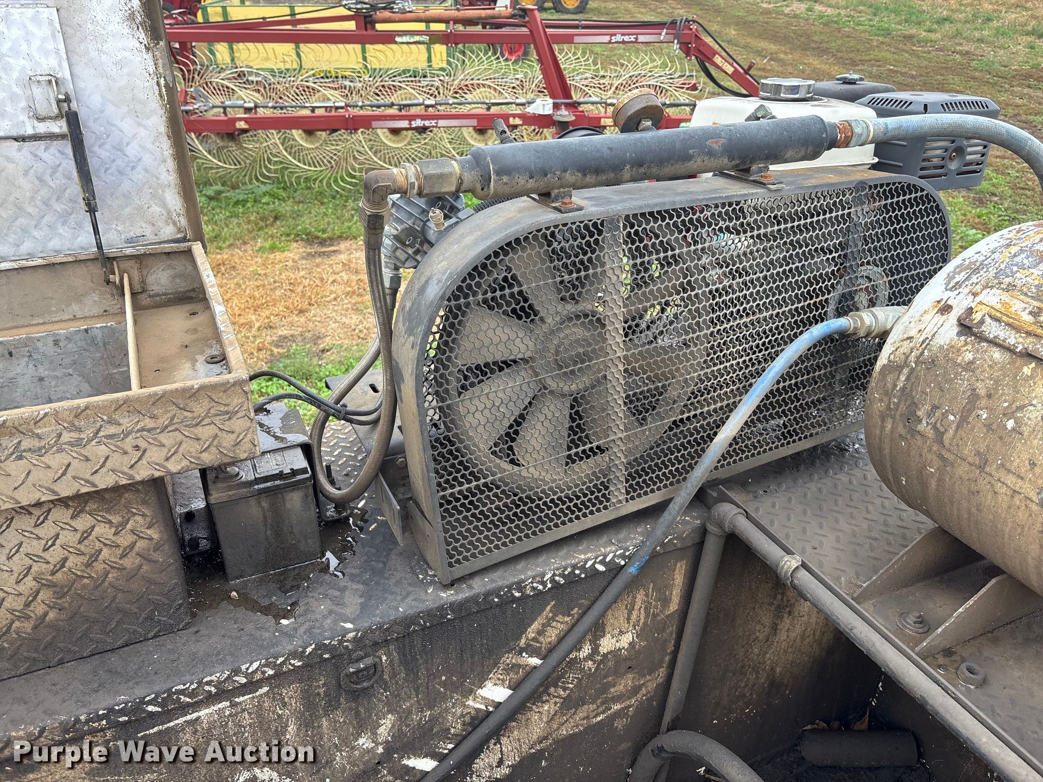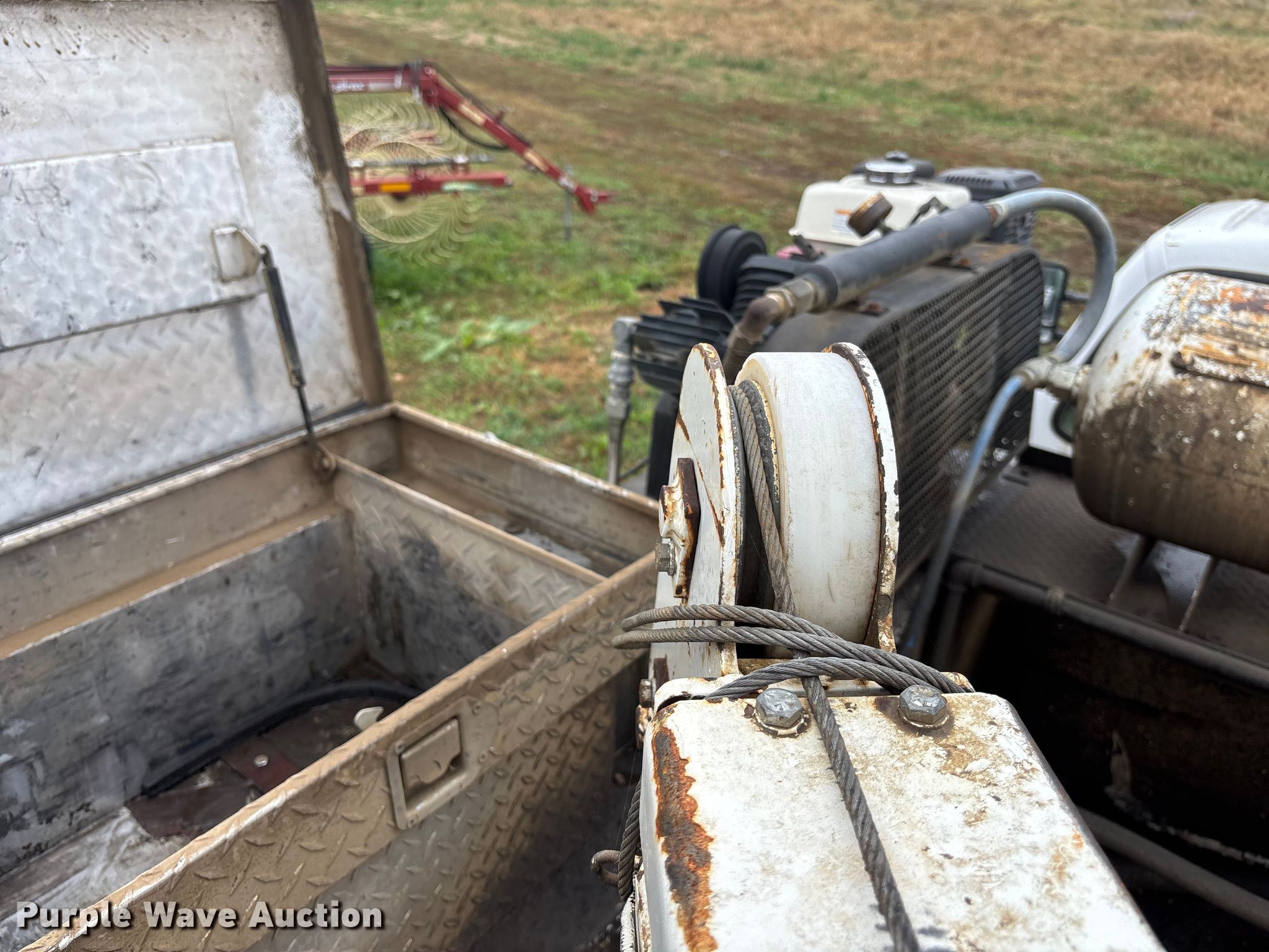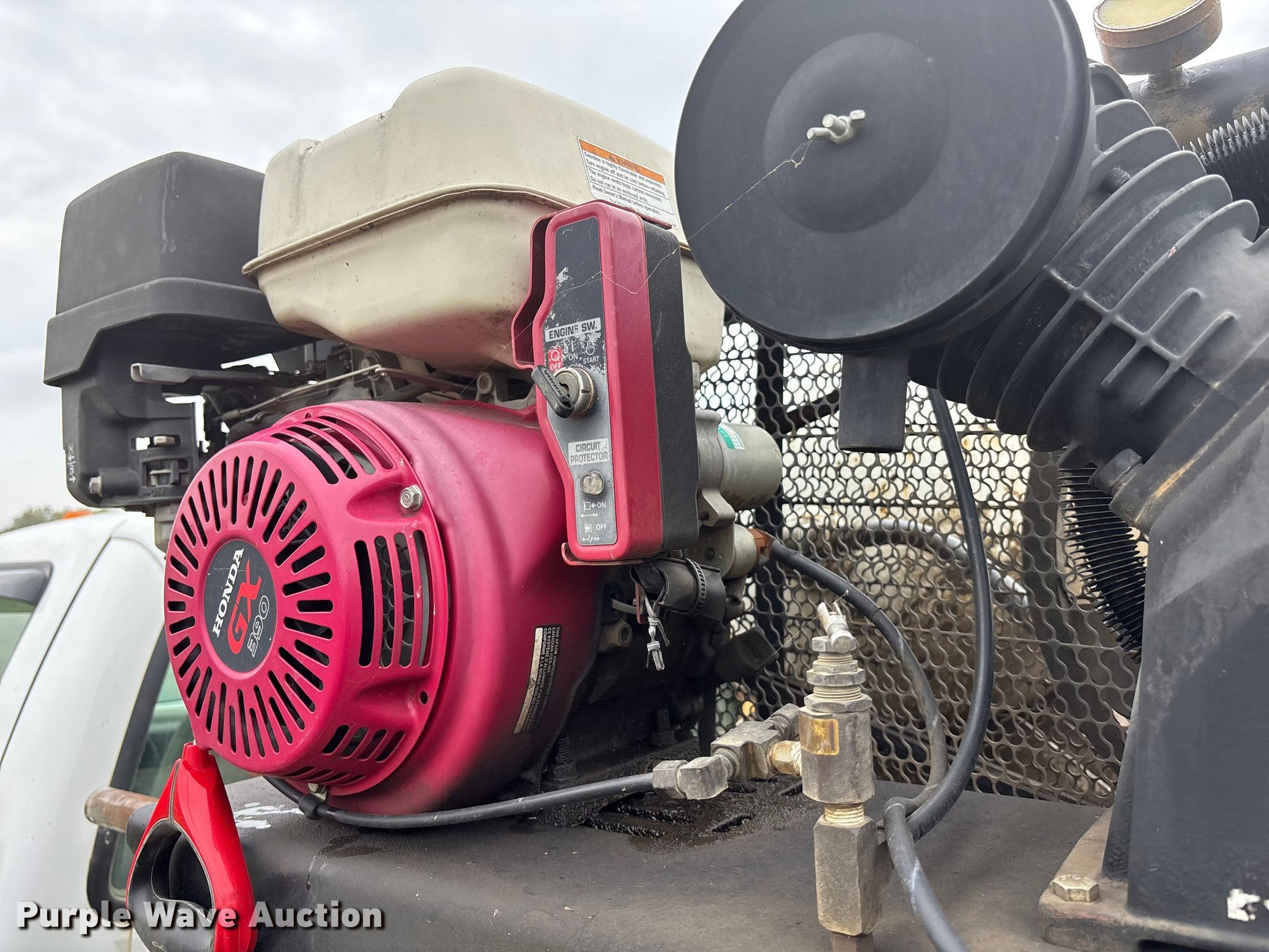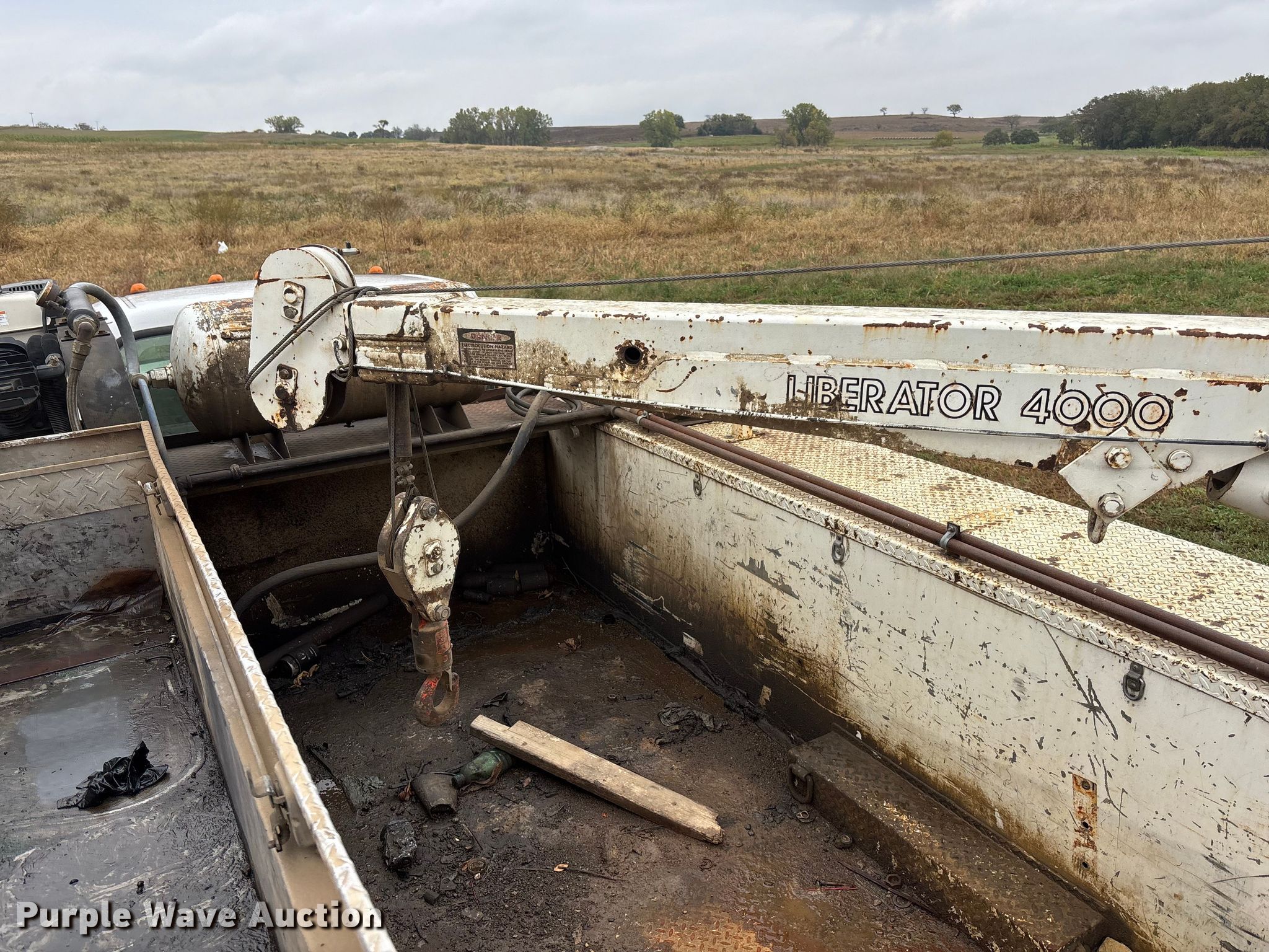 2001 Ford F550 utility / service truck. Miles: 258,432 on odometer, PTO hours: 448 on meter, VIN: 1FDAF56F11EB78978. Engine Displacement: 7.3L, Cylinders: 8, Fuel type: Diesel. Transmission Manual, Speed: 6. Chassis Axles: Single, Suspension: Spring, PTO. Interior AC, Heat, Cruise control. Features Bed Utility bed, Length: 11', Width: 94", Air compressor American Industrial, Honda GX390, Oil/lube system Hose reels, Reservoirs Hydraulic fluid, Crane Liberator 4000, Maximum boom length: 18' Maximum lift capacity: 2,000 lbs.. Tires Size: 225/70R19.5. Notes Dash warning indicator: ABS. Kansas title. Title distribution may be delayed up to 14 days from verification of funds. McCoy Rock Quarry. Alma, KS 66401
