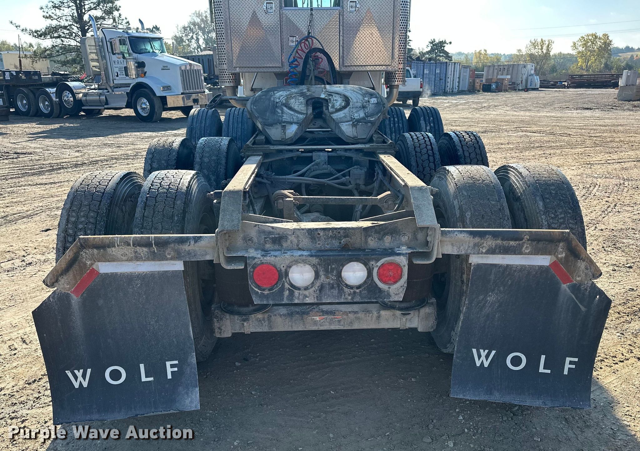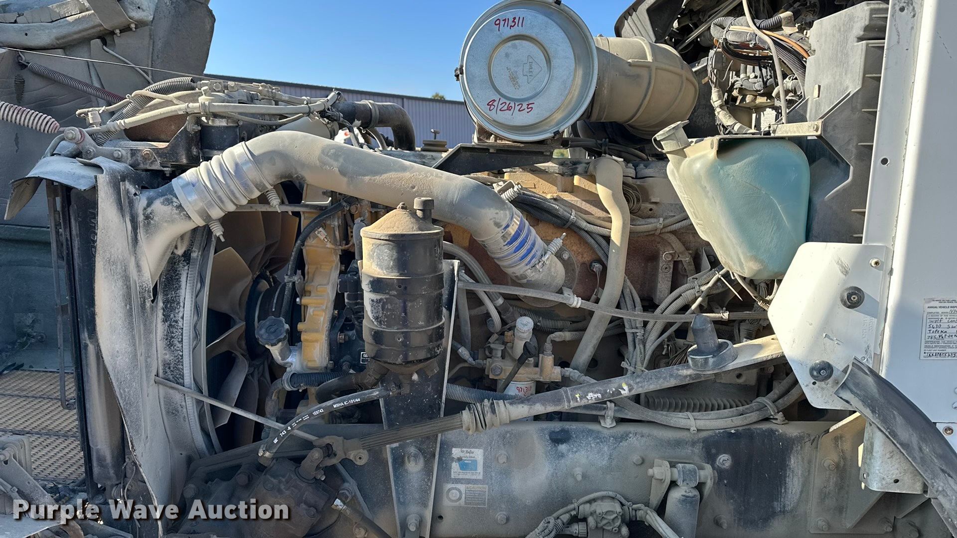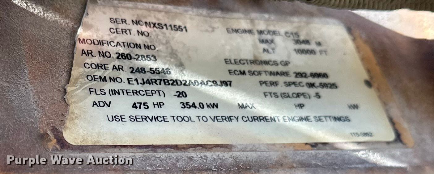 2007 Kenworth T800 semi truck. Miles: 971,858 on odometer, Hours: 25,741 on meter, VIN: 1XKDPBTX27J197635, Unit #: TRK400. Engine Caterpillar C15, Serial: NCNXS11551, Displacement: 14.6L, Cylinders: 6, Fuel type: Diesel, Engine brake. Transmission Eaton Fuller, Manual, Speed: 18. Chassis Axles: Tandem, Pusher axle, Differential lock: Inter-axle, Suspension: Air, Brakes: Air, PTO, Wet kit. Interior AC, Heat, Power windows, Cruise control, Air ride cab. Features Deck plate: Aluminum, Fifth wheel type: Air operated, Sliding, Fuel tank: Dual. Tires Size: 11R22.5, Lift axle: 11R22.5. Kansas title. Title distribution may be delayed up to 14 days from verification of funds. Wolf Construction. Topeka, KS 66609
