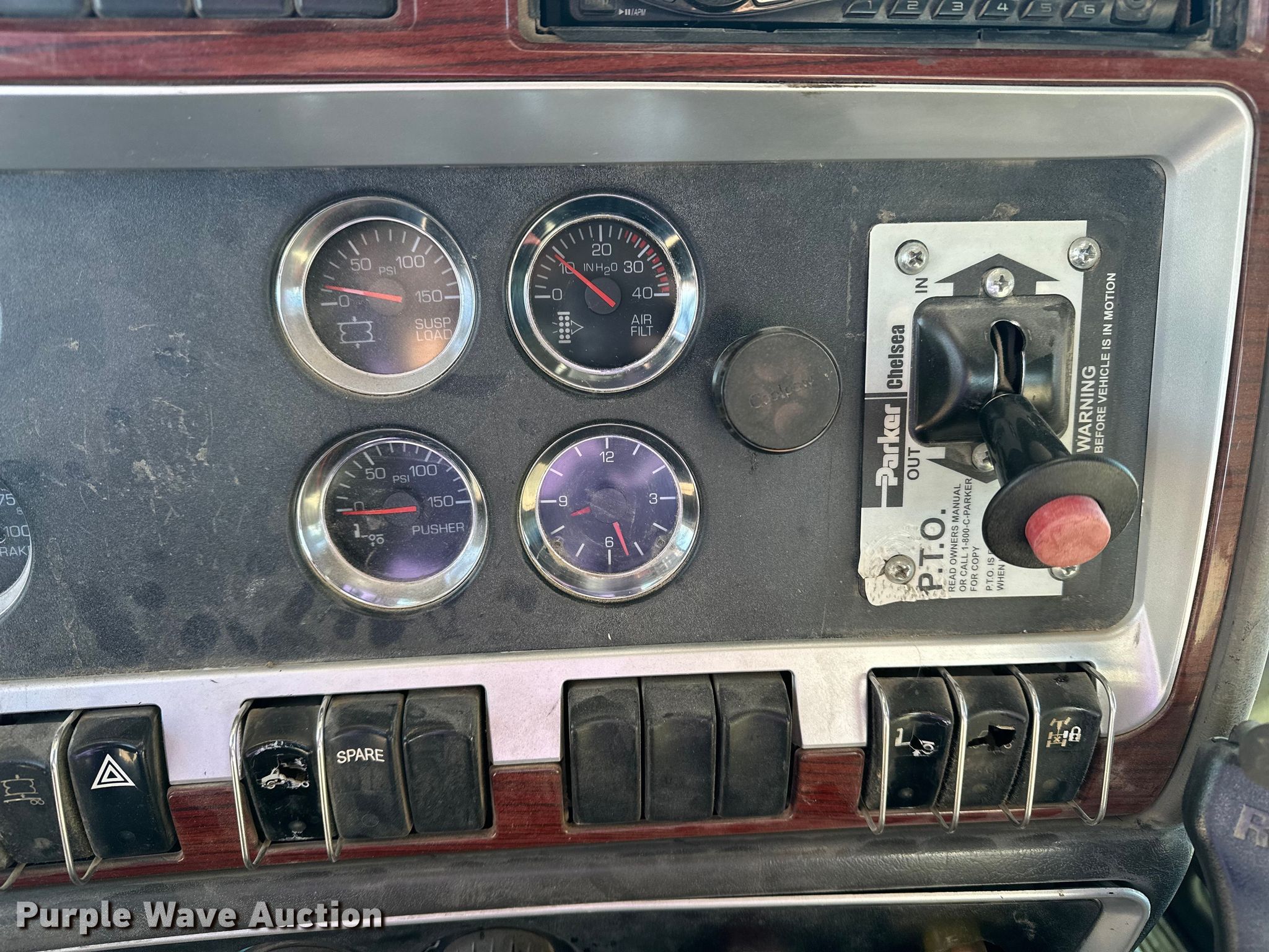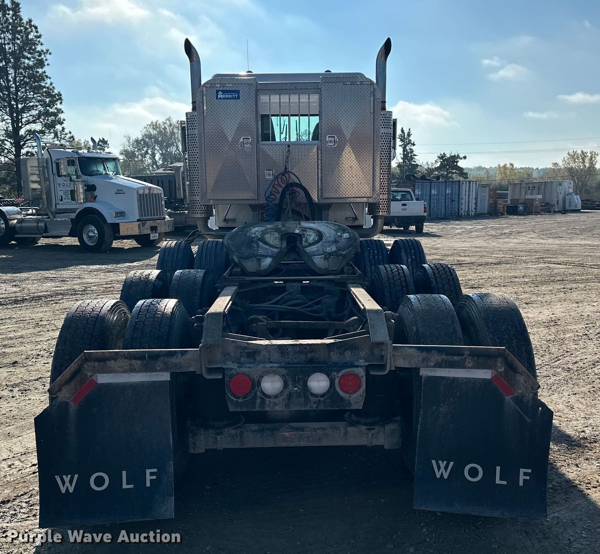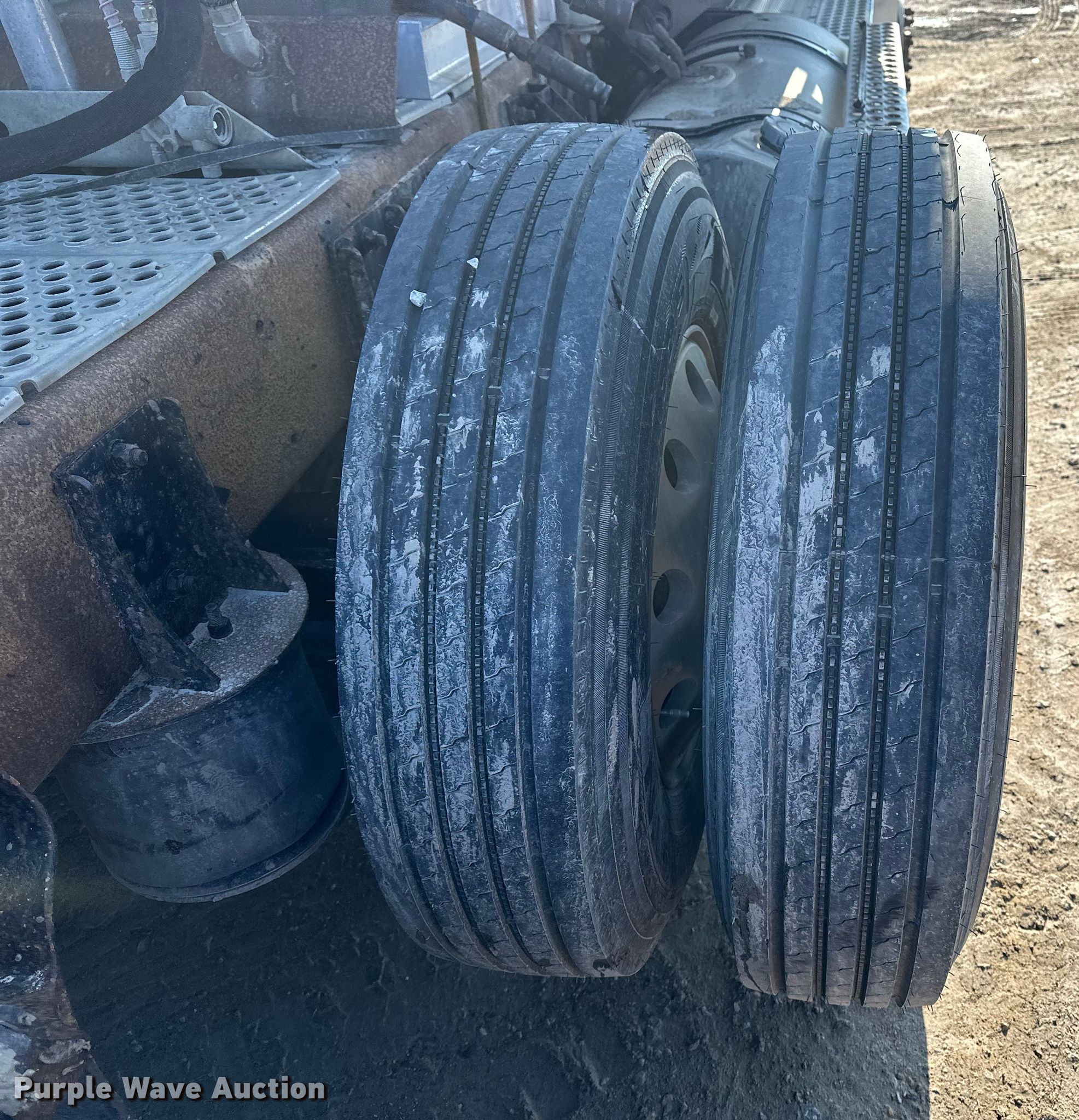2007 Kenworth T800 semi truck. Miles: 971,858 on odometer, Hours: 25,741 on meter, VIN: 1XKDPBTX27J197635, Unit #: TRK400. Engine Caterpillar C15, Serial: NCNXS11551, Displacement: 14.6L, Cylinders: 6, Fuel type: Diesel, Engine brake. Transmission Eaton Fuller, Manual, Speed: 18. Chassis Axles: Tandem, Pusher axle, Differential lock: Inter-axle, Suspension: Air, Brakes: Air, PTO, Wet kit. Interior AC, Heat, Power windows, Cruise control, Air ride cab. Features Deck plate: Aluminum, Fifth wheel type: Air operated, Sliding, Fuel tank: Dual. Tires Size: 11R22.5, Lift axle: 11R22.5. Kansas title. Title distribution may be delayed up to 14 days from verification of funds. Wolf Construction. Topeka, KS 66609