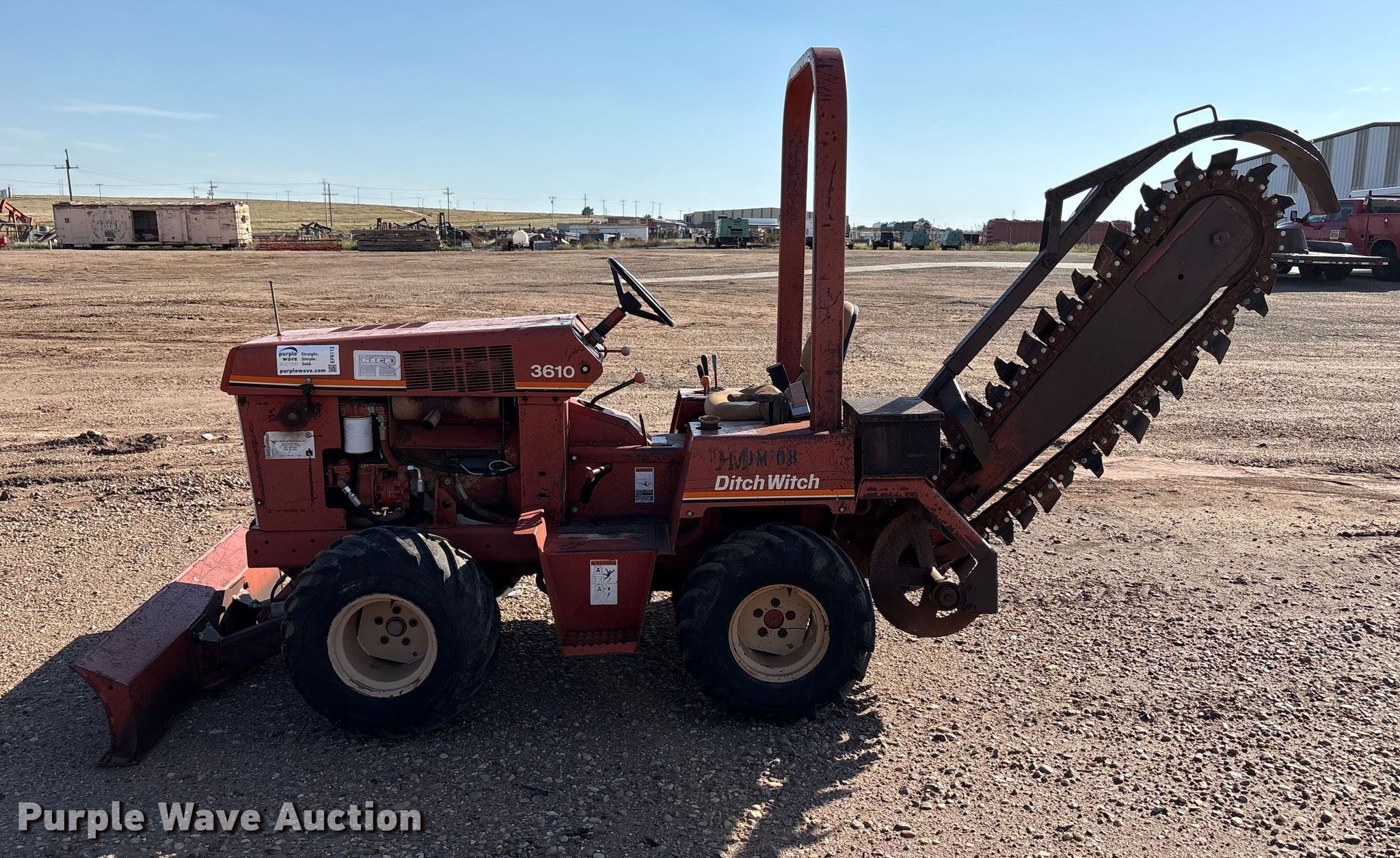 Purple Wave is selling a used Trencher or Rock Saw in Texas. This item is a 1995 Ditch Witch 3610 trencher with the following: Hours: 1,875 on meter, Serial: 3M0168, Unit #: DM08