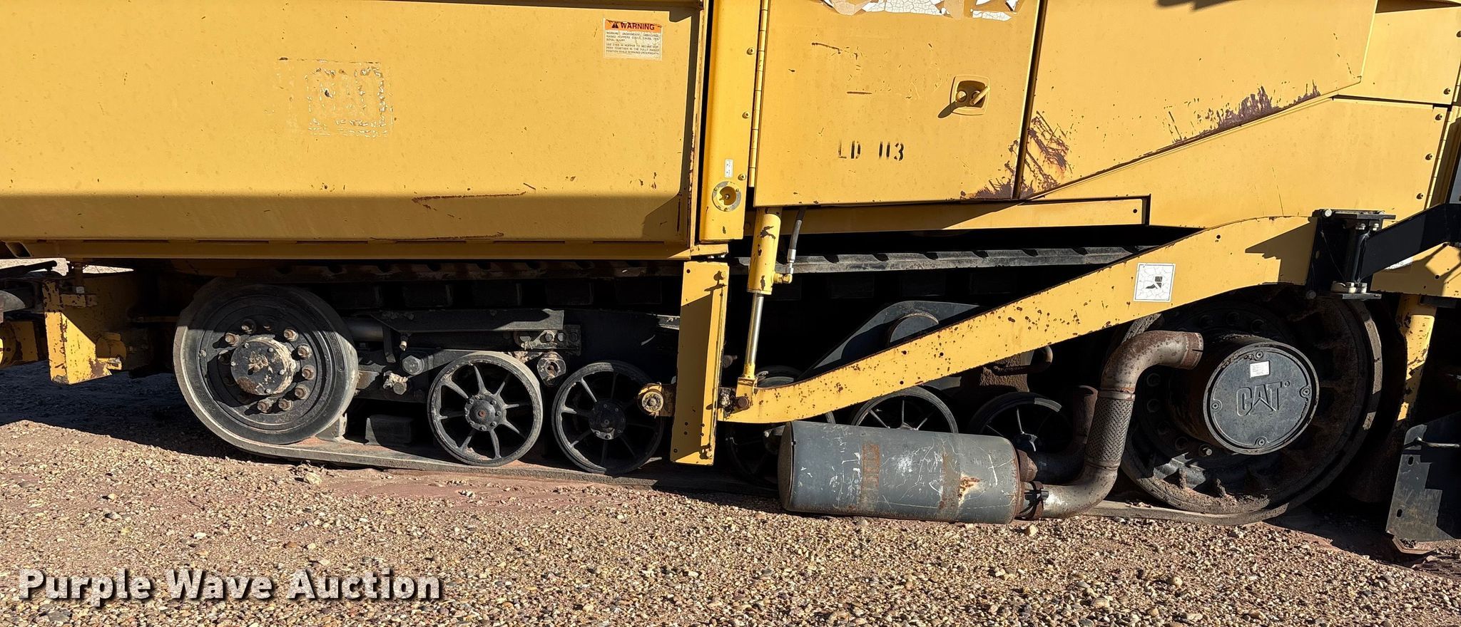 2004 Caterpillar AP-655C paver. Miles or hours may vary, unit still in use, Serial: CATAP655ECDG00325, Unit #: LD113. Engine No engine. Transmission Hydrostatic. Tracks Width: 16", Rubber. Notes Partially disassembled, Parts may be missing, Non-operational unit. Borger, TX 79007