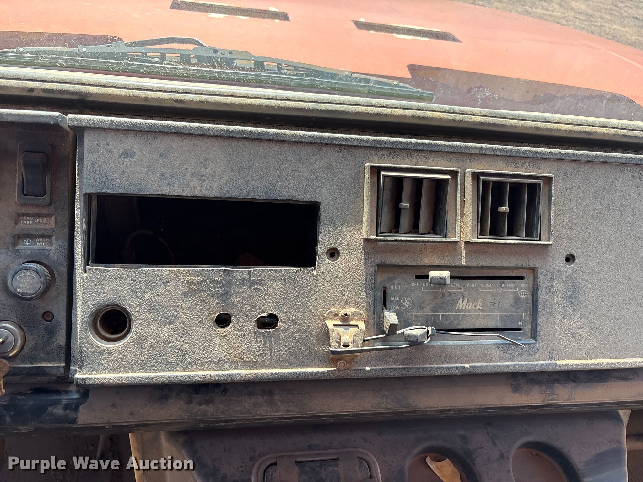 1989 Mack CM flatbed truck. Miles: 27,855 on odometer, Miles: Actual unknown, VIN: 1M2BC03Y9KM001317, Unit #: FB-04. Engine Displacement: 9.8L, Cylinders: 6, Fuel type: Diesel, HP: 240. Transmission Manual, Speed: 5. Chassis Axles: Single, Suspension: Spring, Brakes: Air. Interior AC, Heat. Features Bed Flatbed. Tires Size: 295/75R22.5. Notes Windshield chipped or cracked, Odometer has been replaced. Texas title. Mileage has not been verified. Exempt will be written in the odometer disclosure on the title. Title distribution may be delayed up to 30 days from verification of funds. Borger, TX 79007