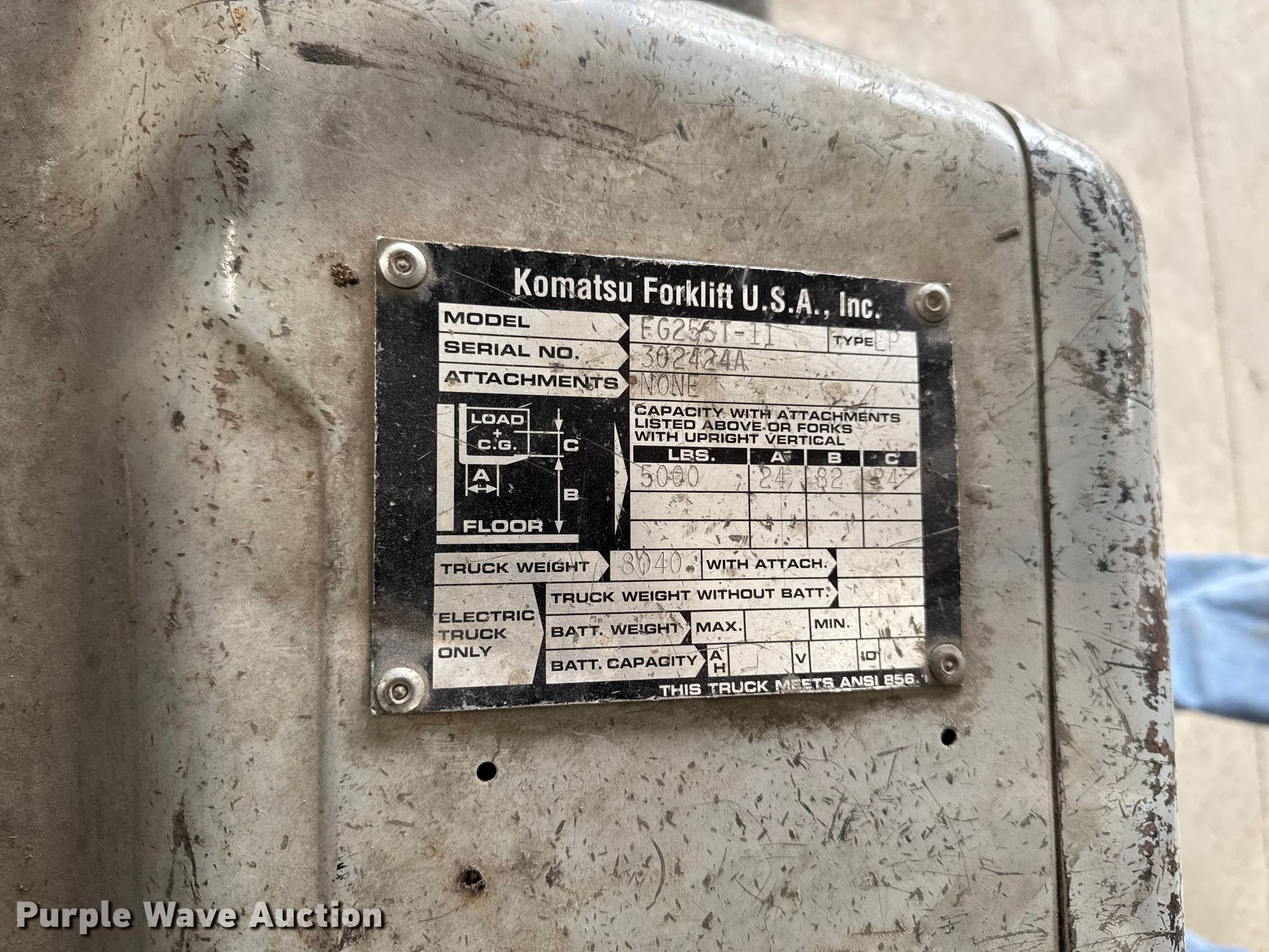 Purple Wave is selling a used Warehouse Forklift in Iowa. This item is a Komatsu FG25ST-11 forklift with the following: Hours: Unknown, Serial: 302424A