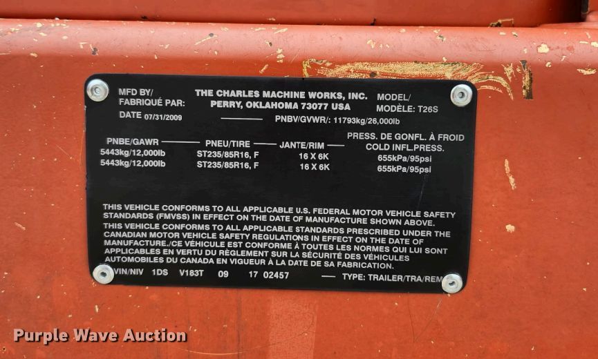 2009 Ditch Witch FX30 vacuum excavator. Hours: 3,282 on meter, VIN: 1DSV183T0902457, Serial: CMWZF3XZC90000001. Engine Kubota D1105-T, Cylinders: 3, Fuel type: Diesel. Features Spoils tank Capacity: 1,200 gallons, Water tank Capacity: 400 gallons, Water pump Model: 157-350, Vacuum pump Tuthill, Inlet valve size: 4", Outlet valve size: 6". Trailer 20' L x 100" W, Hitch: Pintle, Suspension: Spring, Brakes: Electric, Axles: Tandem, Tire size: 235/85R16. Kansas title. Title distribution may be delayed up to 30 days from verification of funds. Wichita, KS 67216