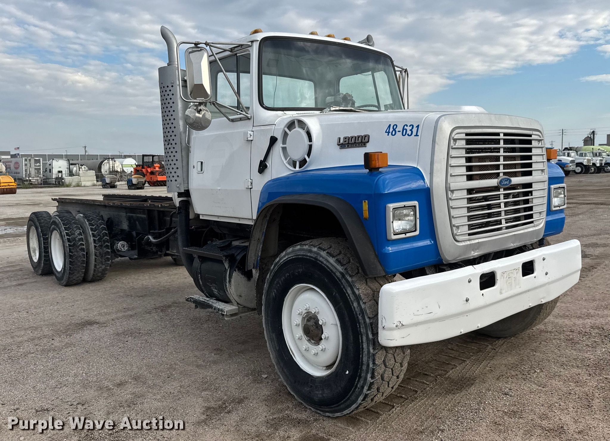 Purple Wave is selling a used Truck Chassis in Kansas. This item is a 1993 Ford LT8000 truck cab and chassis with the following: Miles: 155,414 on odometer, Hours: 3,158 on meter, VIN: 1FDZU82E0PVA19384