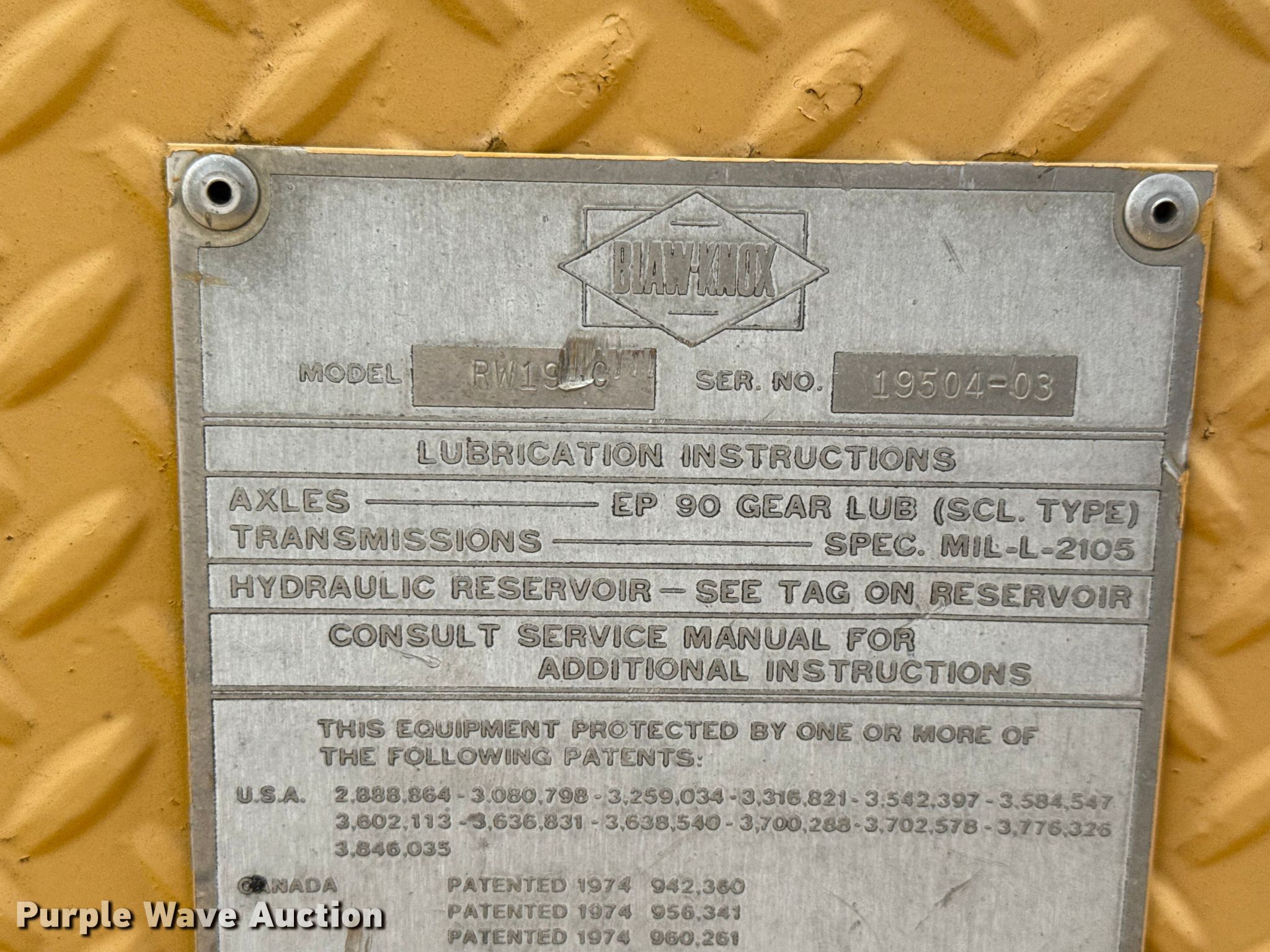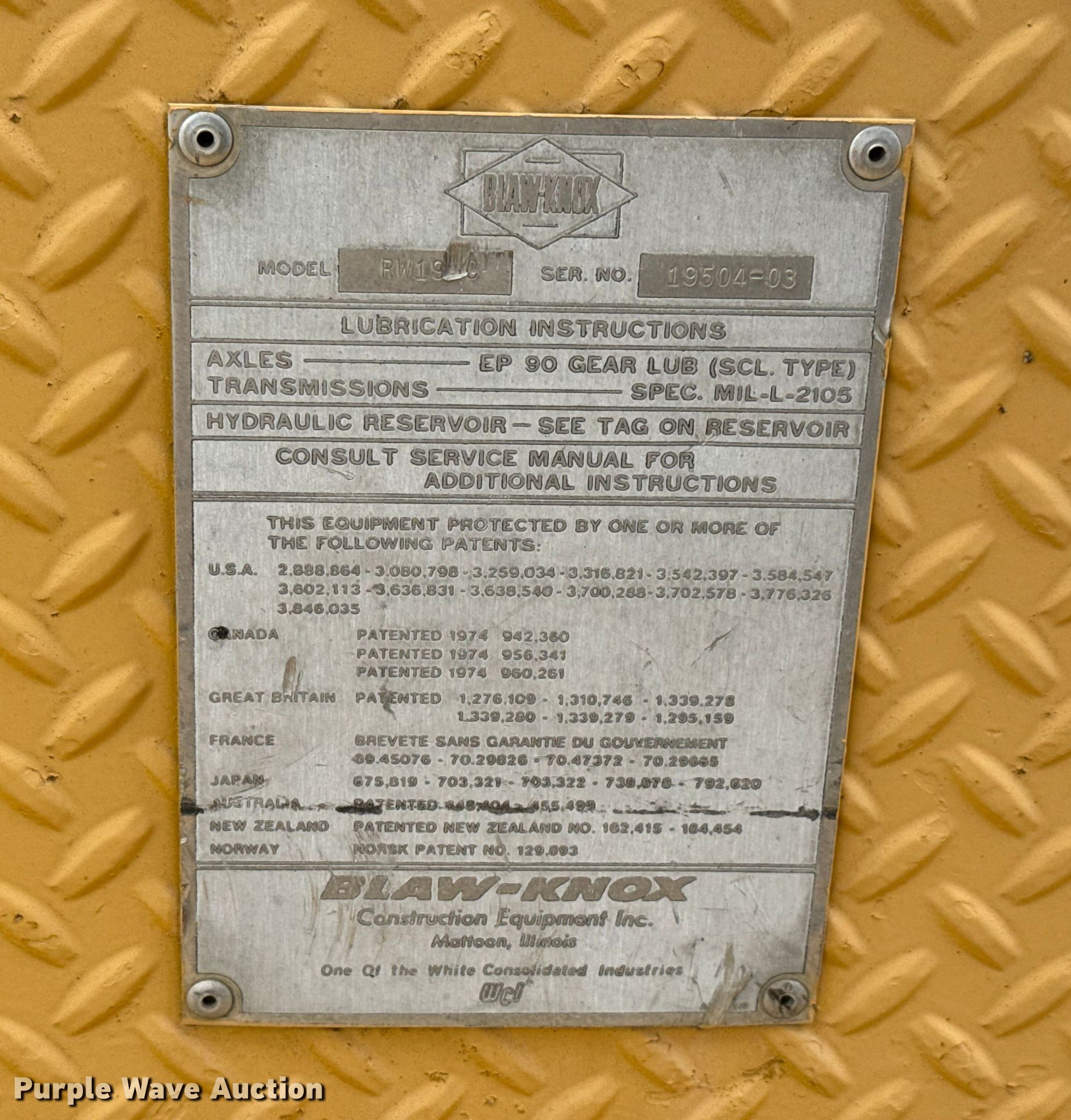 Purple Wave is selling a used Road Widener in Kansas. This item is a 1985 Blaw-Knox RW195C road widener with the following: Hours: Unknown, Serial: 19504-03