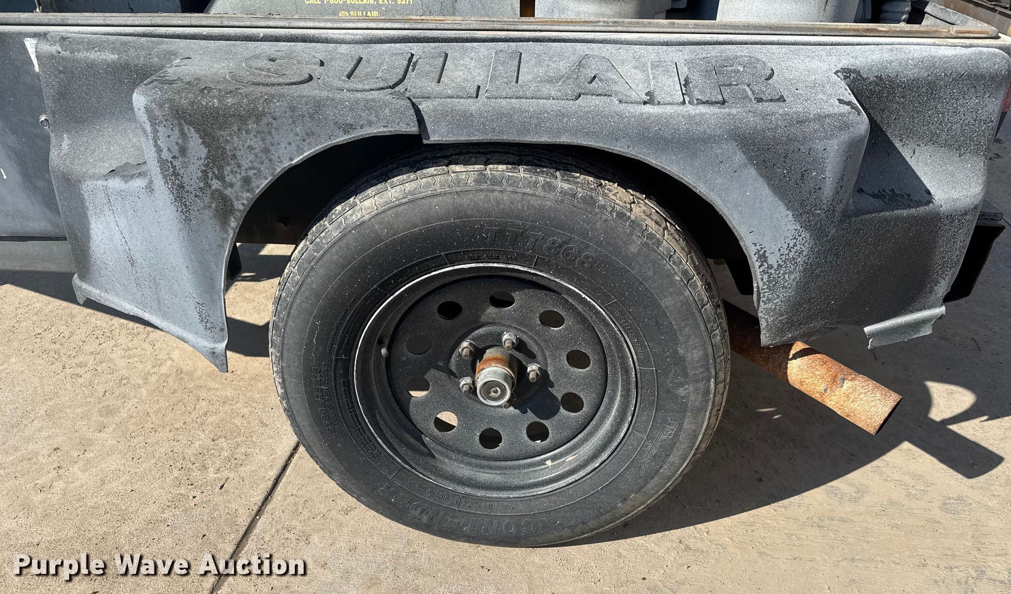 Sullair 185DPQJD air compressor. Hours: 4,127 on meter, Serial: 004-149808. Engine John Deere 4024TF270, Serial: PE4024T165129, Cylinders: 4, Fuel type: Diesel. Features Air compressor CFM: 185, PSI: 125. Trailer 11' L x 60" W, Ball hitch size: 2 5/16", Suspension: Torsion, Axles: Single, Tire size: 205/75R15. This is worksite support equipment and will not come with a title. Transfer of ownership documentation will be a bill of sale. M & M Pipeline Services Inc.. Lyons, KS 67554