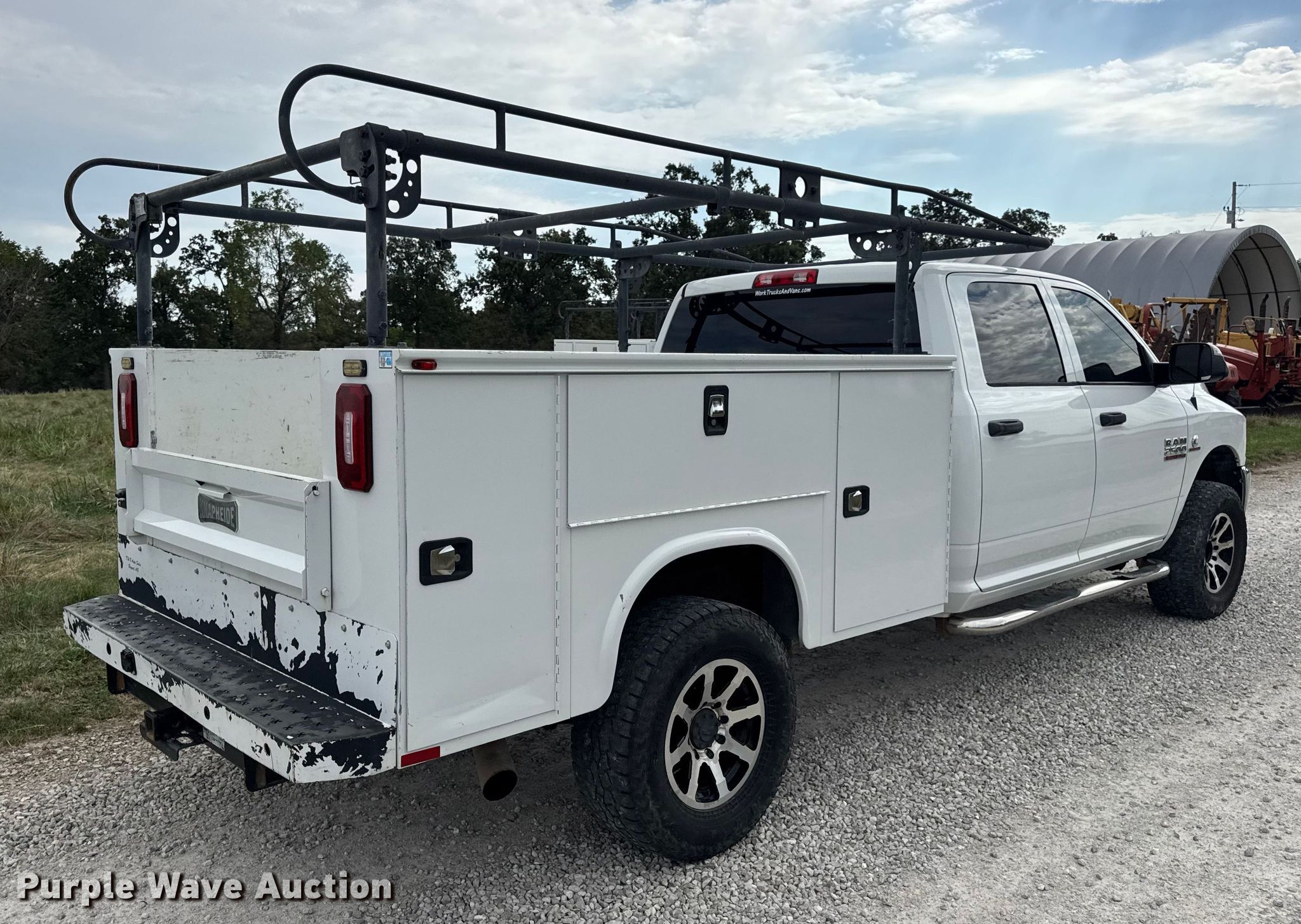 Purple Wave is selling a used 3/4 or 1 Ton Pickup or Van in Missouri. This item is a 2015 RAM 2500 Crew Cab utility bed pickup truck with the following: Miles: 183,096 on odometer, Hours: 13,274 on meter, VIN: 3C6UR5HL8FG510076