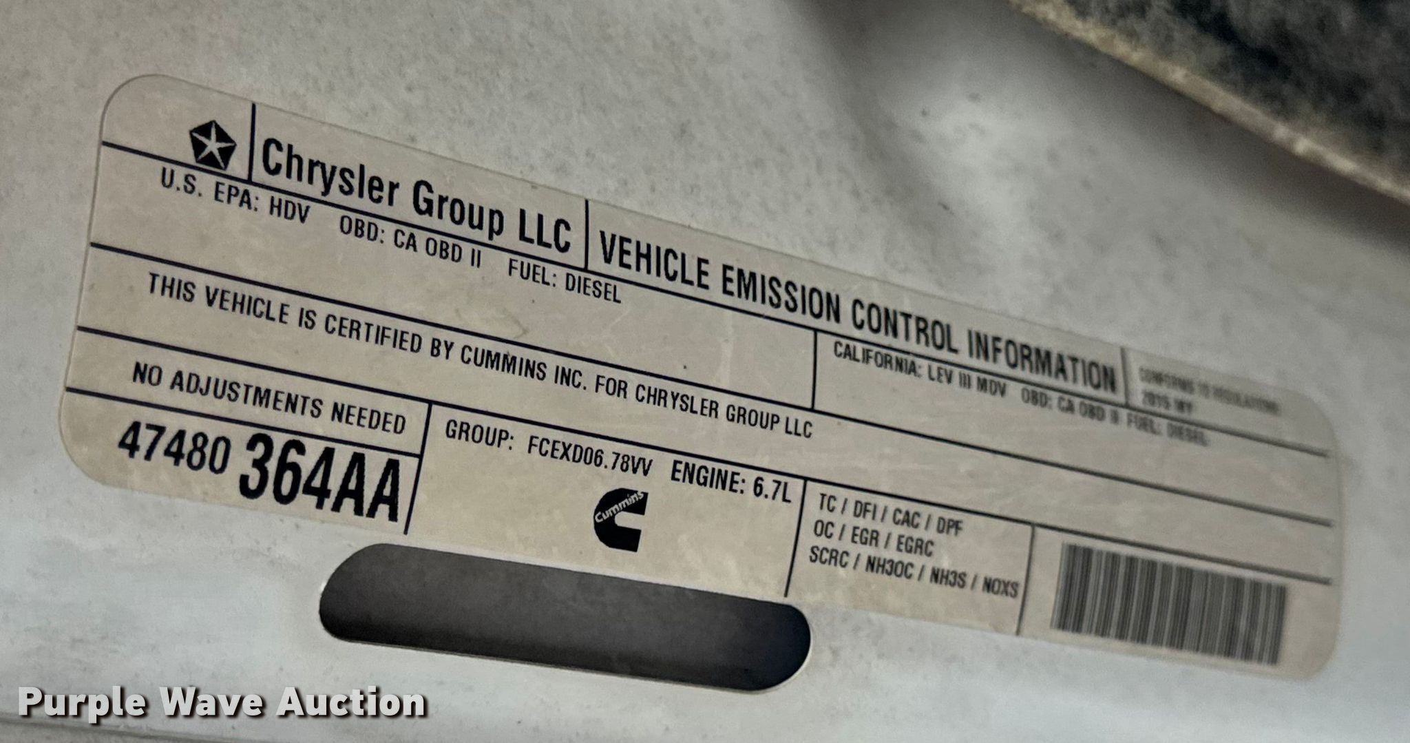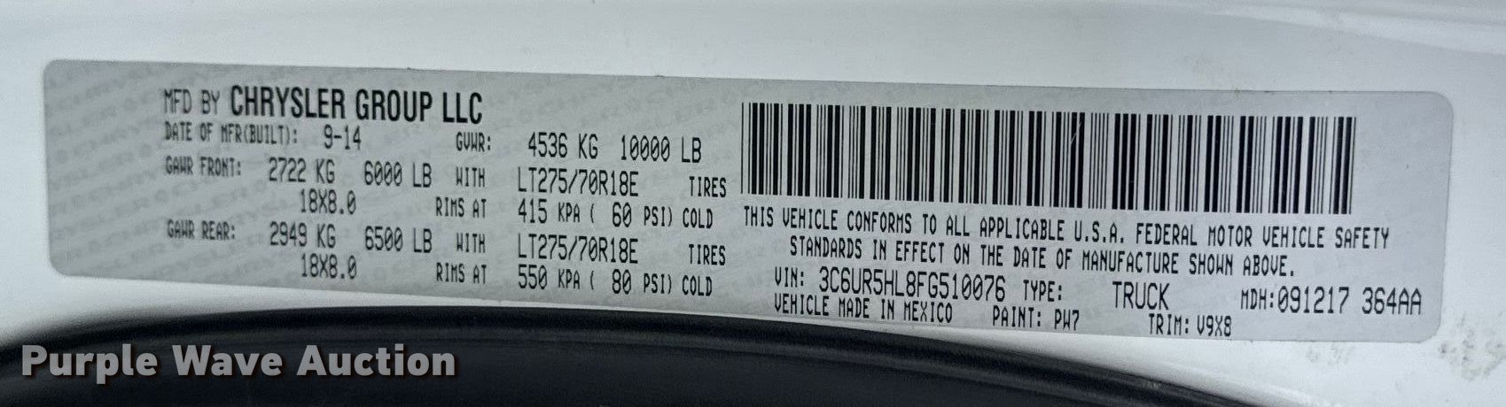 - VIN: 3C6UR5HL8FG510076