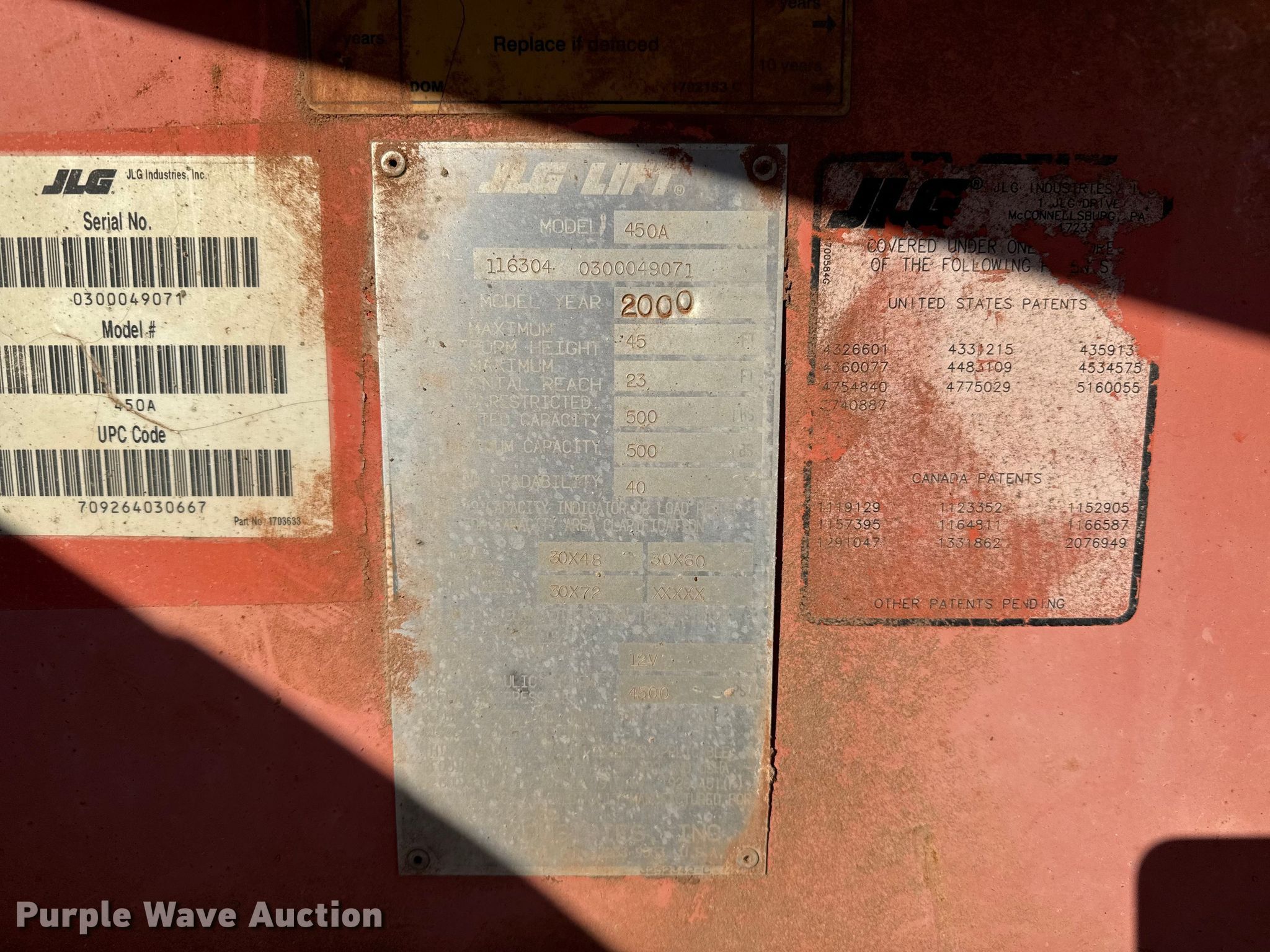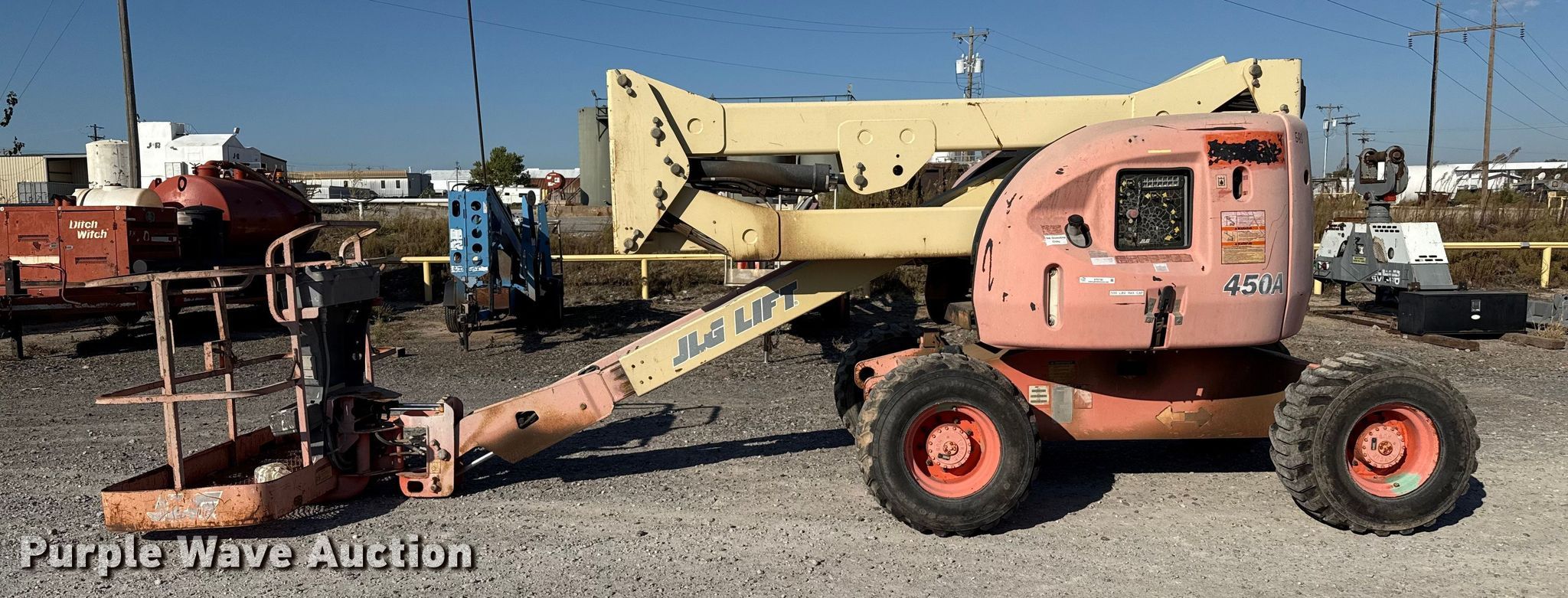 Purple Wave is selling a used Boom Lift in Oklahoma. This item is a 2000 JLG 450A boom lift with the following: Hours: 5,386 on meter, Serial: 116304-0300049071