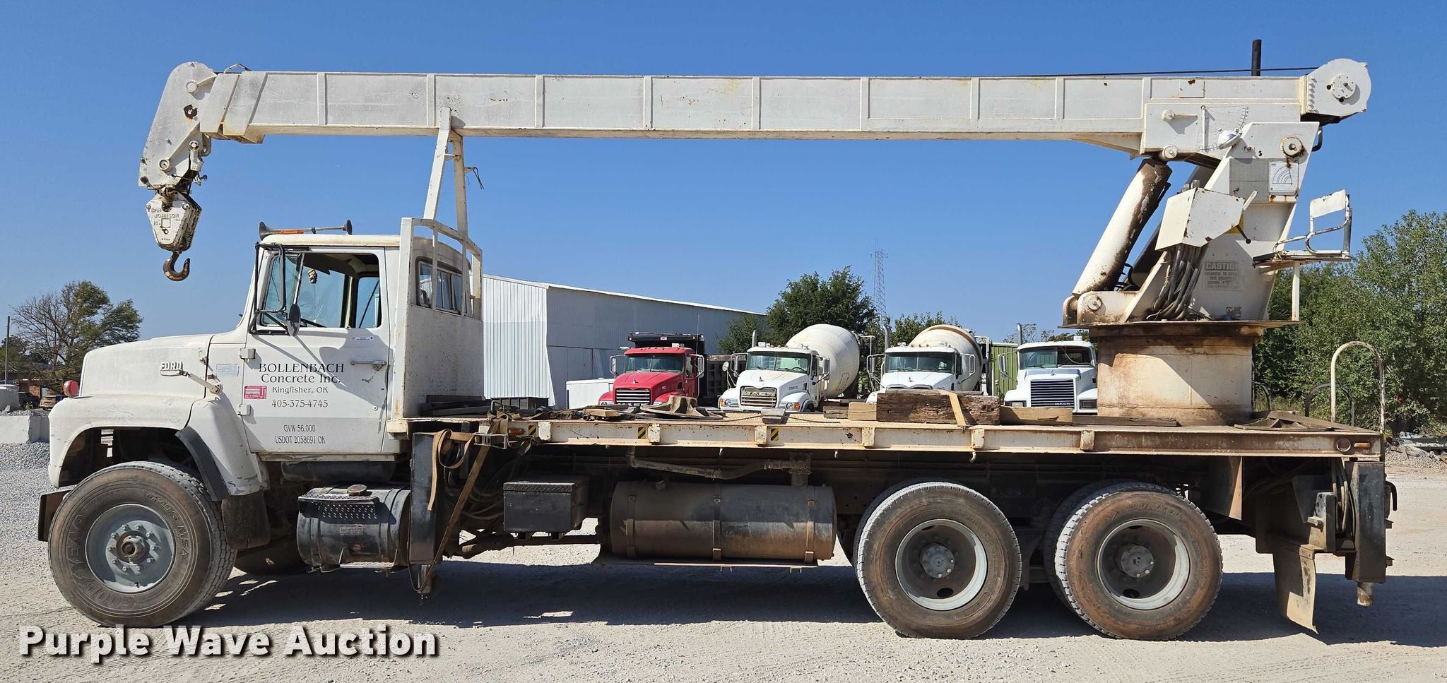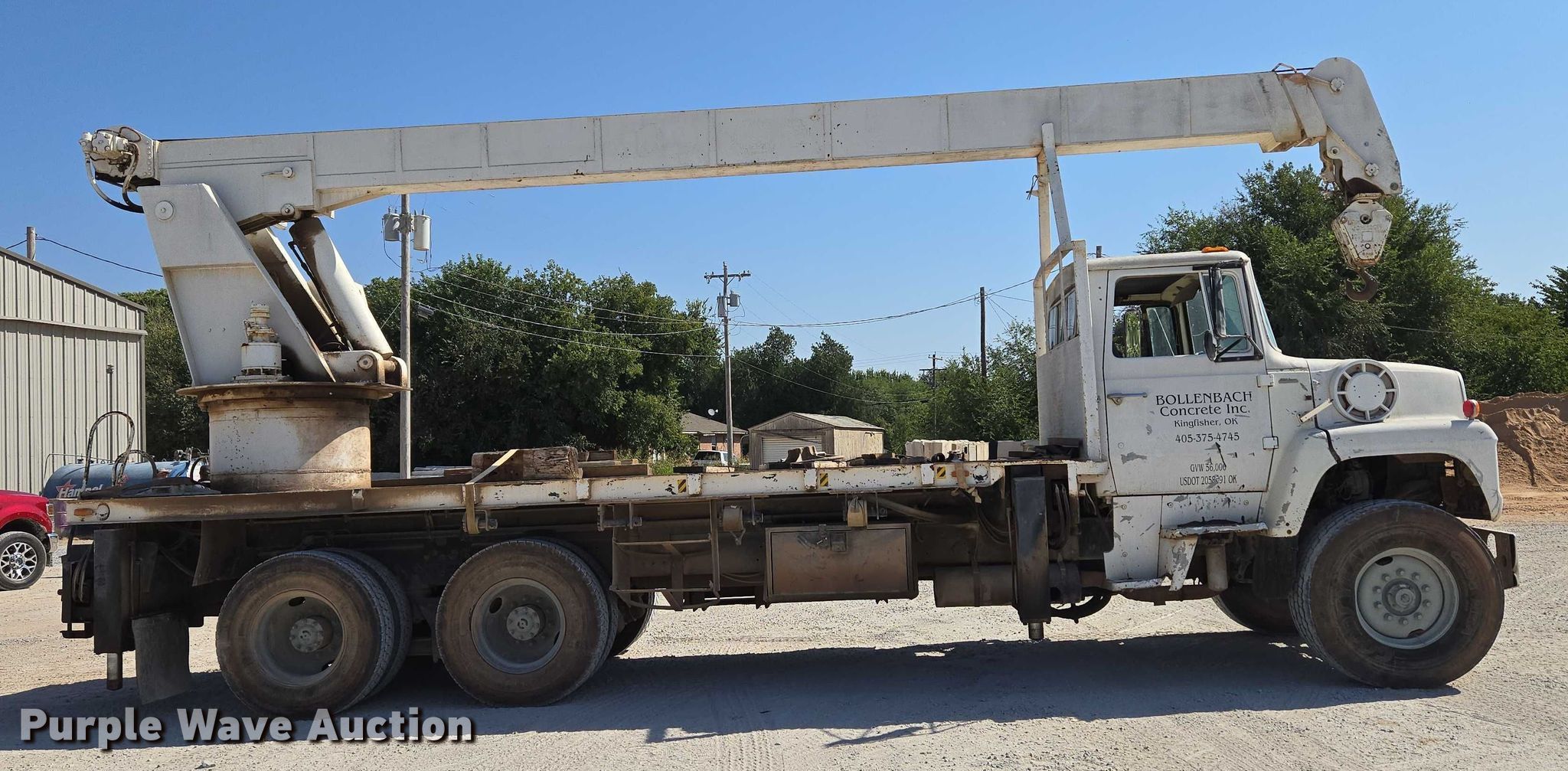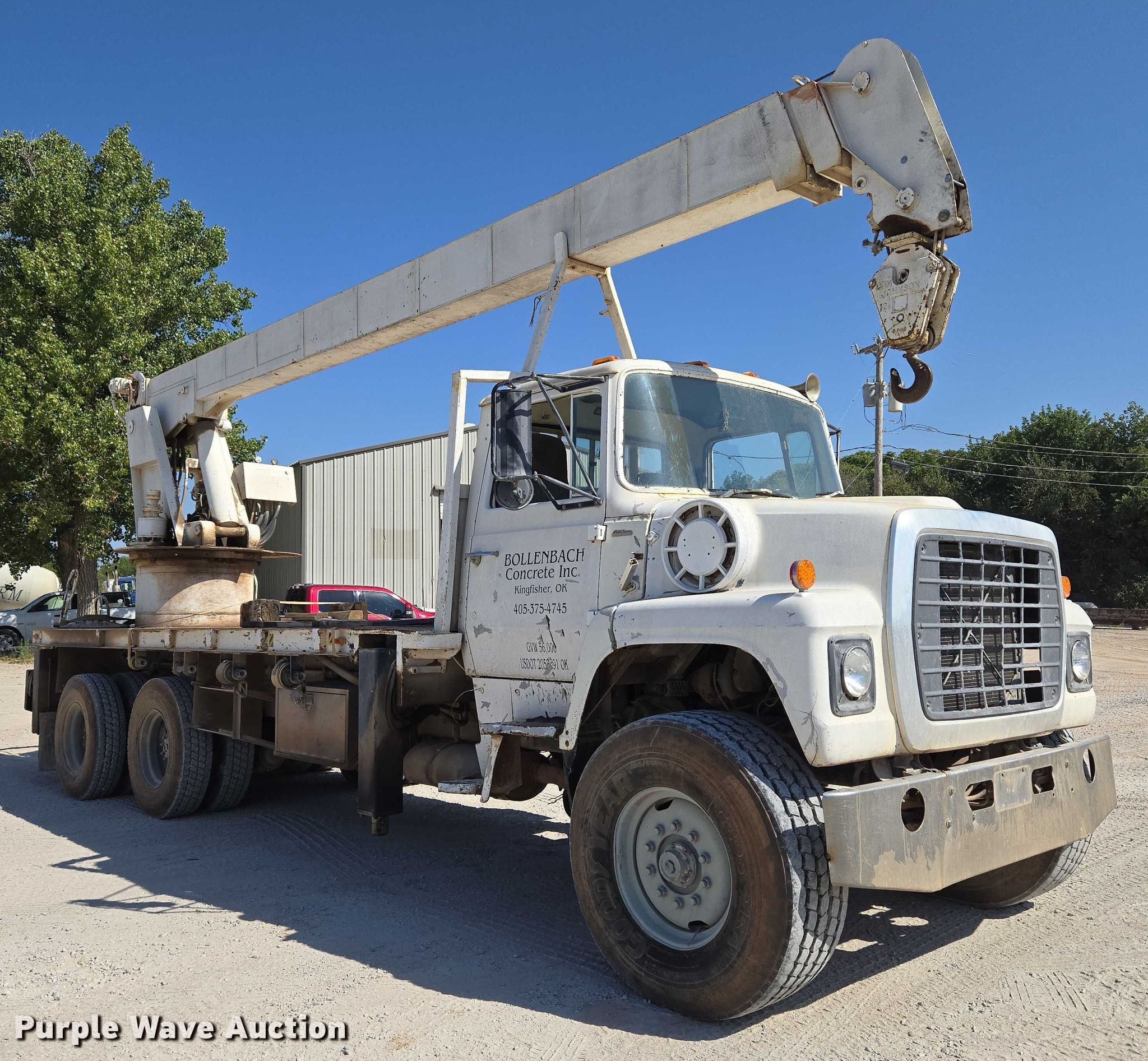 1985 Ford LNT9000 crane truck for sale in Kingfisher, Oklahoma. Item EU3780 will sell on November 20th, 2025.