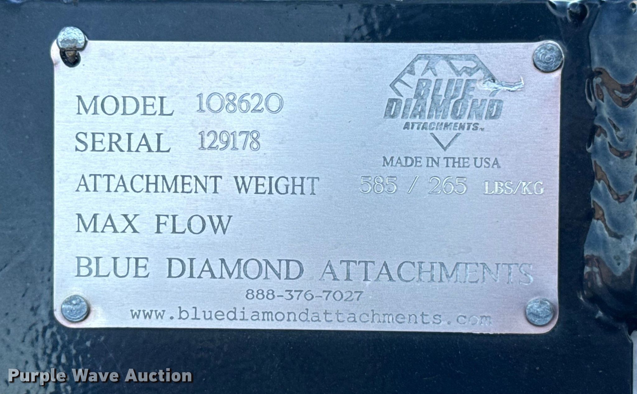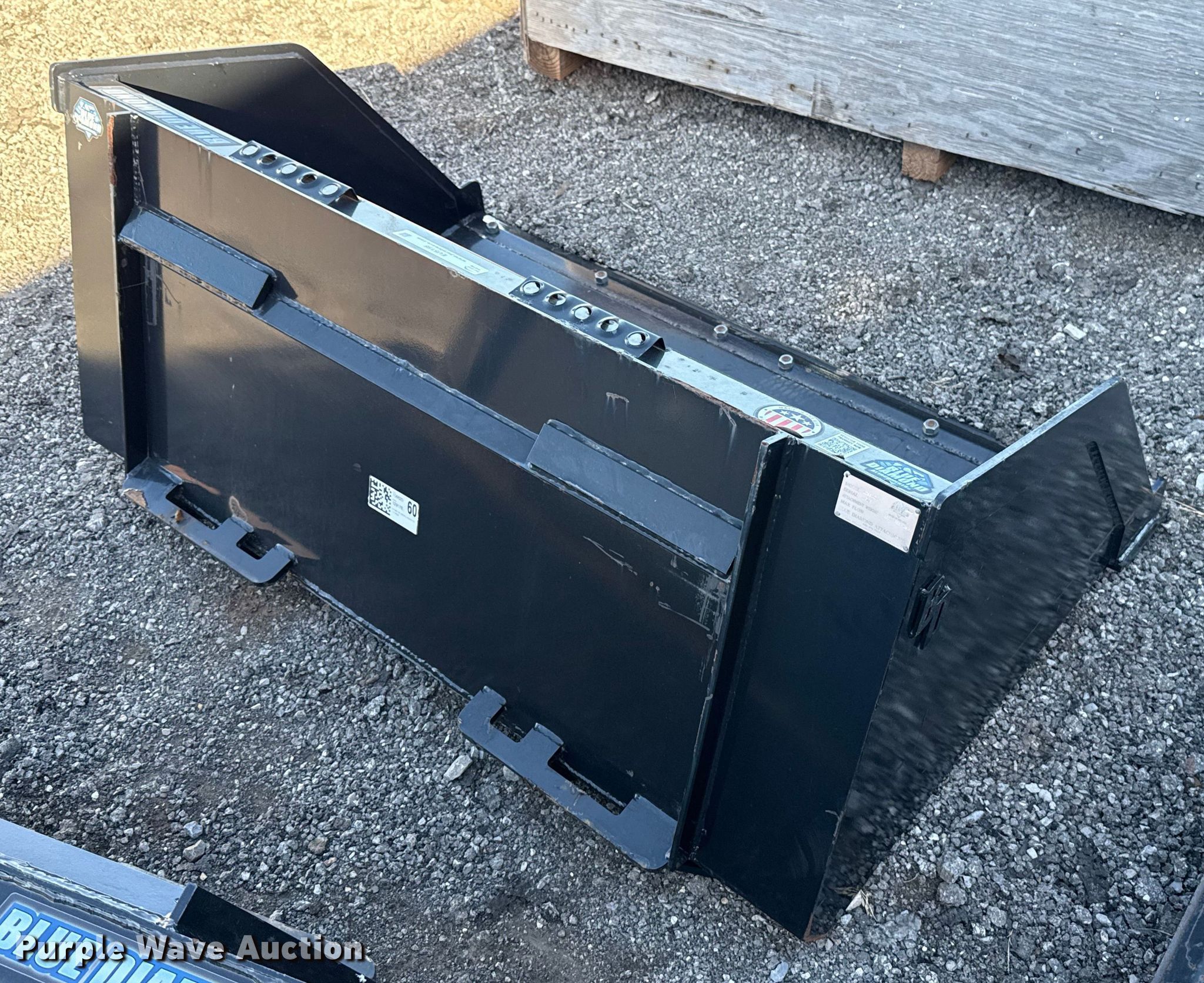 Purple Wave is selling a used Skid Steer Attach. in Oklahoma. This item is a Blue Diamond 108620 skid steer bucket with the following: Serial: 129178, Width: 60", Cutting edge: Bolt-on