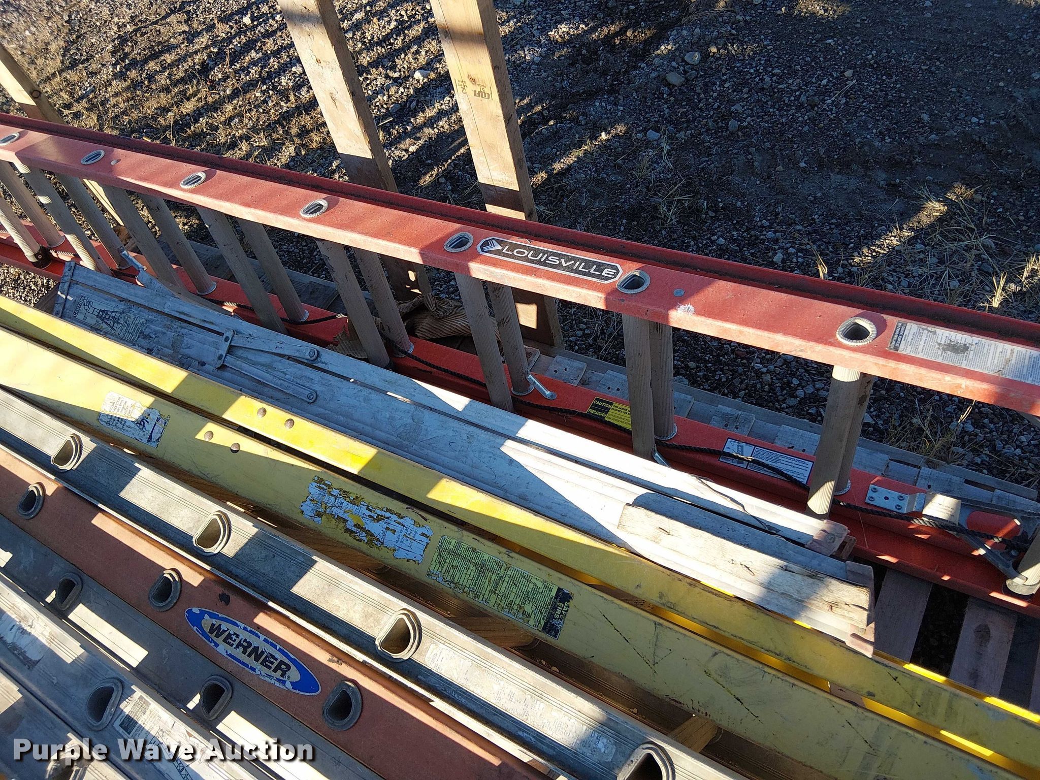 Purple Wave is selling a used Tools in Kansas. This item is a (7) ladders with the following: (7) ladders. Emerson Construction, Inc.. Topeka, KS 66618
