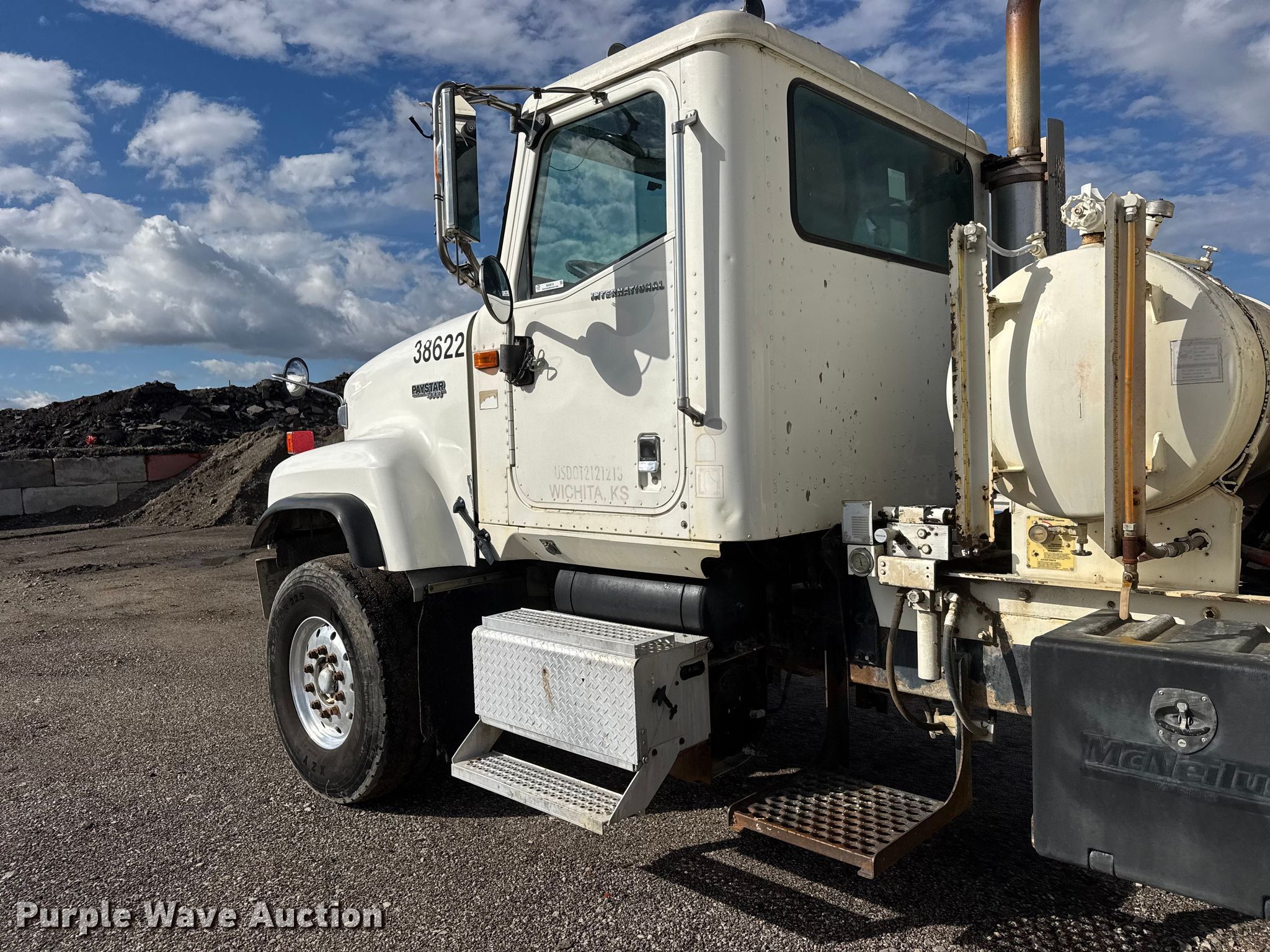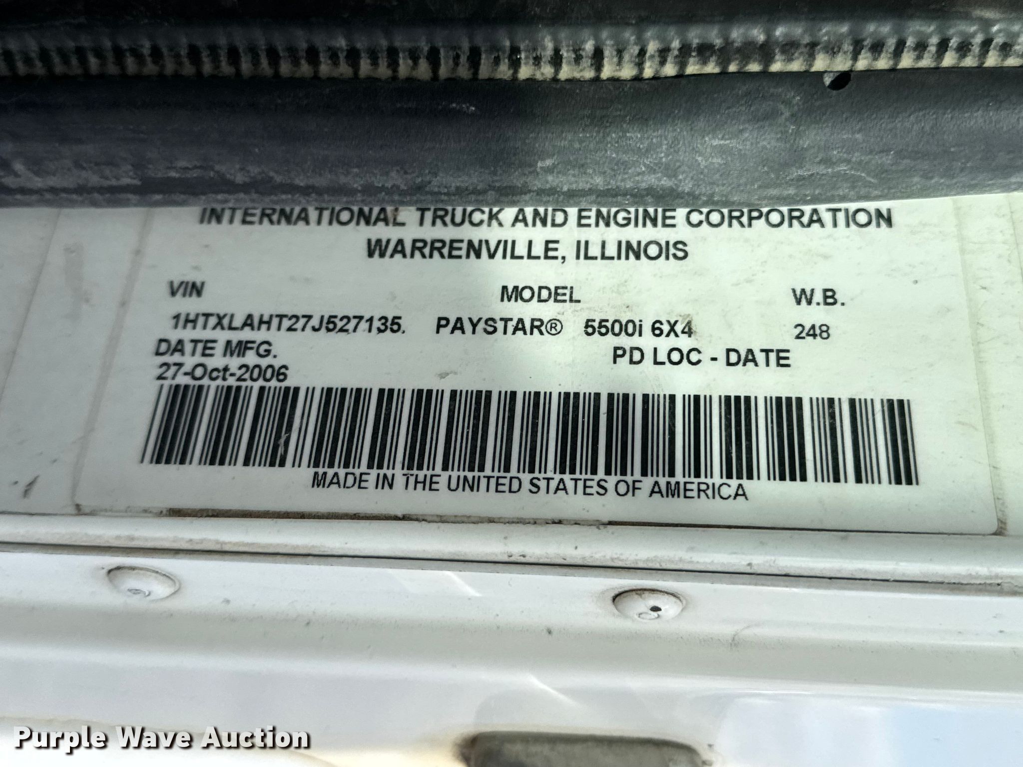 2007 International 5500I ready mix truck. Miles: 209,697 on odometer, Hours: 19,048 on meter, VIN: 1HTXLAHT27J527135. Engine Cummins ISM 350V, Serial: 35180057, Displacement: 10.8L, Cylinders: 6, Fuel type: Diesel. Transmission Eaton Fuller 9LL, Manual, Speed: 11. Chassis Axles: 4, Pusher axle Steerable, Tag axle Steerable, Differential lock: Inter-axle, Suspension: Spring over walking beam, Brakes: Air, PTO, GVWR: 80,000 lbs. Interior AC, Heat, Heated mirrors, Cruise control, Backup camera. Features Mixer McNeilus, Capacity: 11 cu.yd., Discharge: Rear, In-cab controls, Rear drum controls, Water tank capacity: 110 gallons, Chute Extensions: 3, Chute type: Steel.. Tires Front: 425/65R22.5, Rear: 11R22.5, Lift axle: 255/70R22.5, Rear lift axle: 11R22.5. Notes Dash warning indicator: Check engine, ABS, Windshield chipped or cracked, Jump start required during on-site data collection, Unknown operating condition of AC. Kansas title. Title distribution may be delayed up to 14 days from verification of funds. Pearson Construction, LLC. Wichita, KS 67219