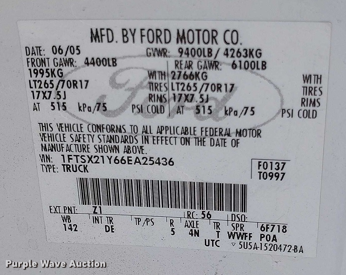 Purple Wave is selling a used 3/4 or 1 Ton Pickup or Van in Colorado. This item is a 2006 Ford F250 Super Duty SuperCab pickup truck with the following: Miles: 123,215 on odometer, Hours: 4,684 on meter, VIN: 1FTSX21Y66EA25436