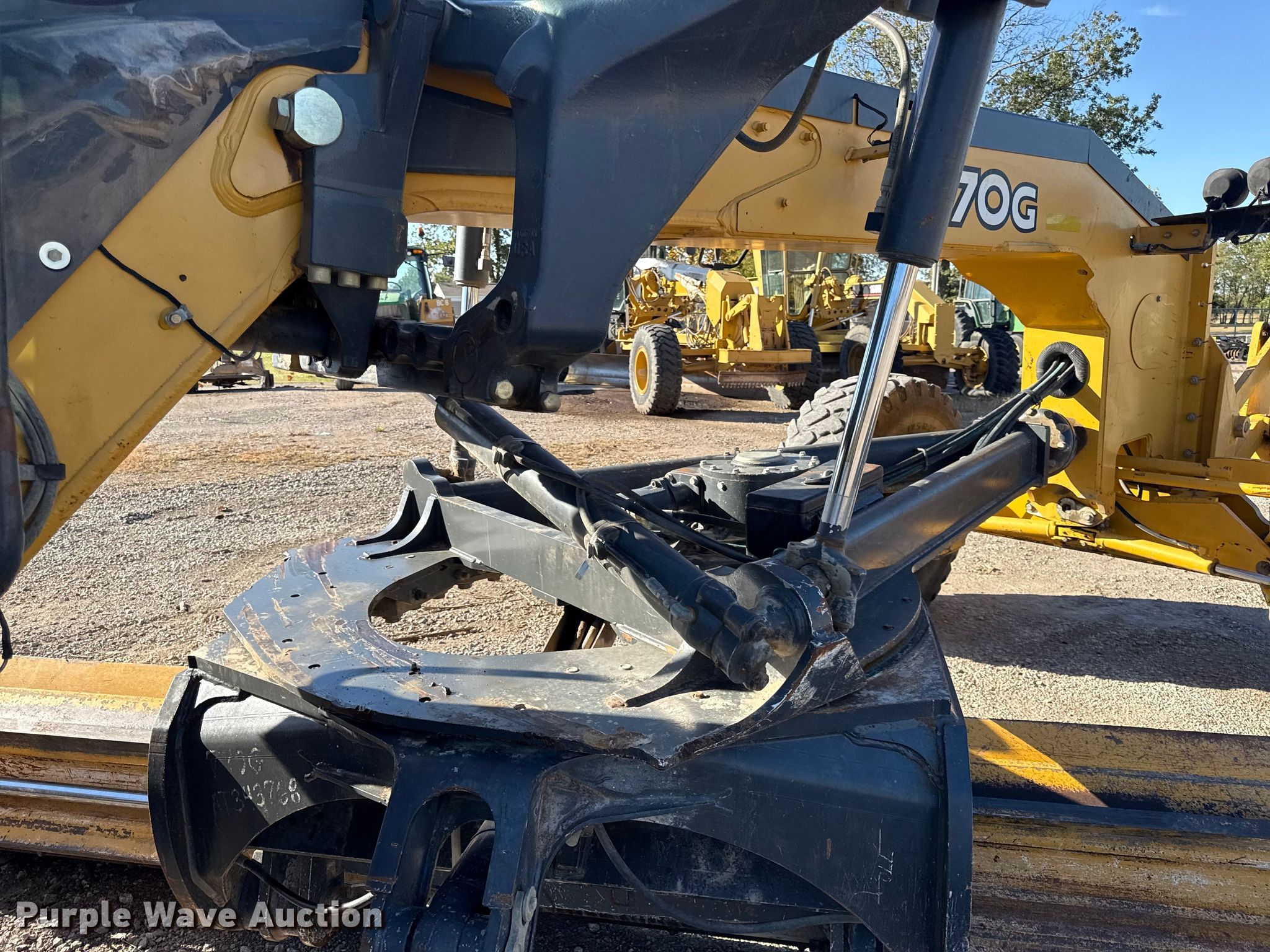 2009 John Deere 770G motor grader. Hours: 19,859 on meter, Serial: DW770GX626719. Engine John Deere, Displacement: 9.0L, Cylinders: 6, Fuel type: Diesel. Transmission Powershift, 8F - 8R. Chassis Differential lock. Operators station Enclosed cab, AC, Heat, Hydraulic control valves: 9. Features Moldboard: Tip control, Side shift, Moldboard total width: 14', Front-mounted lift group. Tires Size: 17.5R25. Labette County, KS. Altamont, KS 67330
