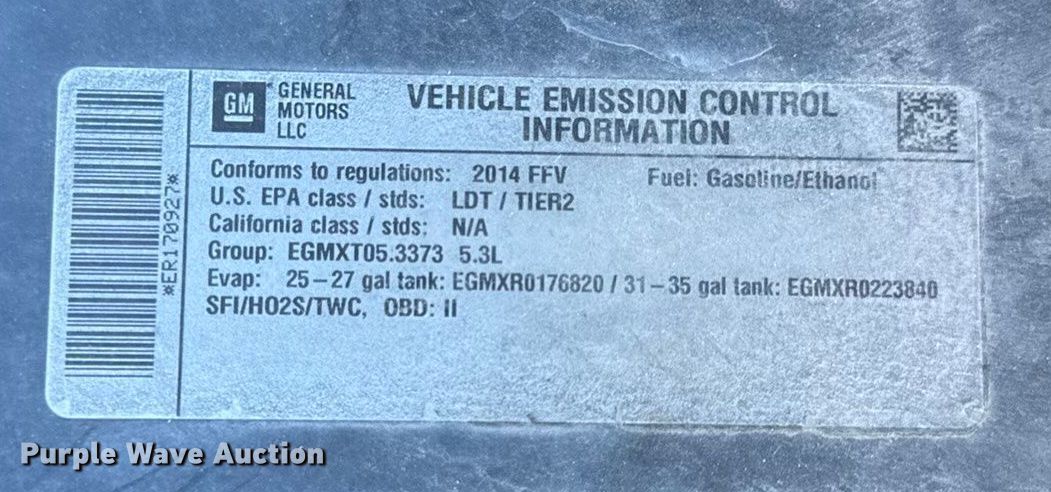 2014 Chevrolet Tahoe Police SUV. Miles: 182,350 on odometer, VIN: 1GNLC2E00ER170927. Engine Displacement: 5.3L V8 OHV 16V FFV, Cylinders: 8, Fuel type: Gas. Transmission Automatic. Interior AC, Heat, Seat: Power driver, Power passenger, Power windows, Power locks, Cruise control. Tires Size: 265/60R17. Kansas title. Title distribution may be delayed up to 14 days from verification of funds. Sedgwick County. Rose Hill, KS 67133
