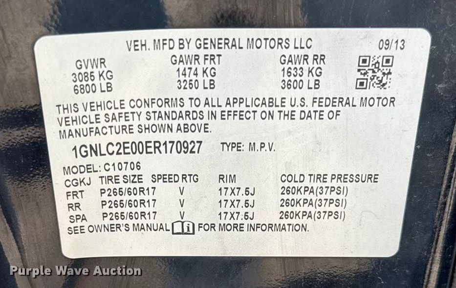 Purple Wave is selling a used Passenger Vehicle in Kansas. This item is a 2014 Chevrolet Tahoe Police SUV with the following: Miles: 182,350 on odometer, VIN: 1GNLC2E00ER170927