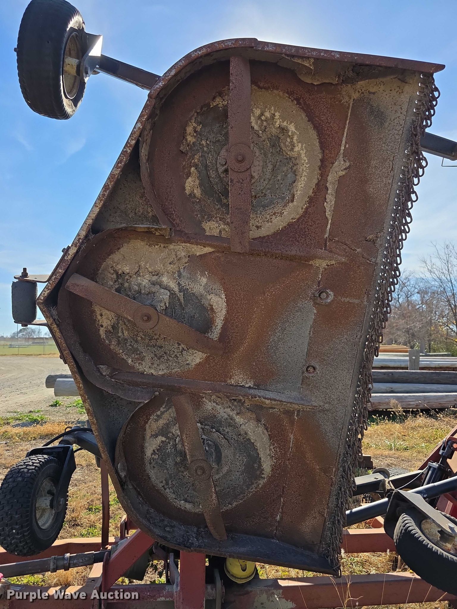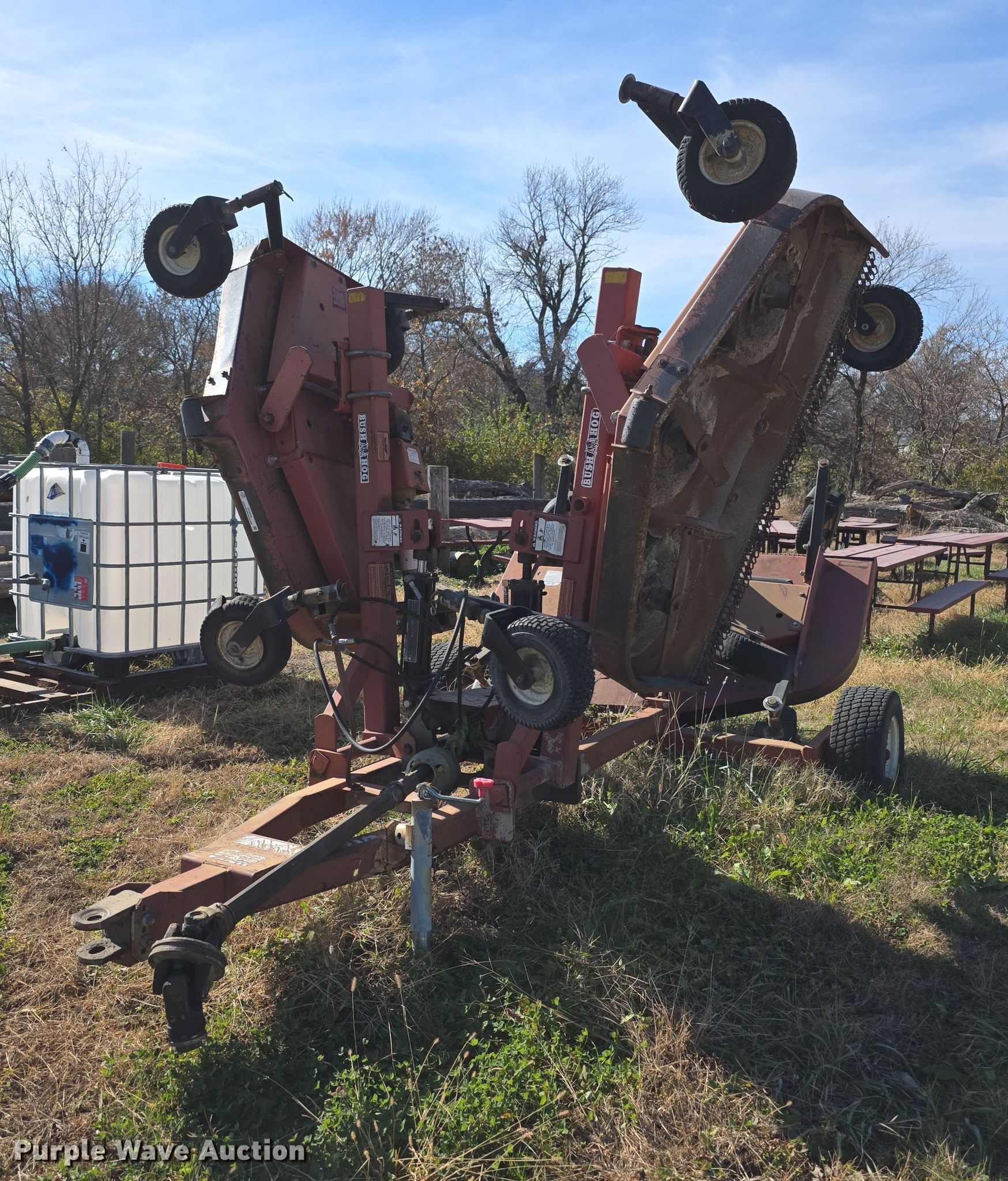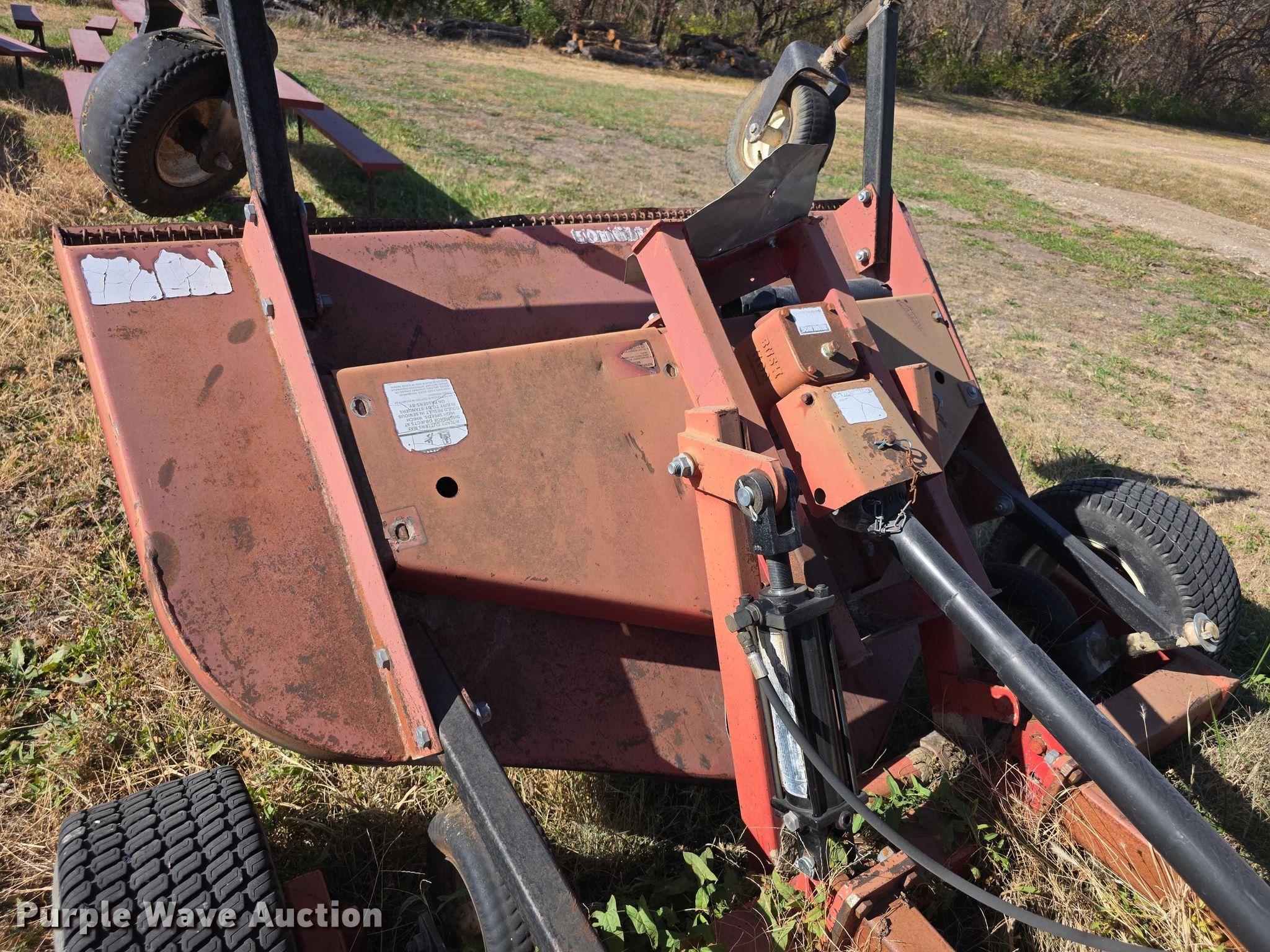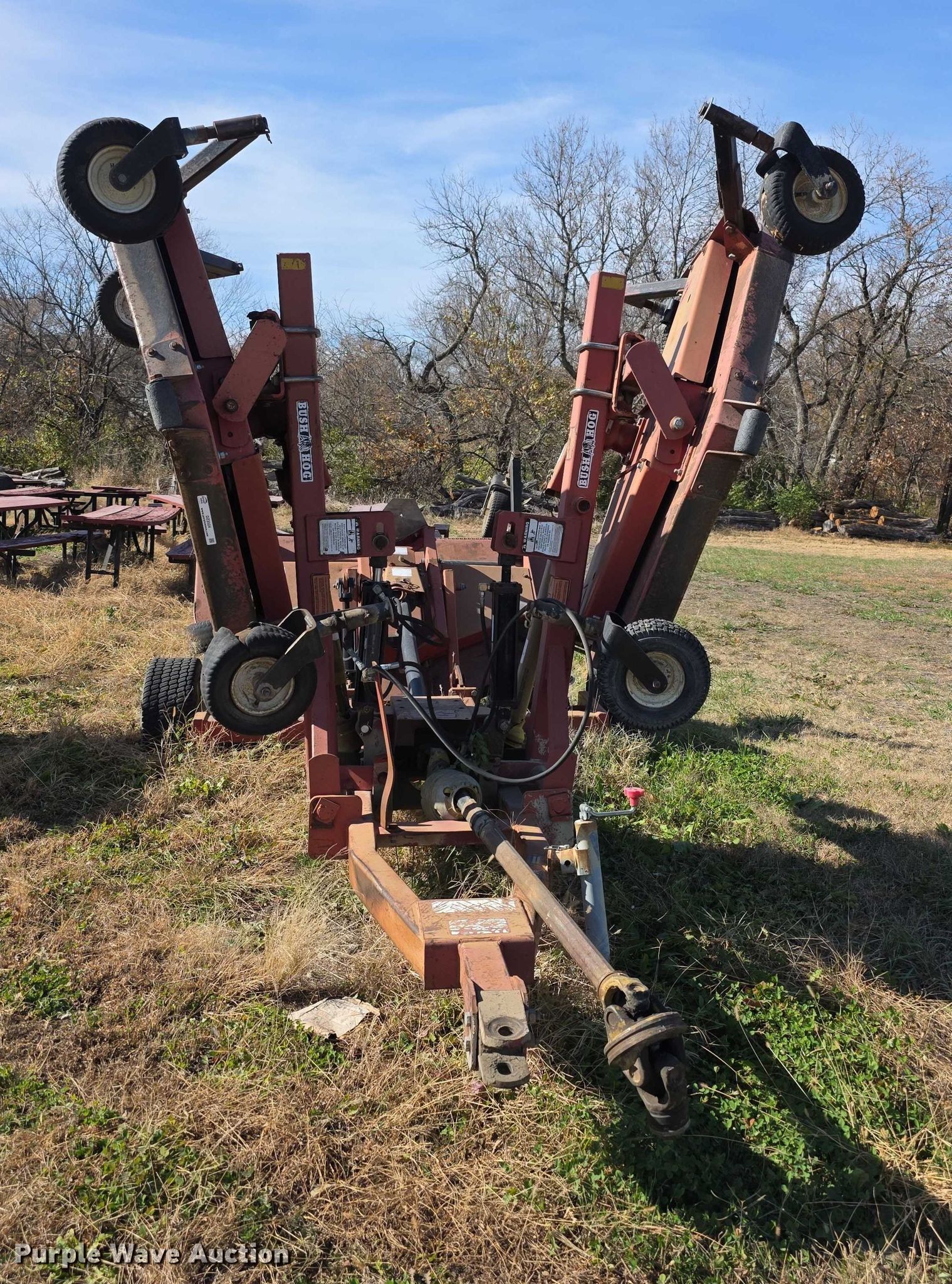 Bush Hog TD1500 batwing finish mower. Serial: 12-00204. Features Width: 13', Hydraulic lift, Hydraulic fold, PTO: 540. Tires Front: 13x5.00-6, Rear: 23x8.50-12. Notes Wing tires worn. City Manager of Herington. Herington, KS 67449