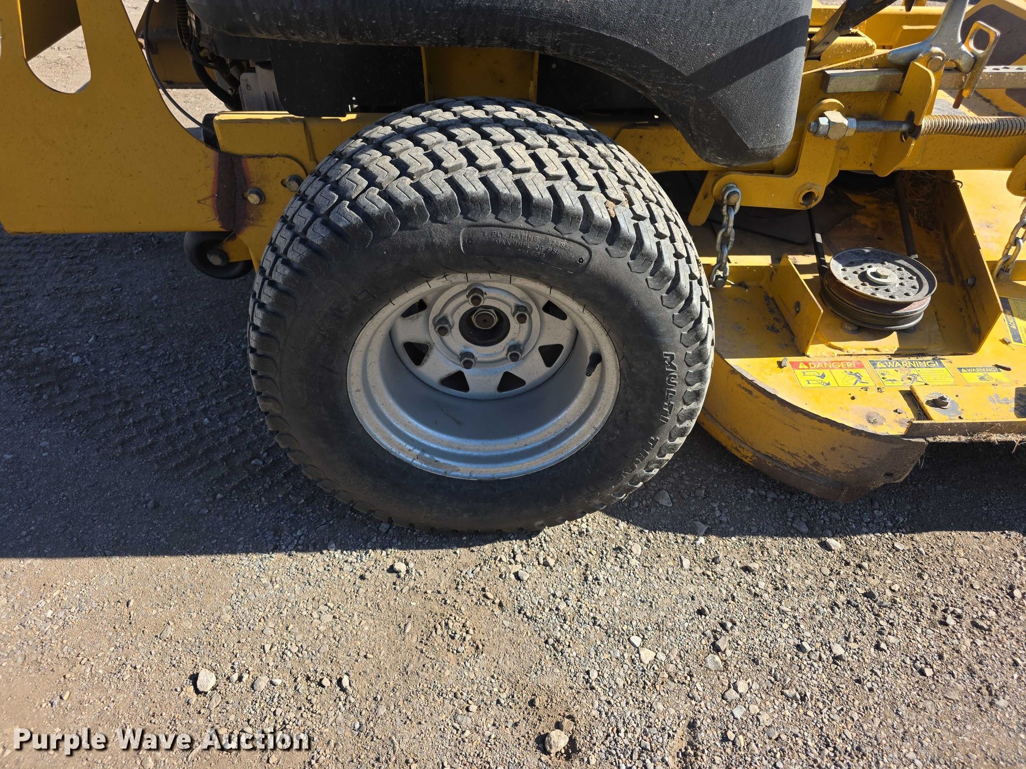 Hustler Super Z ZTR lawn mower. Hours: Unknown, Cutting width: 60", Serial: 04061422. Engine Cylinders: 2, Fuel type: Gas. Transmission Hydrostatic. Features Counter weights, Grass bagger. Tires Front: 13x6.50-6, Rear: 24x12.00-12. Notes Jump start required during on-site data collection. Perry-Lecompton USD #343. Perry, KS 66073
