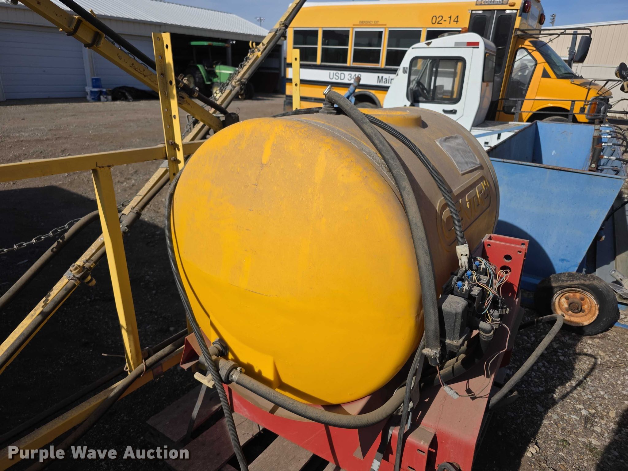 Century 3740DS turf sprayer. Serial: W59TYJ23120010. Features Solution tank Capacity: 125 gallons, Boom Width: 26', Nozzle Spacing: 20". Notes Tank lid missing, Previously used for pesticide, Unknown operating condition. Perry-Lecompton USD #343. Perry, KS 66073