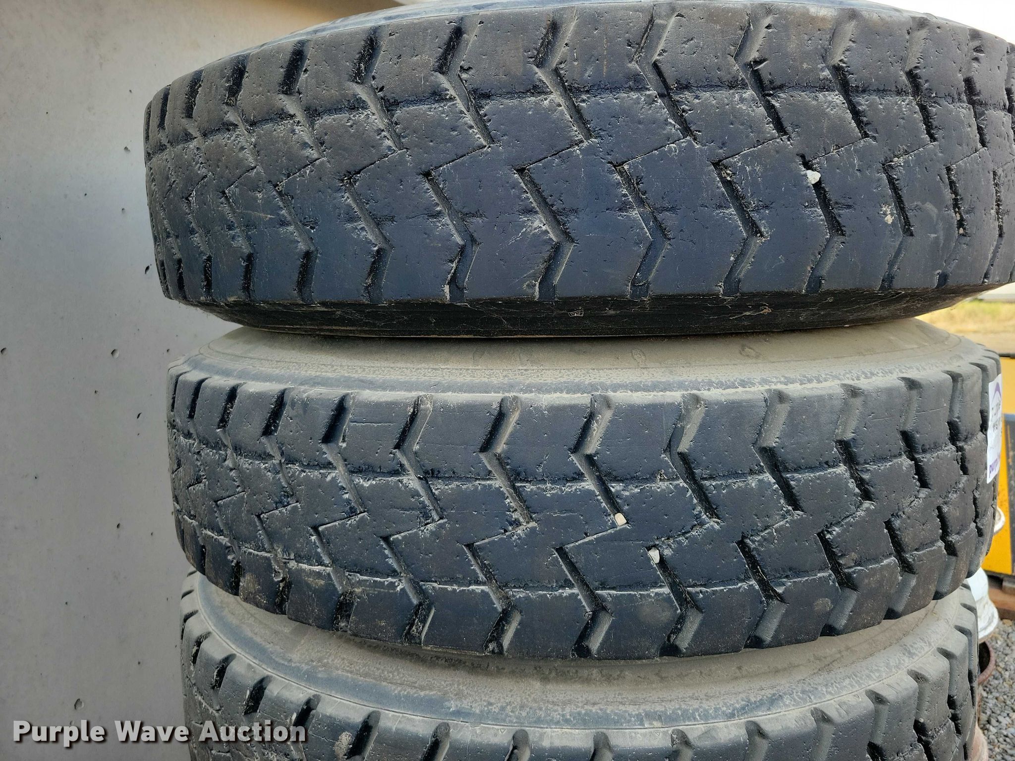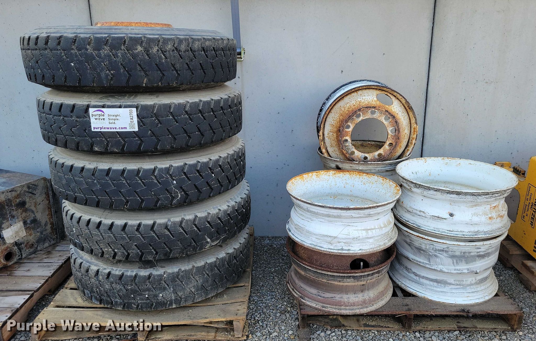 Purple Wave is selling a used Industrial Tires or Tracks in Iowa. This item is a Tires and wheels with the following: (5) 11R22.5 Goodyear tires and wheels, (7) wheels