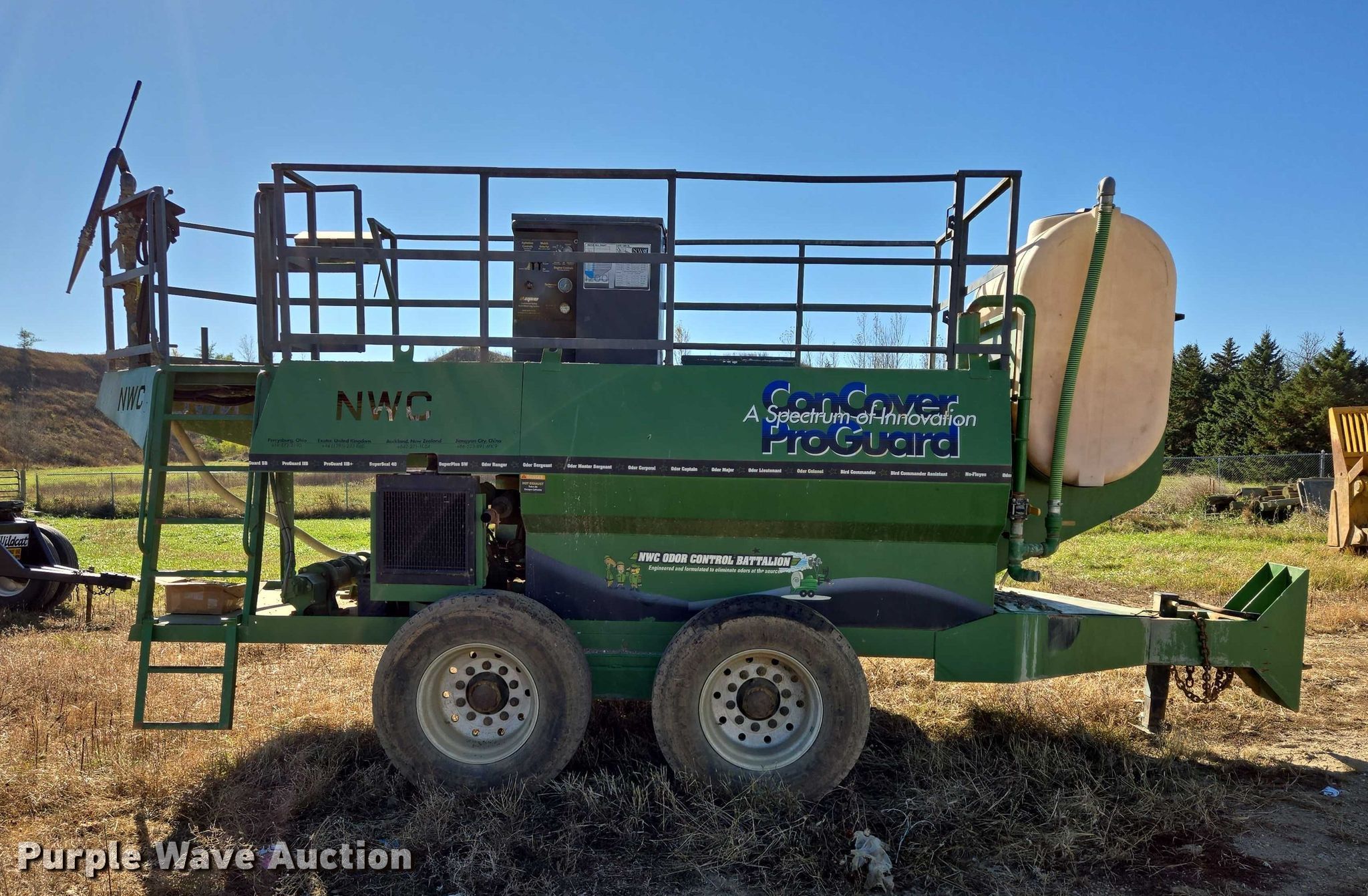 Epic Manufacturing C125 hydroseeder. Hours: 552 on meter, Serial: 24701. Engine John Deere, Displacement: 2.4L, Cylinders: 4, Fuel type: Diesel. Features Gallon capacity: 300, Work platform, Agitator: Forward, Reverse, Turret discharge, ConCover ProGuard odor control system, Water tank Capacity: 300 gallons. Trailer Hitch: Pintle, Suspension: Torsion, Axles: Tandem. Tires Tire size: 385/65R22.5. Notes Water cannon issues, elbow leaks Replacement included. This is worksite support equipment and will not come with a title. Transfer of ownership documentation will be a bill of sale. City of Brookings/Regional Landfill. Brookings, SD 57006