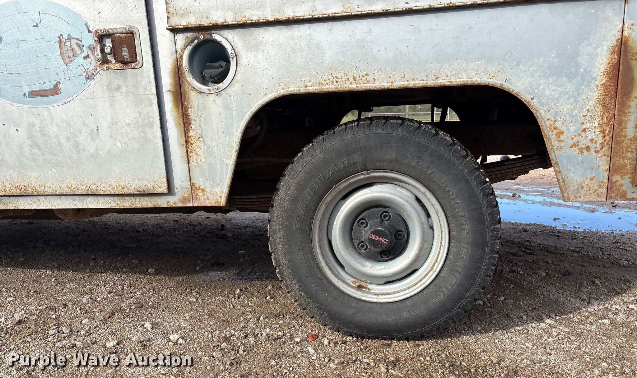 This 1989 GMC Sierra C1500 utility bed pickup truck will sell to the highest bidder regardless of price.