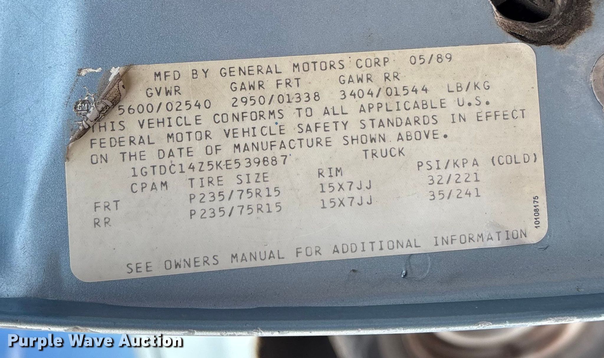 Purple Wave is selling a used 1/2 Ton Pickup or Van in Nebraska. This item is a 1989 GMC Sierra C1500 utility bed pickup truck with the following: Miles: 55,005 on odometer, Hours: 4,845 on meter, VIN: 1GTDC14Z5KE539887