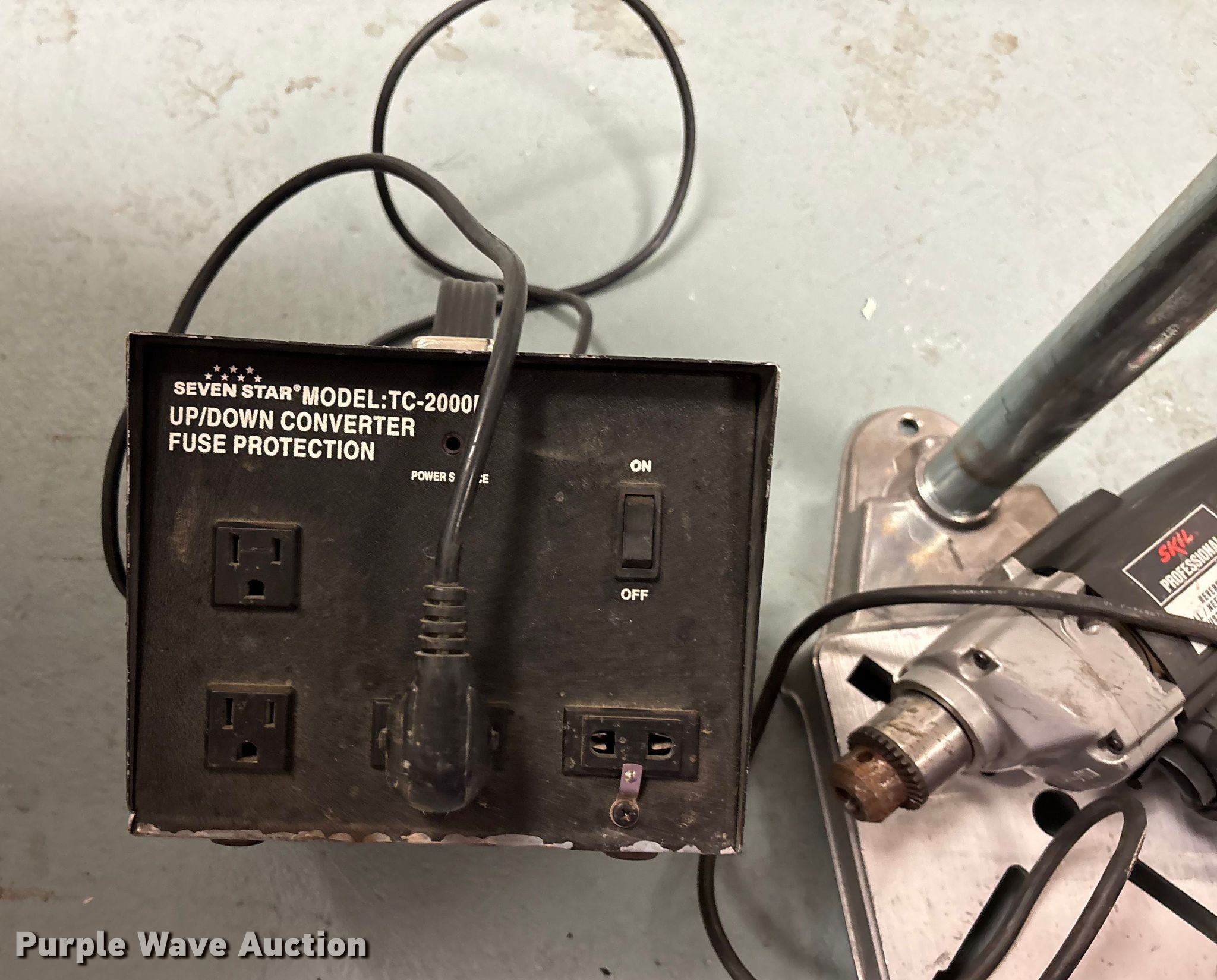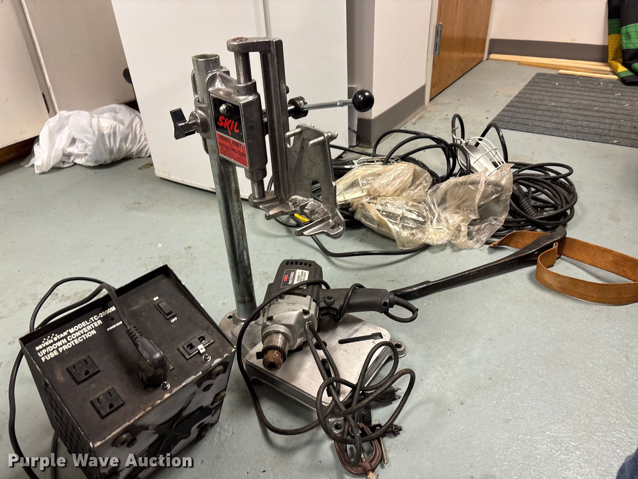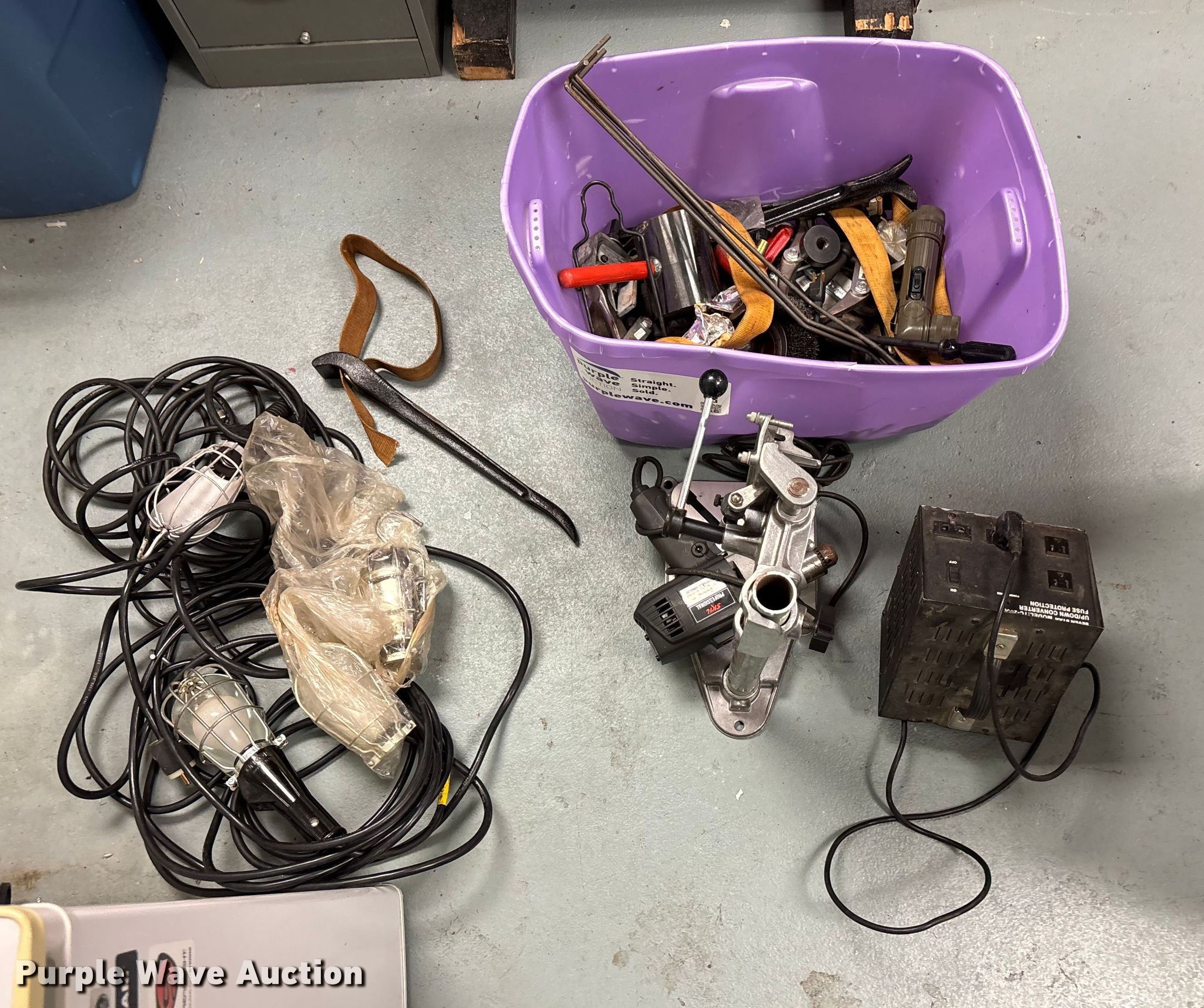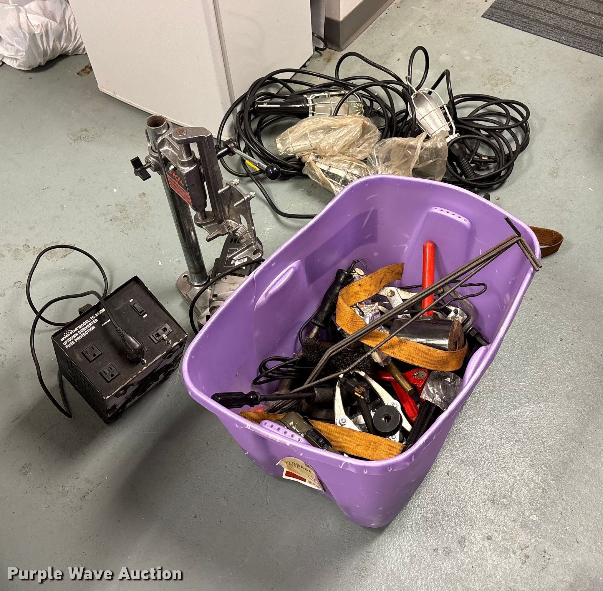 Purple Wave is selling a used Tools in Nebraska. This item is a Tools with the following: Drill, Press, Inverter, Lights, Oil filter, Wrenches and more