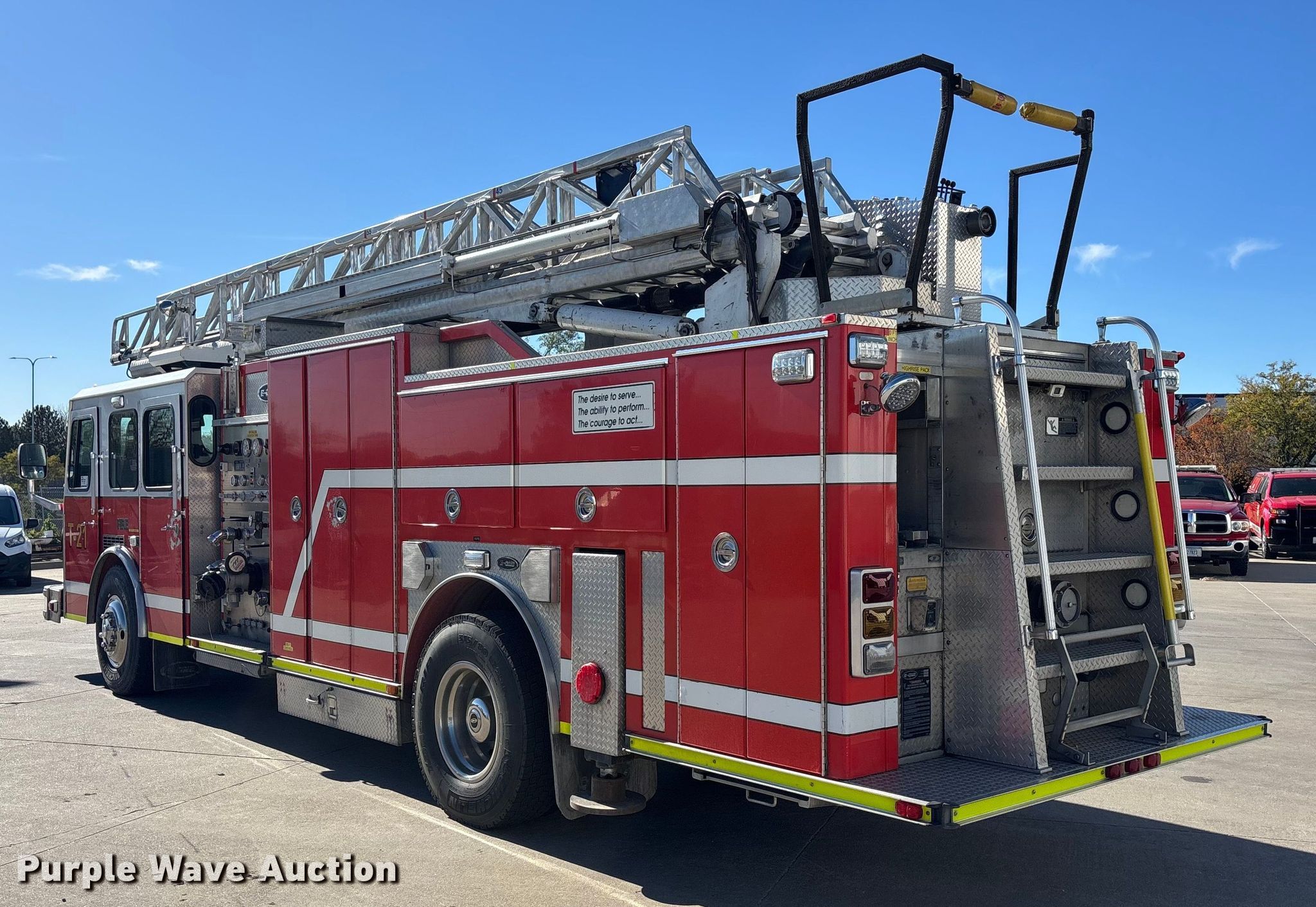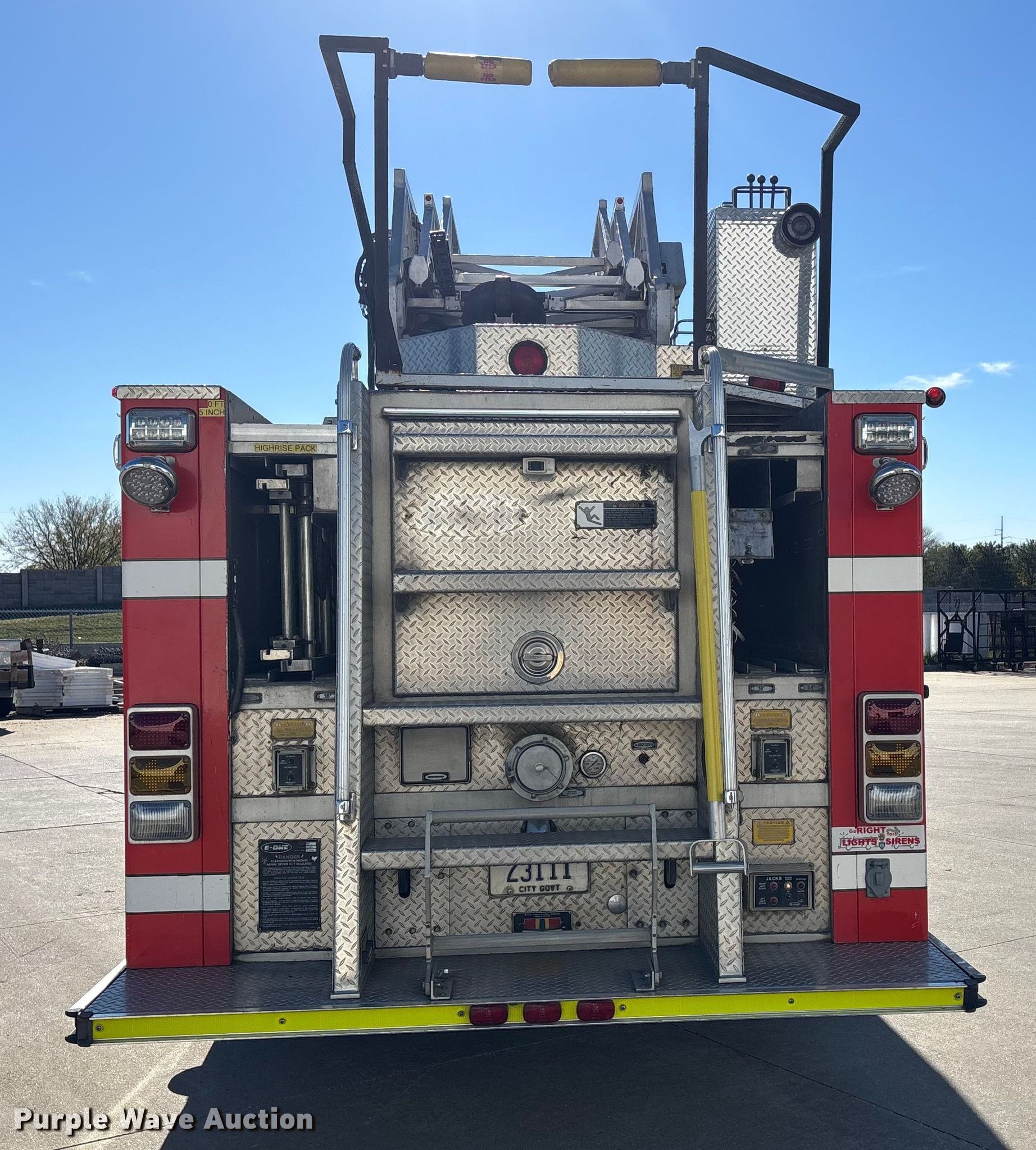 1996 E-One pumper fire truck. Miles: 191,667 on odometer, Hours: 3,276 on meter, VIN: 4ENGAAA86T1005935. Engine Detroit Diesel Series 60, Displacement: 11.1L, Cylinders: 6, Fuel type: Diesel, HP: 330, Engine brake. Transmission Automatic. Chassis Axles: Single, Suspension: Air, Brakes: Air, GVWR: 31,000 lbs. Interior AC, Heat, Backup camera, Auxiliary controls. Features Fire truck body Aerial E-one HP75, Maximum height: 75', Maximum lift capacity: 250 lbs, Stabilizers Quantity: 2, Elevated deck gun, Tank Capacity: 1,250 gallons, Pump 1,260 gpm, Ground ladder, Ambulance body PA/ siren controls, PTO. Tires Front: 425/65 R22.5, Rear: 315/80R22.5. Notes Transmission issues , Unit must be towed or hauled. Nebraska title. Title distribution may be delayed up to 14 days from verification of funds. City of Lincoln Fire & Rescue. Lincoln, NE 68521